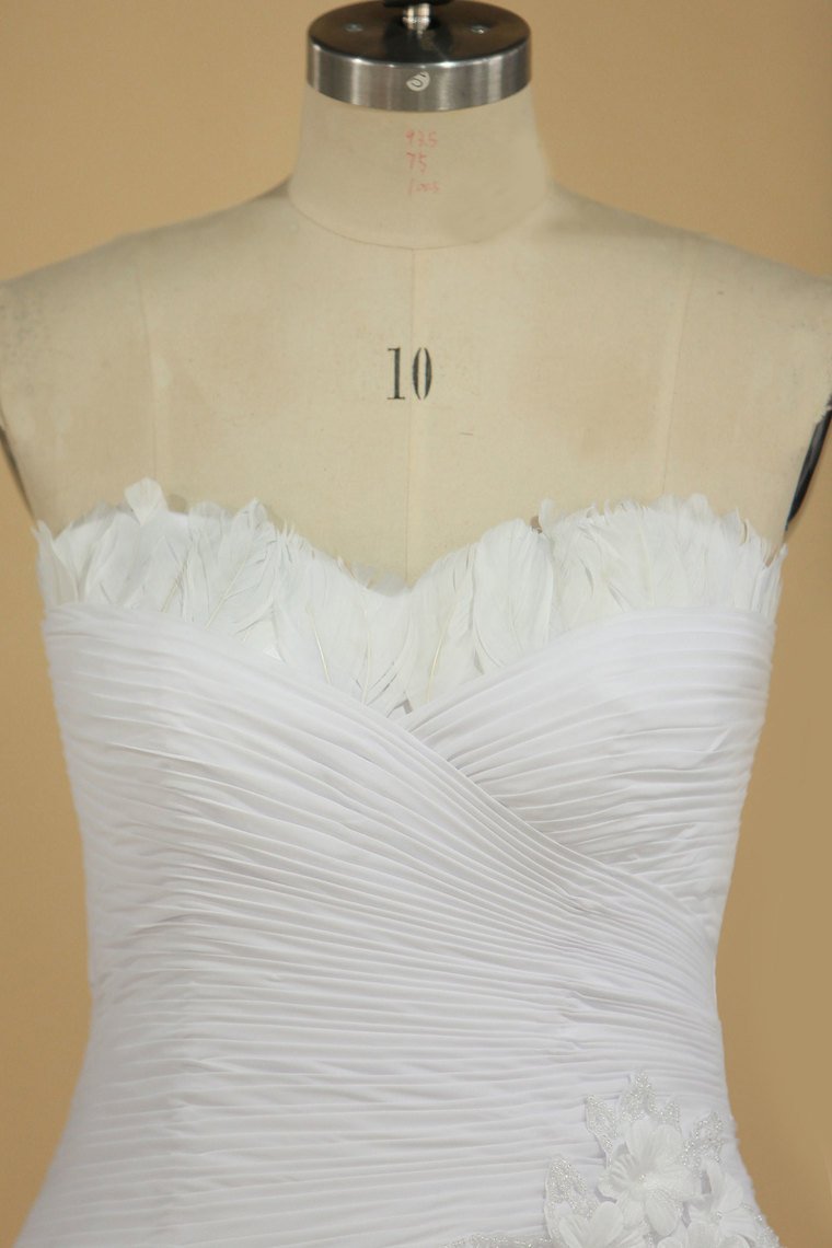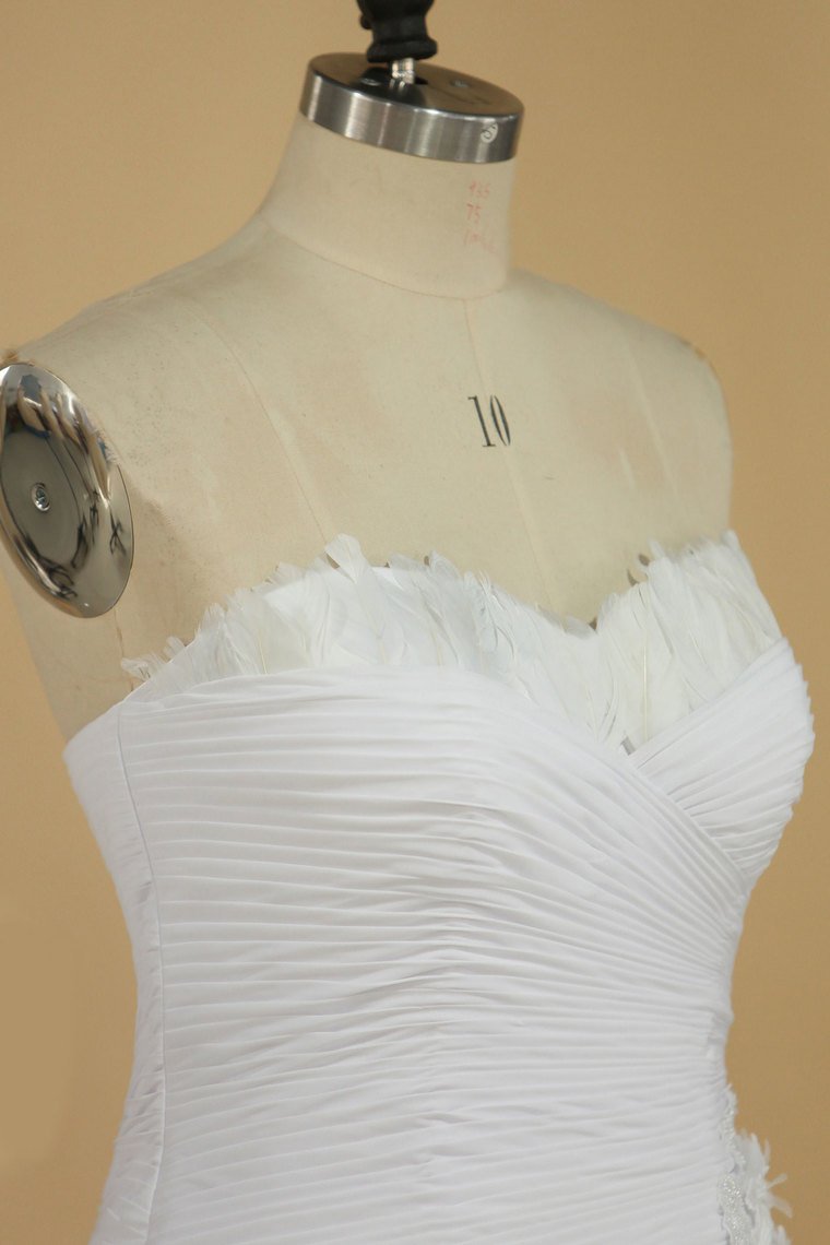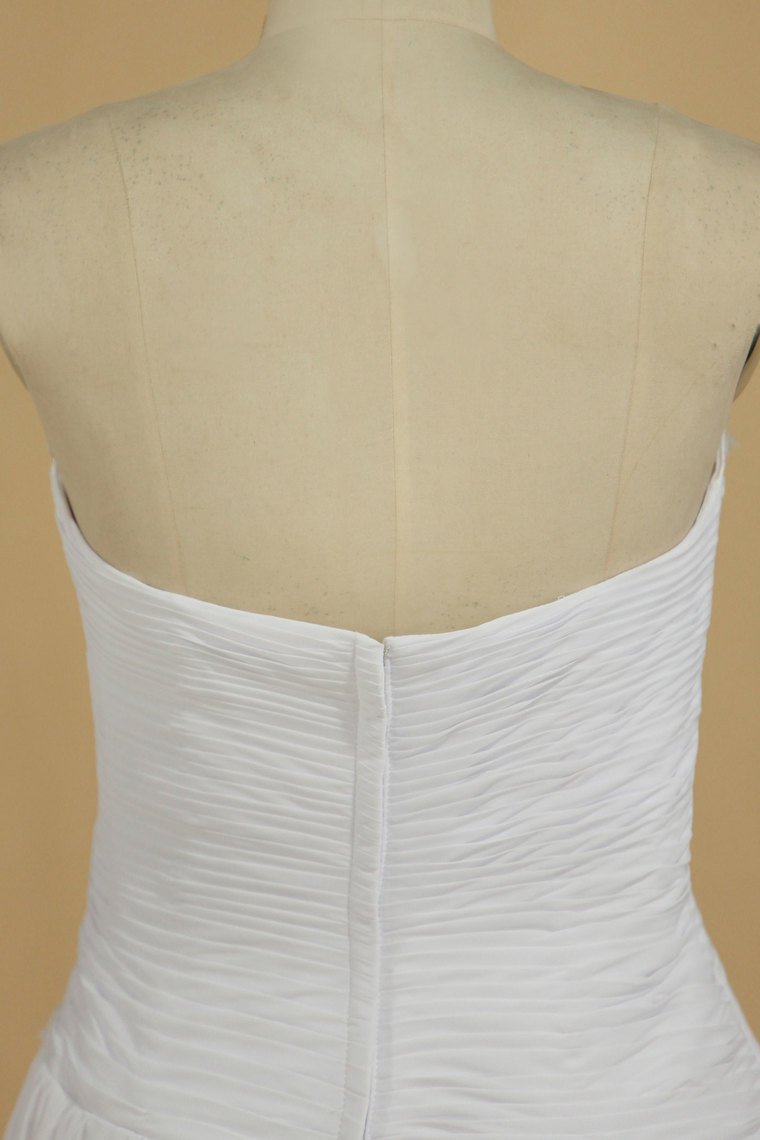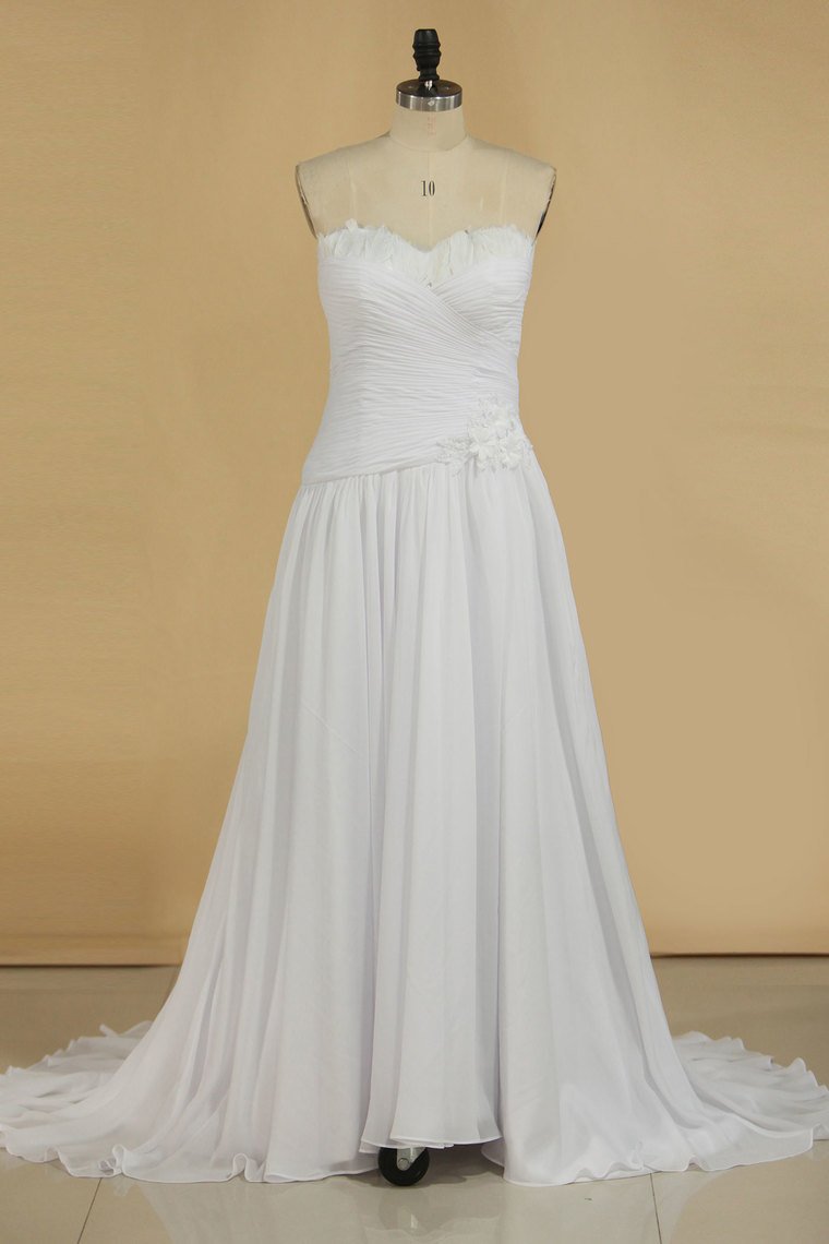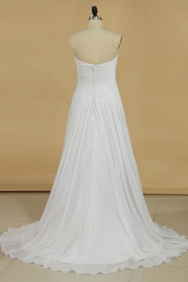 2024 Sweetheart Pleated Bodice A Line Wedding Dress With Flowing Chiffon Skirt Beaded