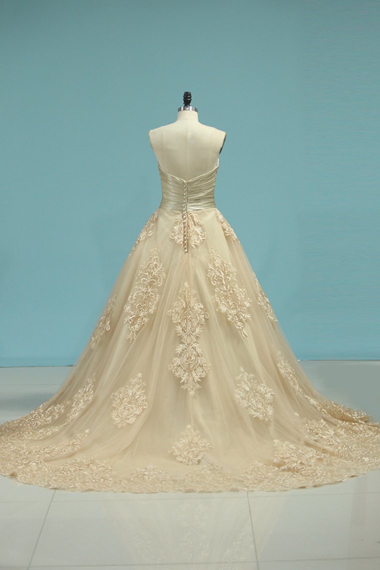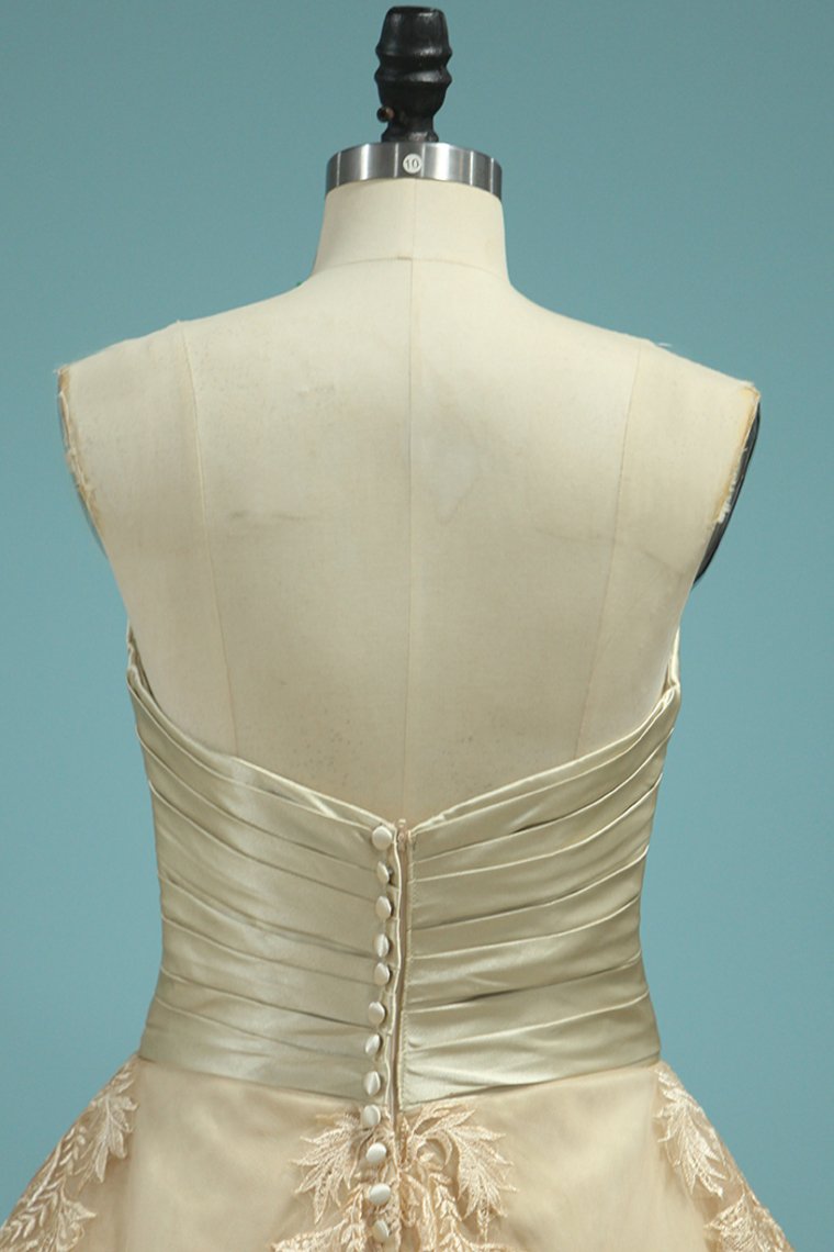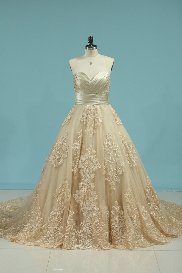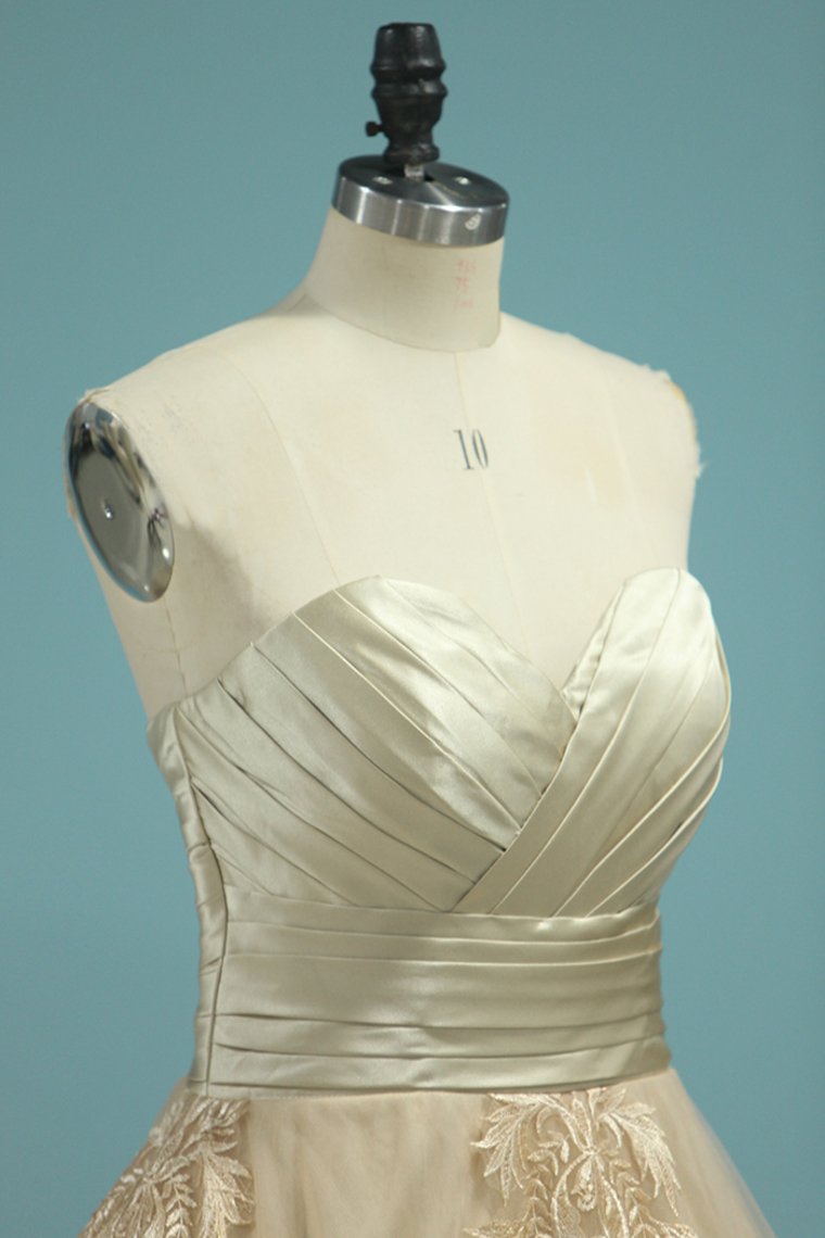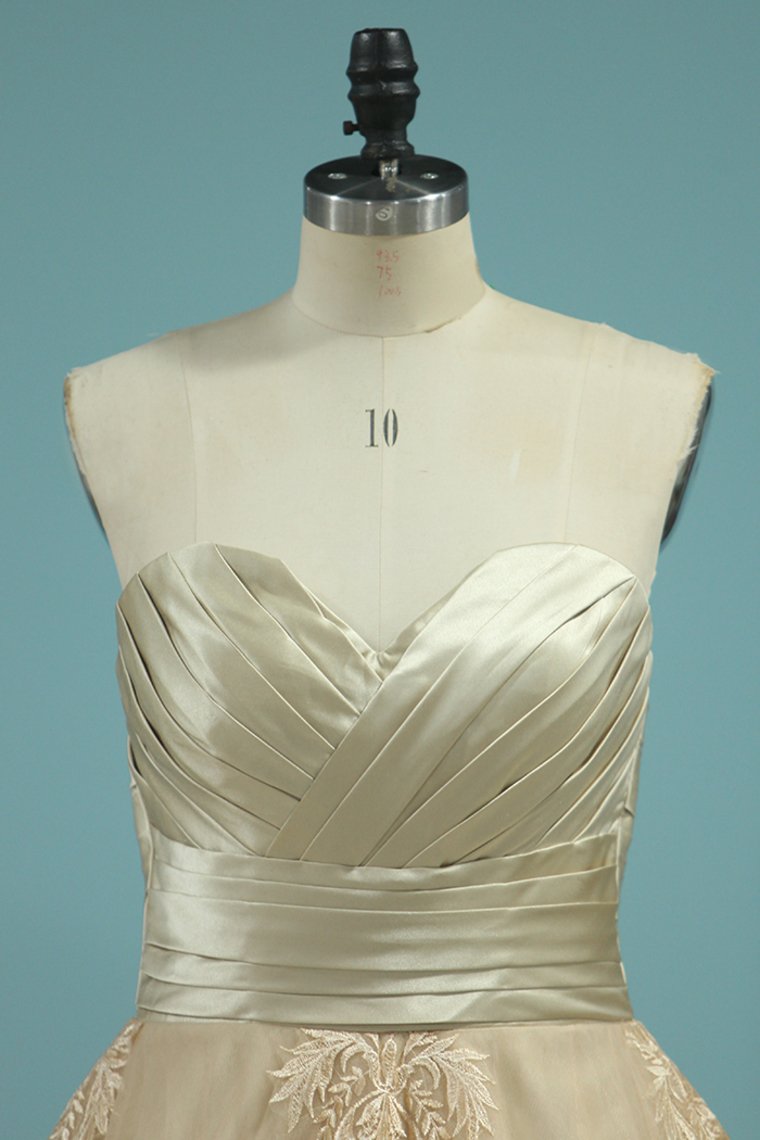 2024 Sweetheart Ruched Bodice Wedding Dresses A Line With Applique Court Train