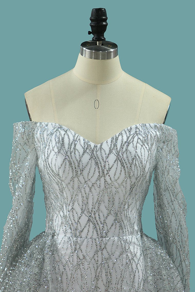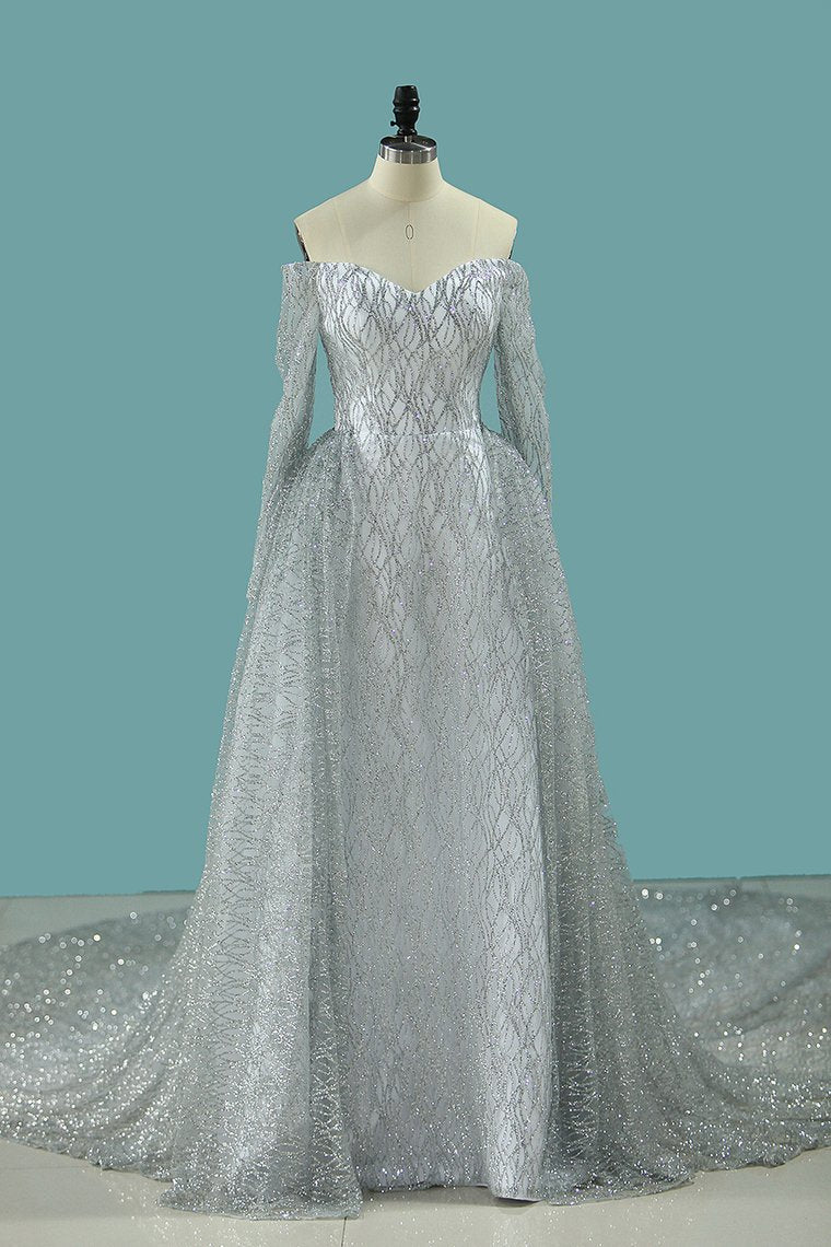 2024 Sweetheart Tulle A Line Wedding Dresses With Applique Court Train
