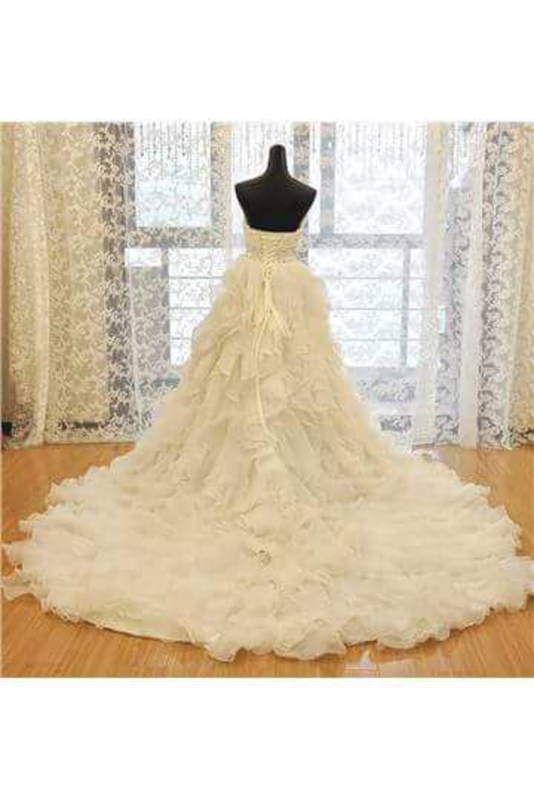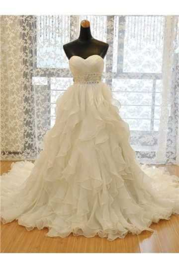 2024 Sweetheart Wedding Dress A Line Organza With Beads And Ruffles Chapel Train