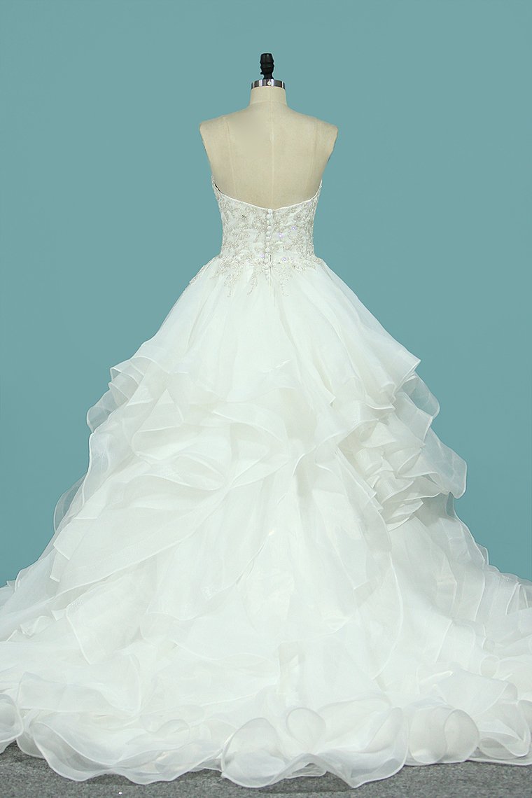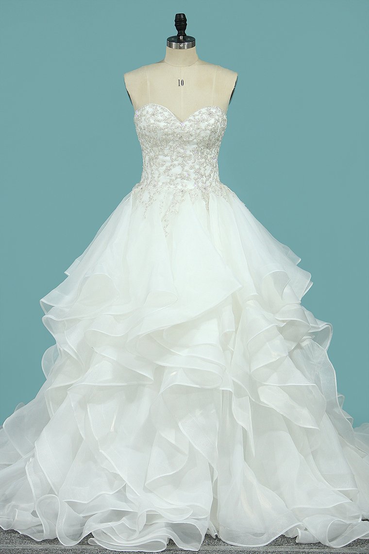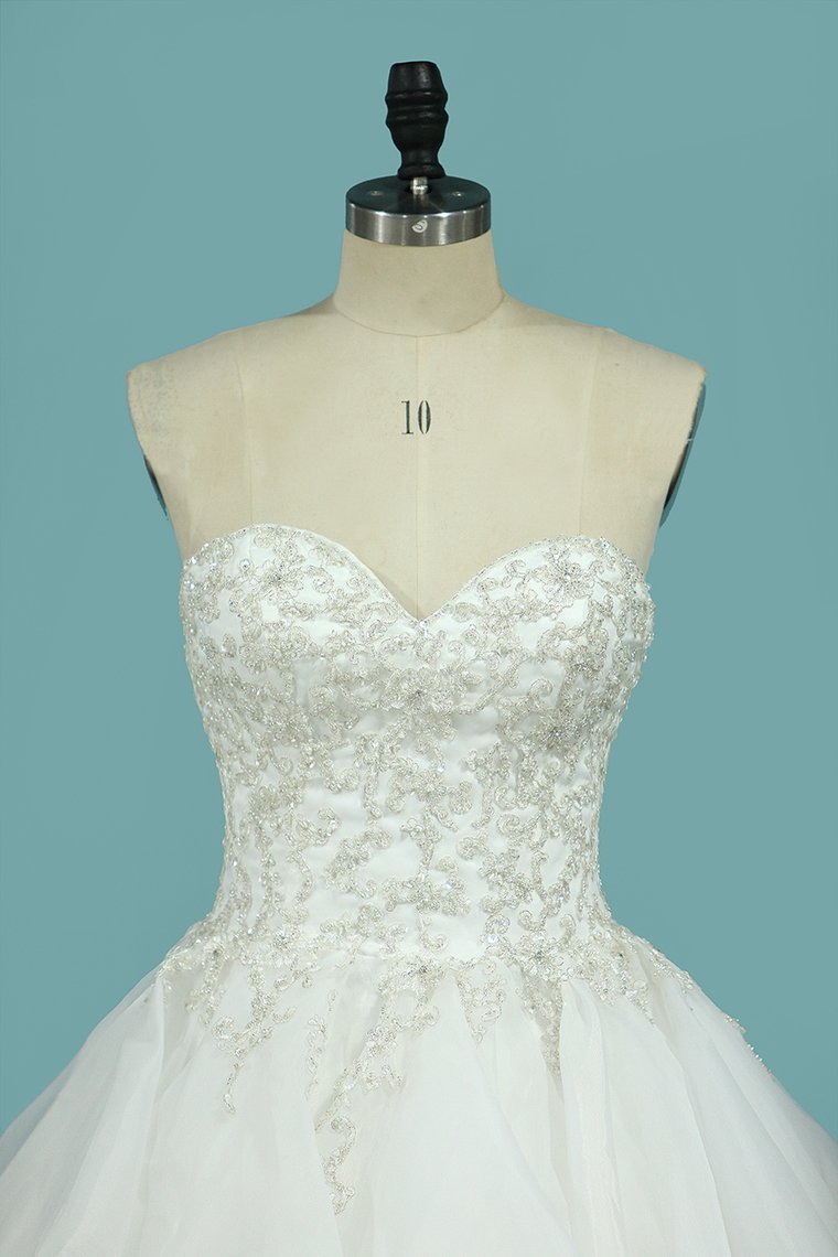 2024 Sweetheart Wedding Dresses A Line Organza With Beaded Bodice