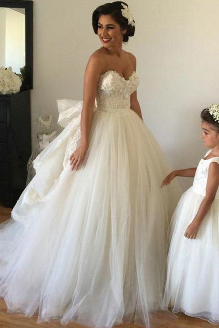 2024 Sweetheart Wedding Dresses A Line Tulle With Applique Sweep Train
