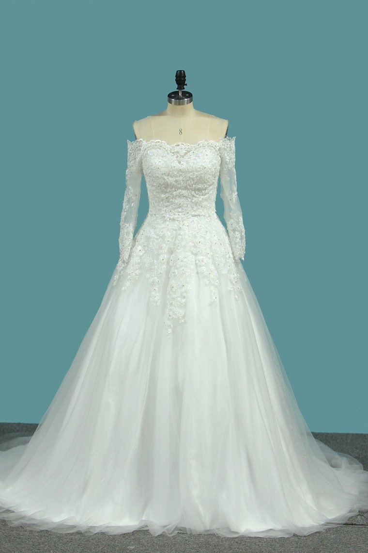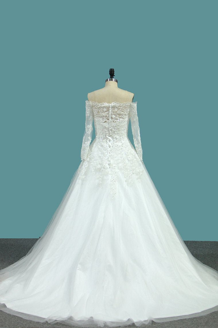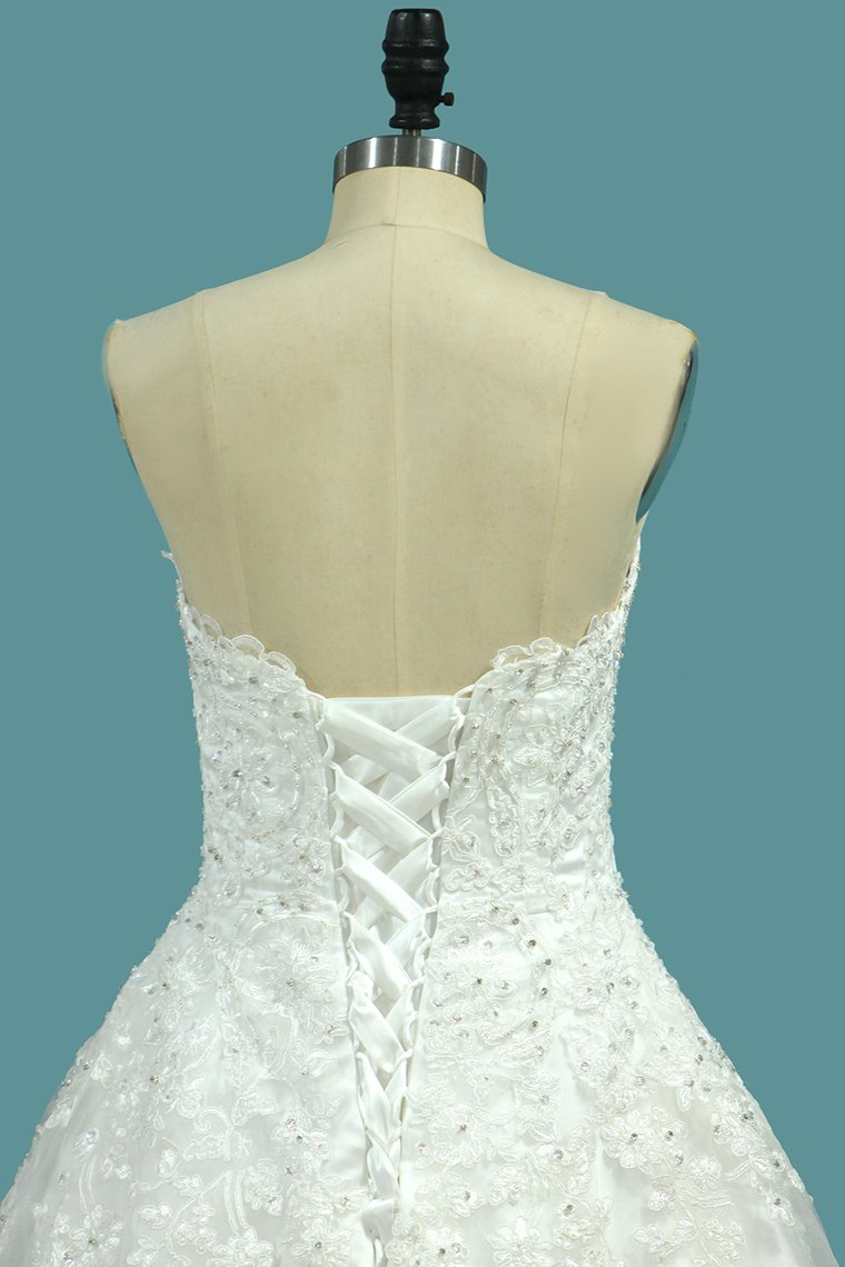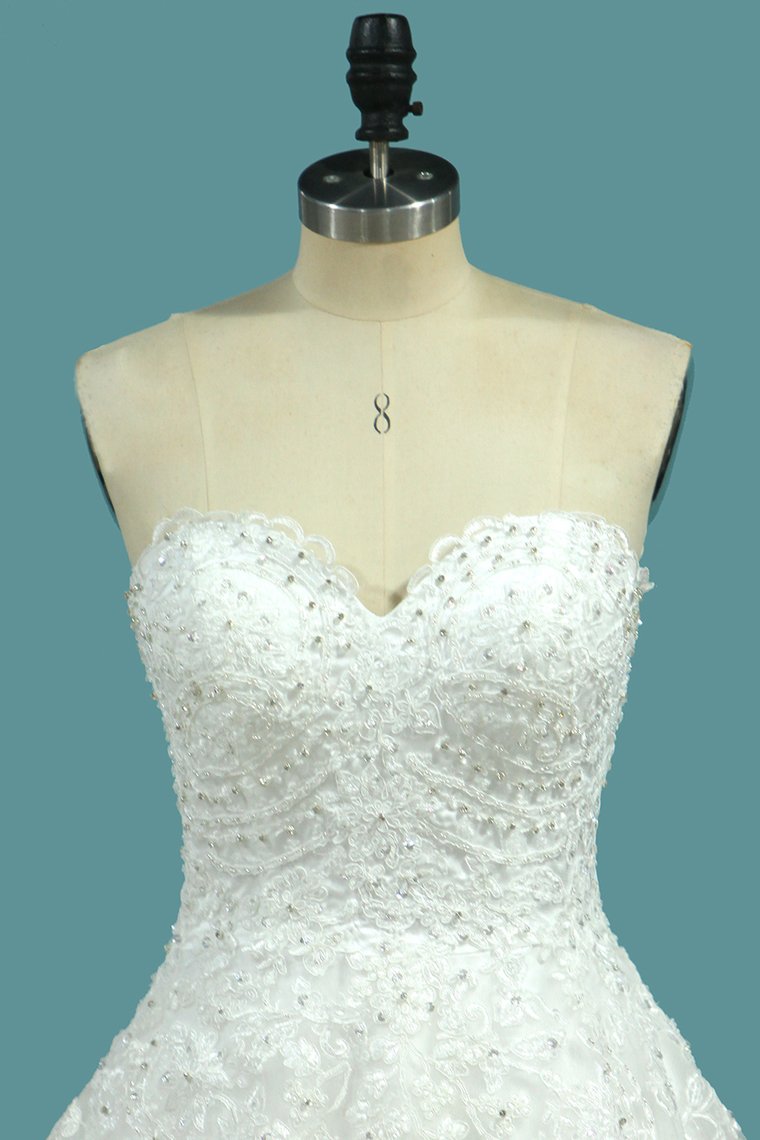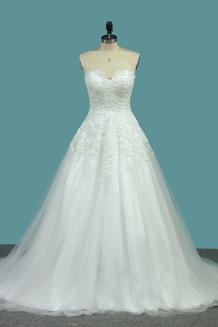 2024 Sweetheart Wedding Dresses A Line Tulle With Applique Sweep Train