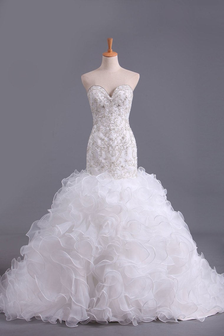 2024 Sweetheart Wedding Dresses Mermaid Organza With Beads And Rhinestones