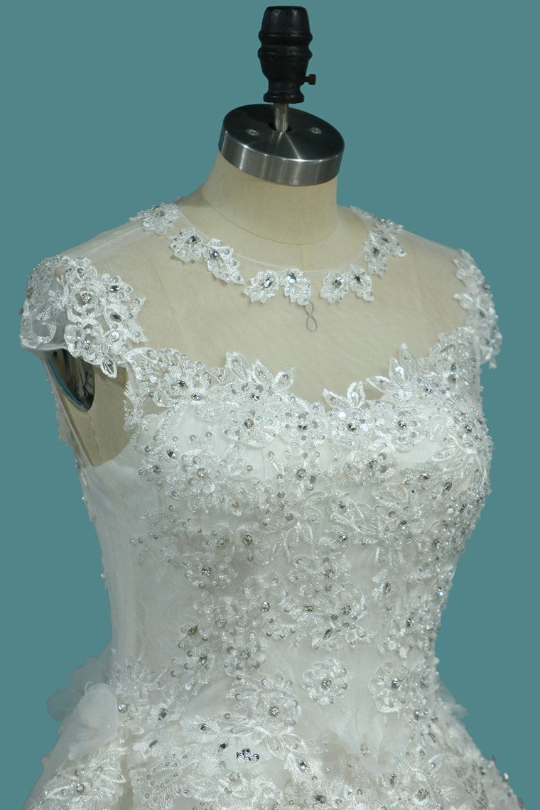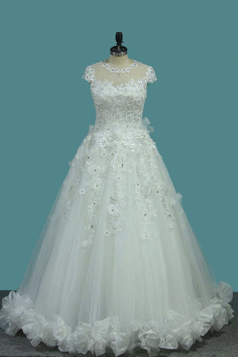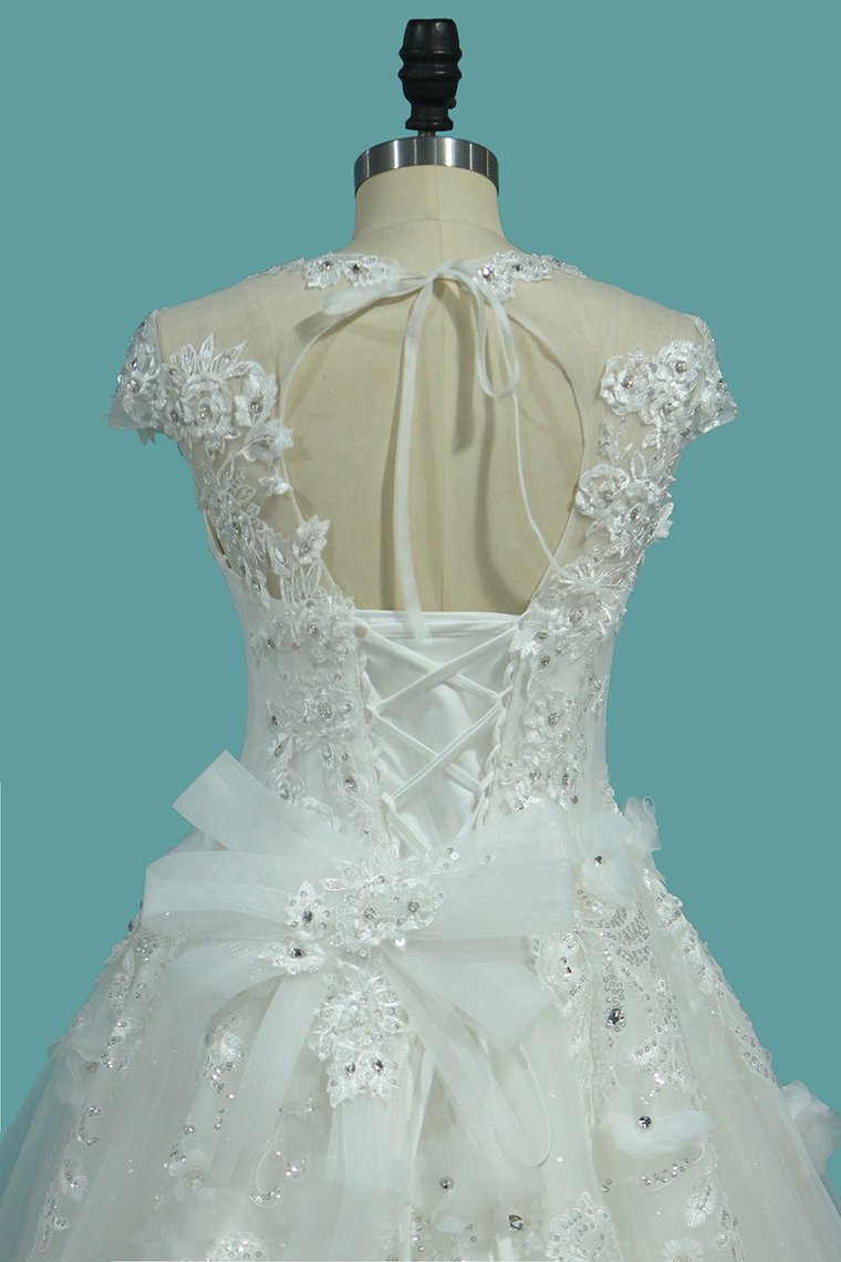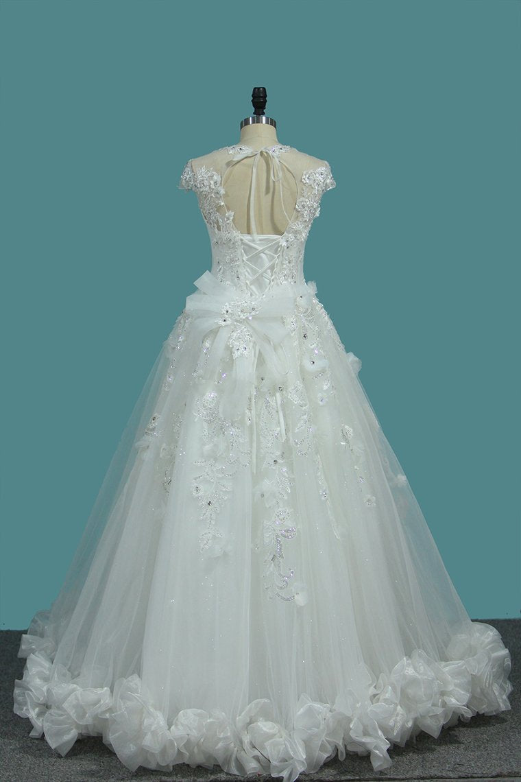 2024 Top Quality Lace Ball Gown Cap Sleeve Wedding Dresses With Applique & Beading Floor Length