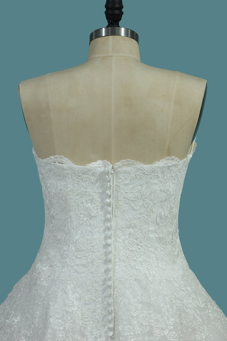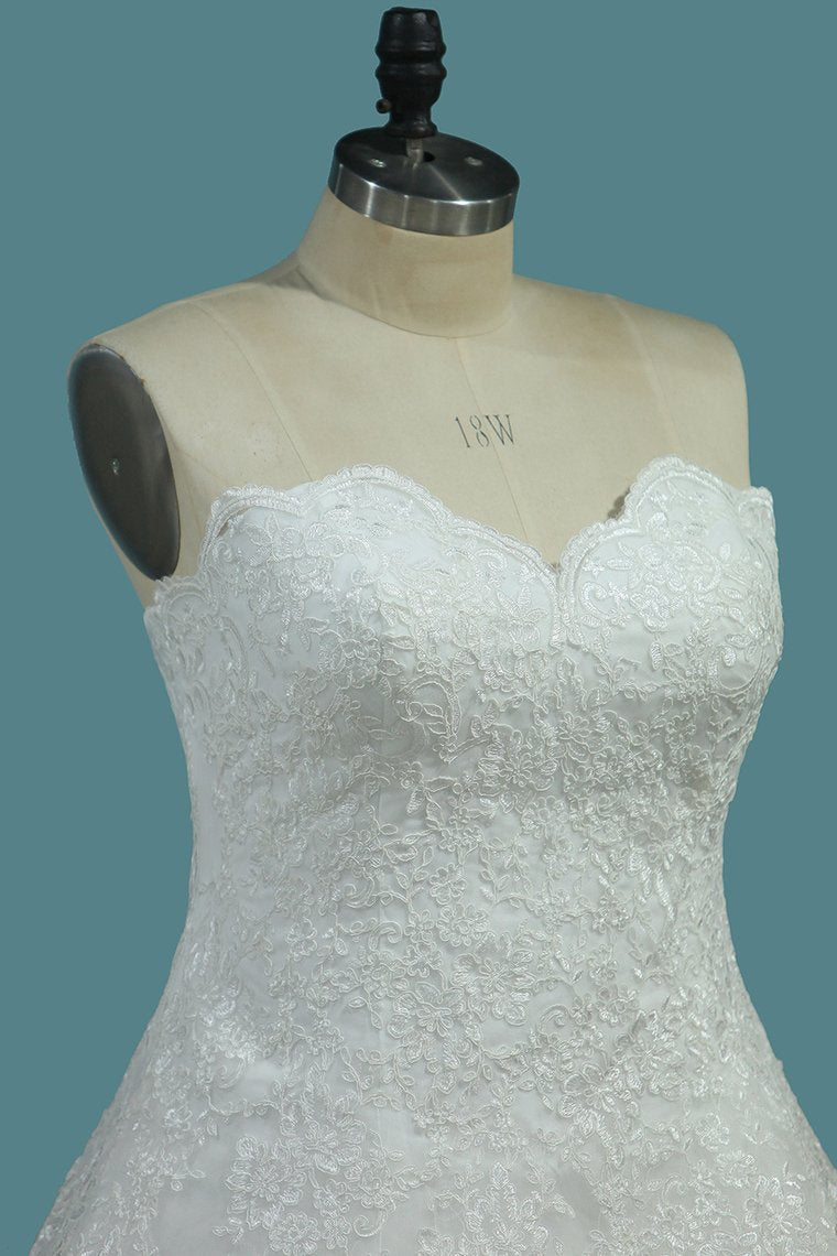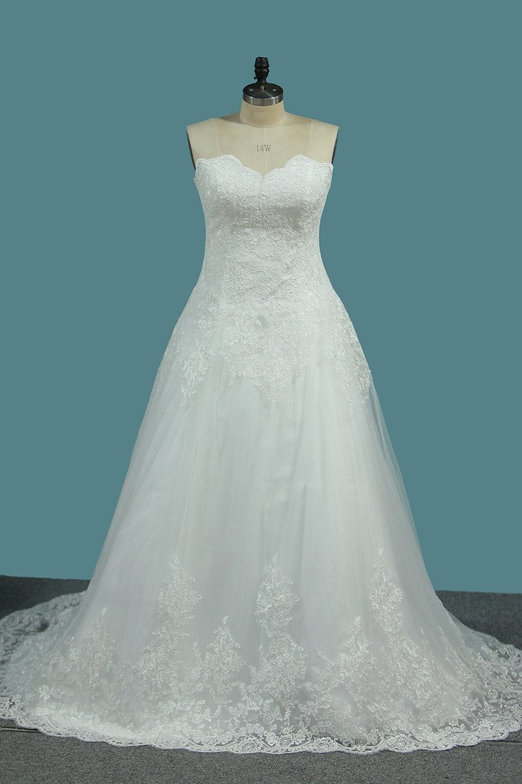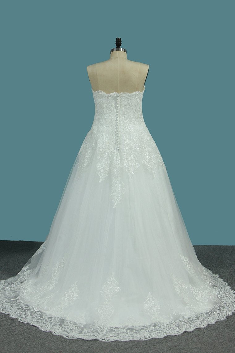 2024 Tulle A Line Sweetheart Wedding Dresses Appliques Court Train