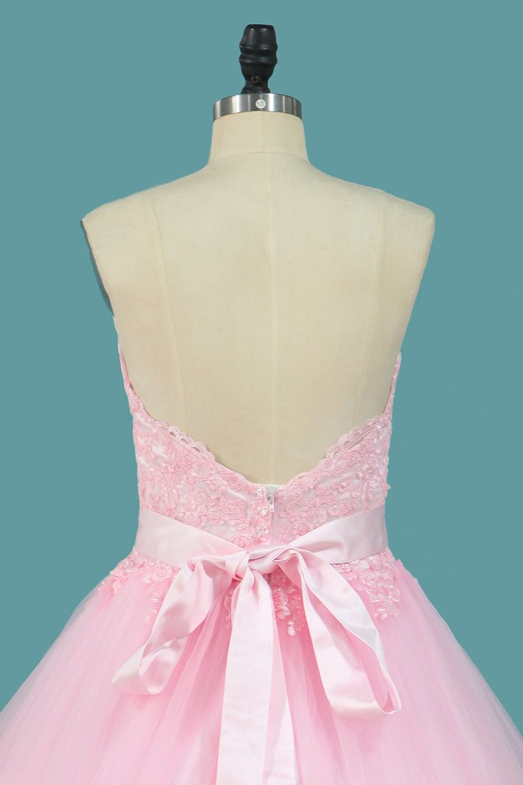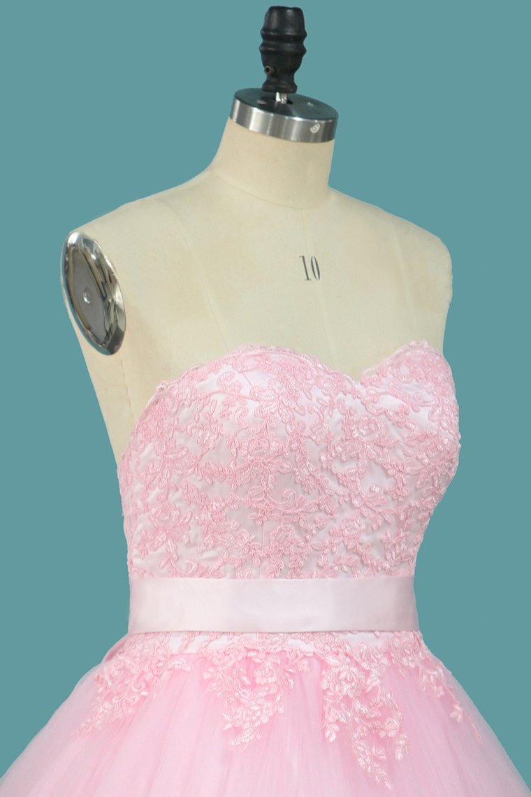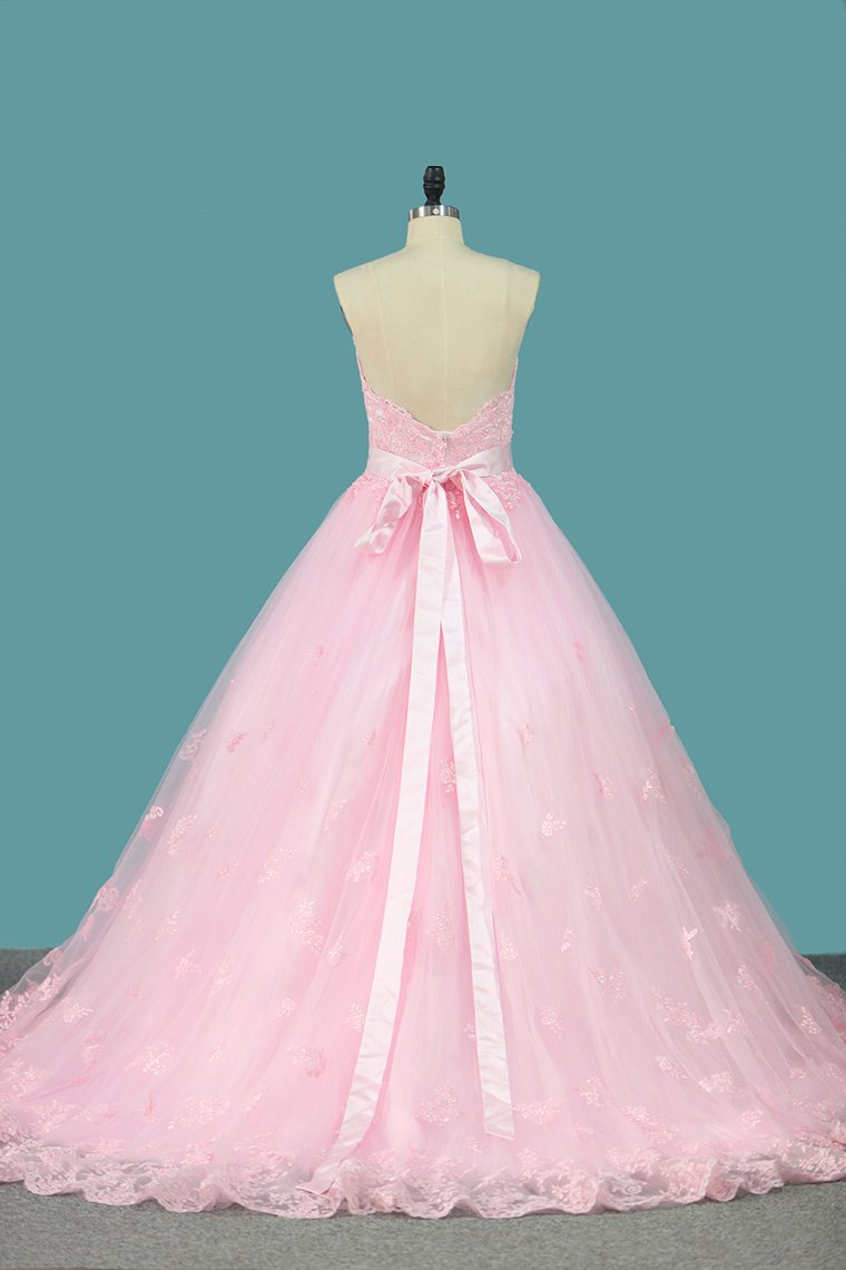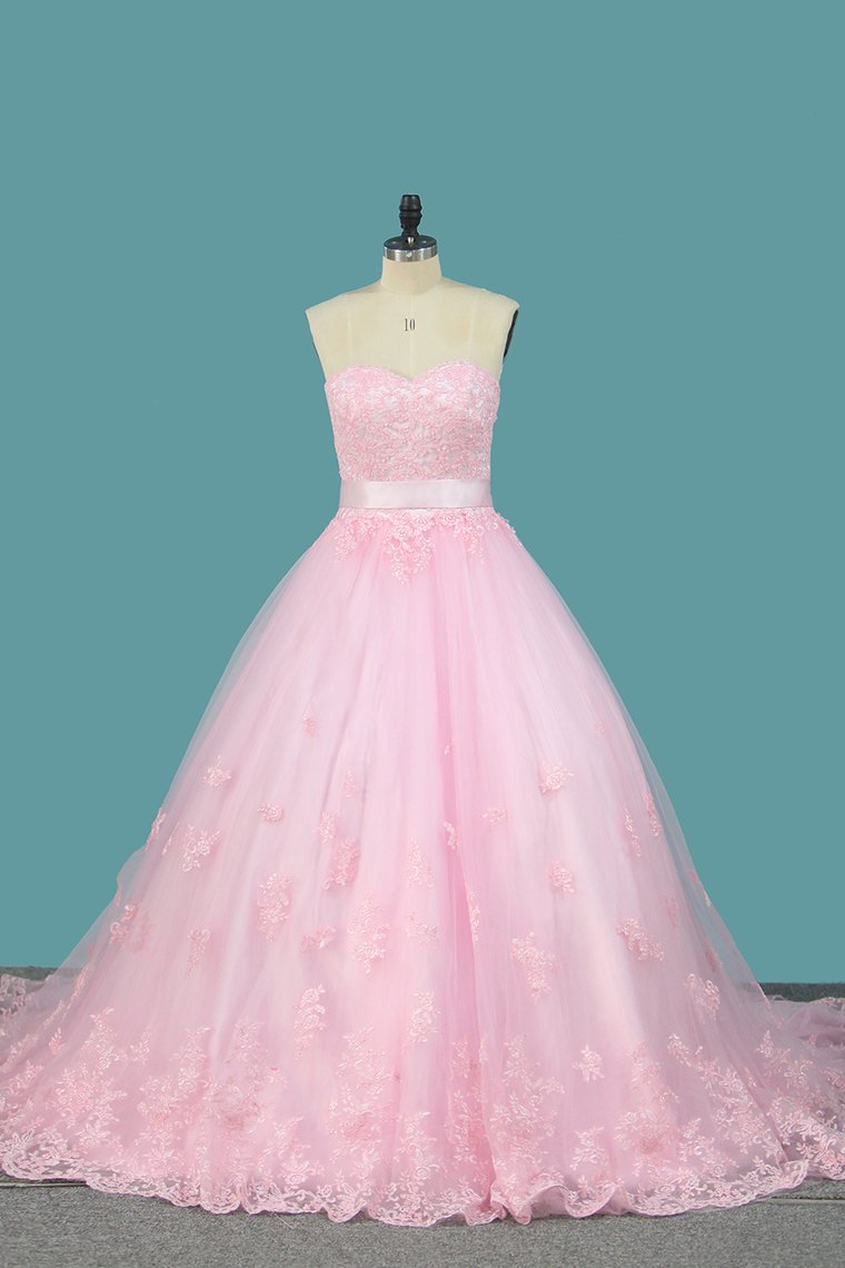 2024 Tulle A Line Sweetheart Wedding Dresses With Applique And Sash Court Train