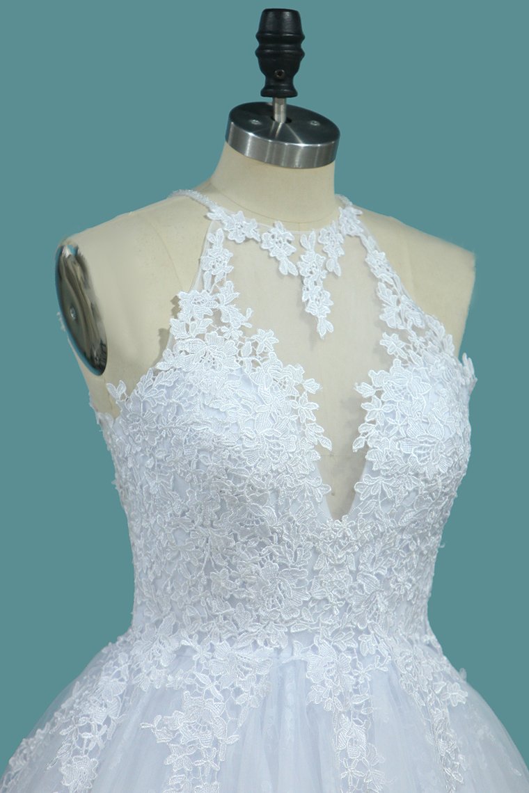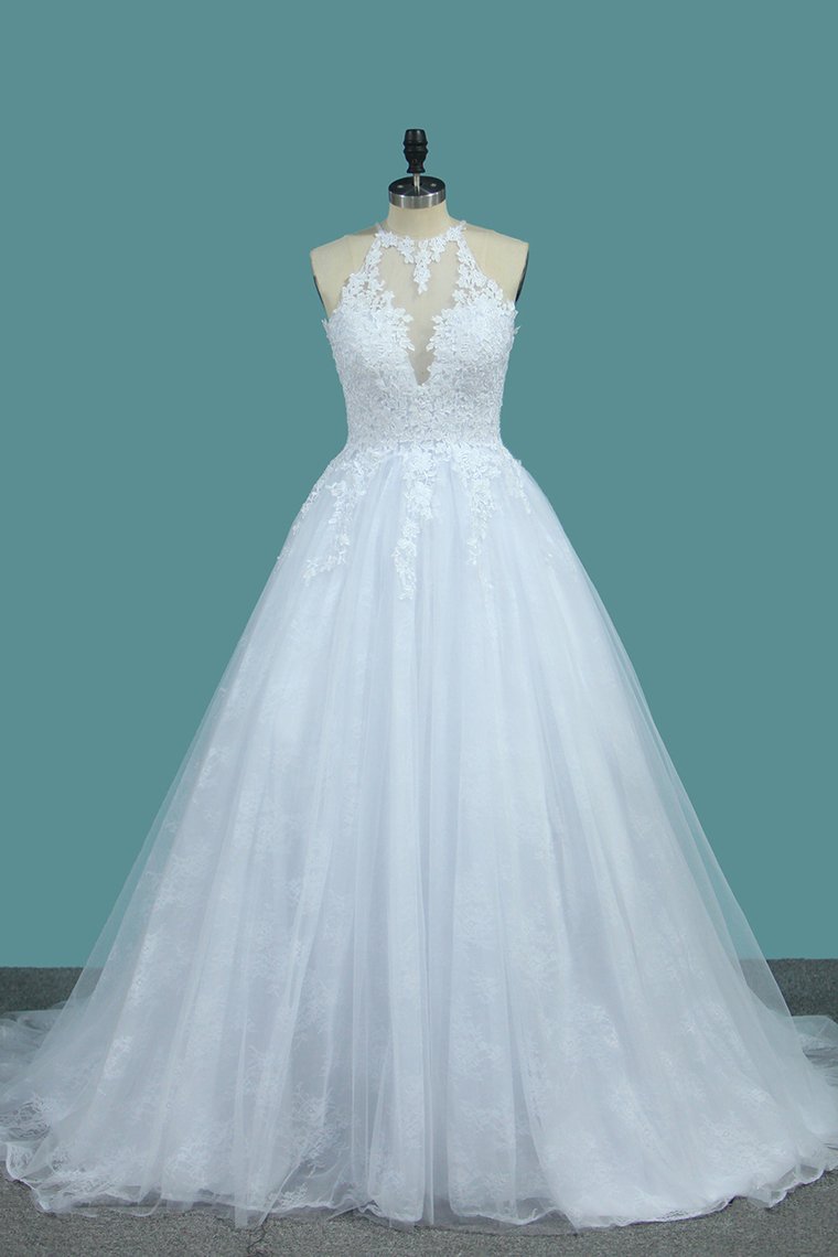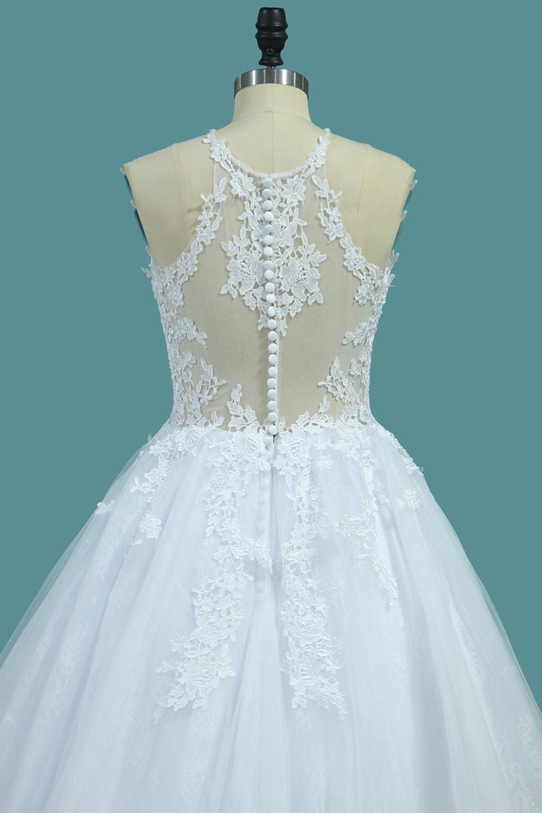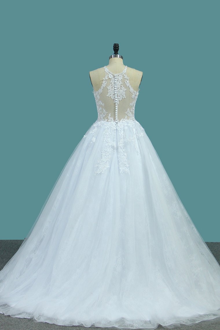 2024 Tulle & Lace Wedding Dresses Scoop A Line With Applique Sweep Train