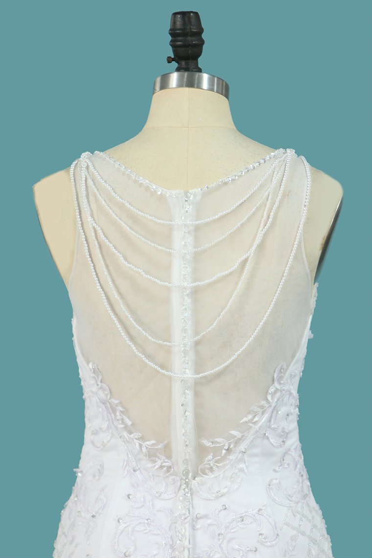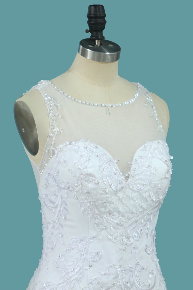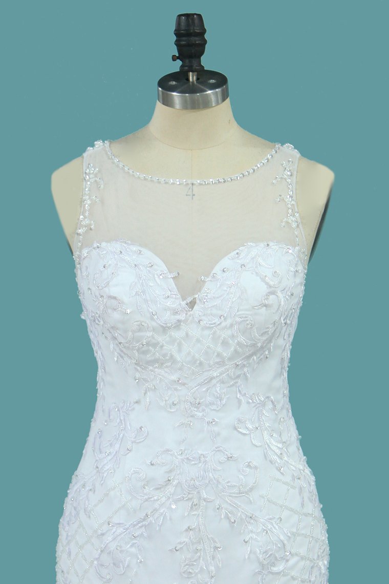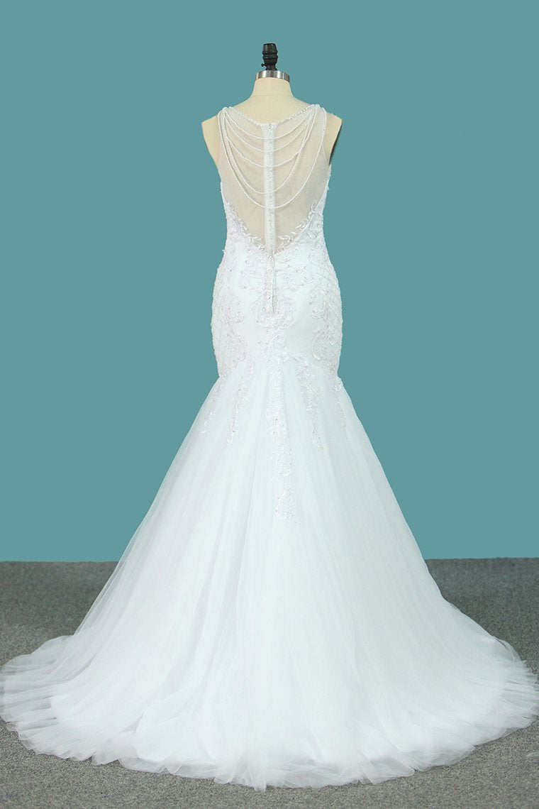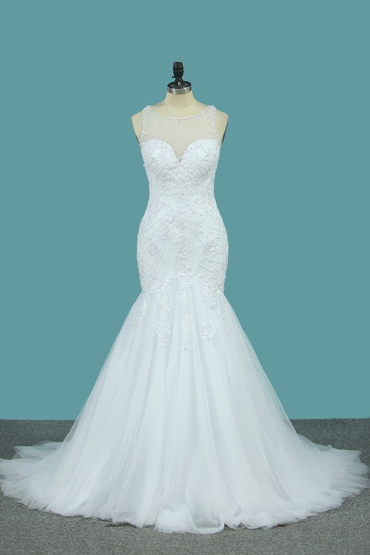 2024 Tulle Mermaid Scoop Wedding Dresses With Applique And Beads