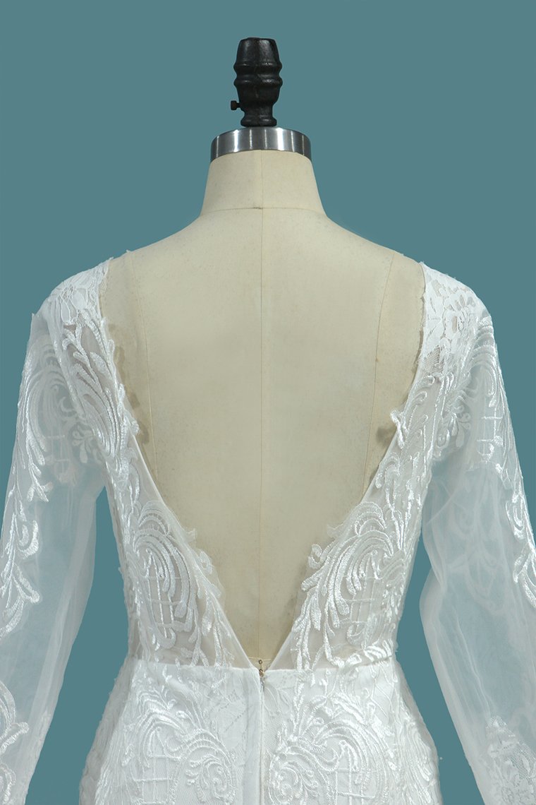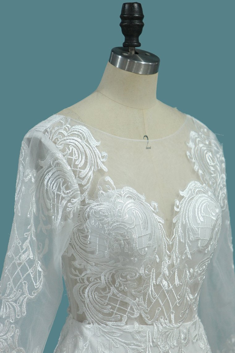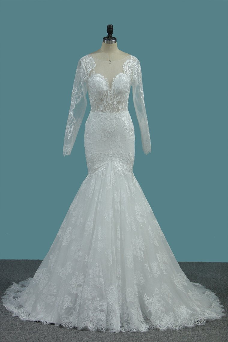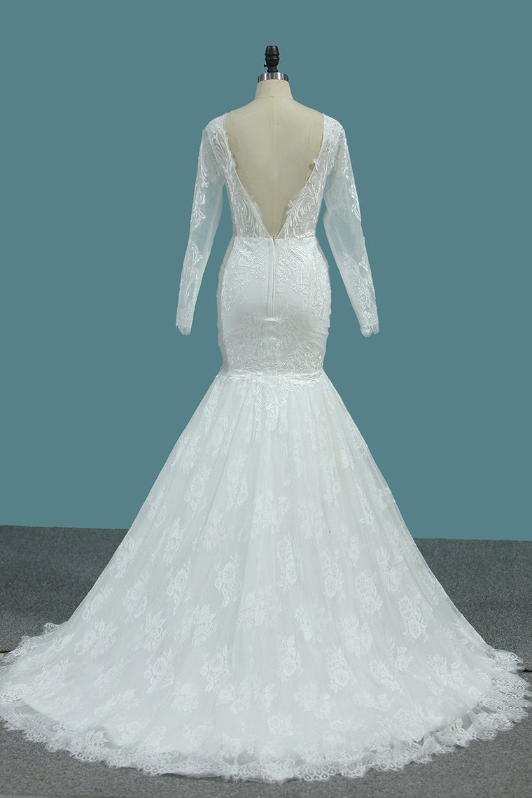 2024 Tulle Mermaid Wedding Dresses Scoop Long Sleeves With Applique