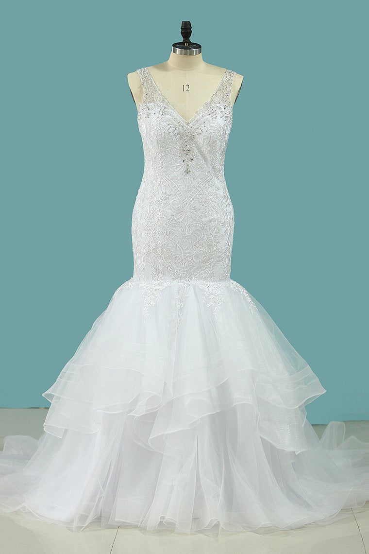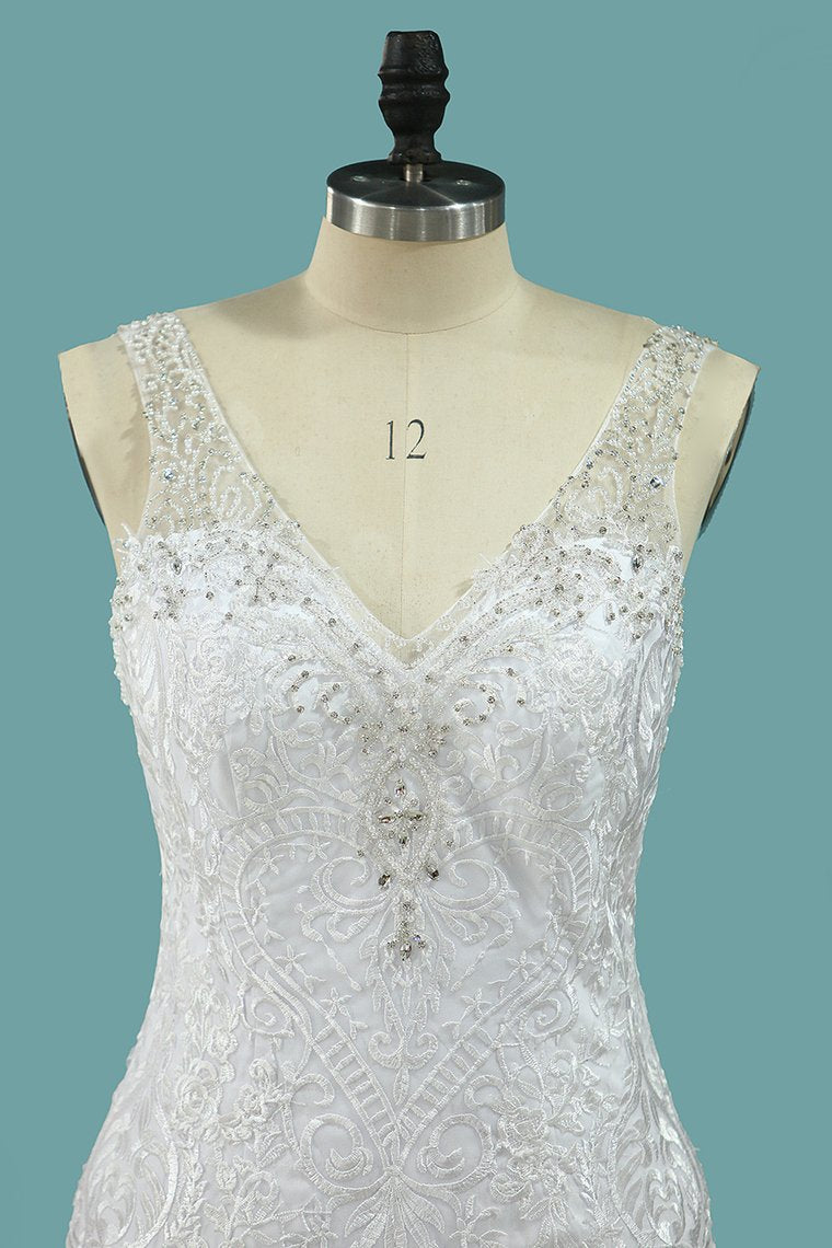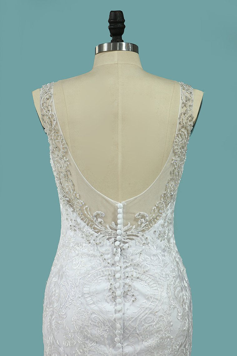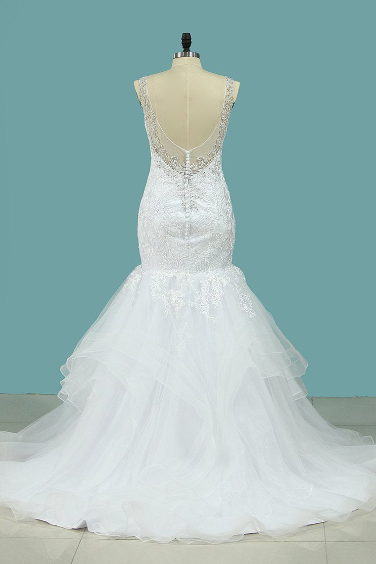 2024 Tulle Mermaid Wedding Dresses Straps Beaded Neckline Court Train
