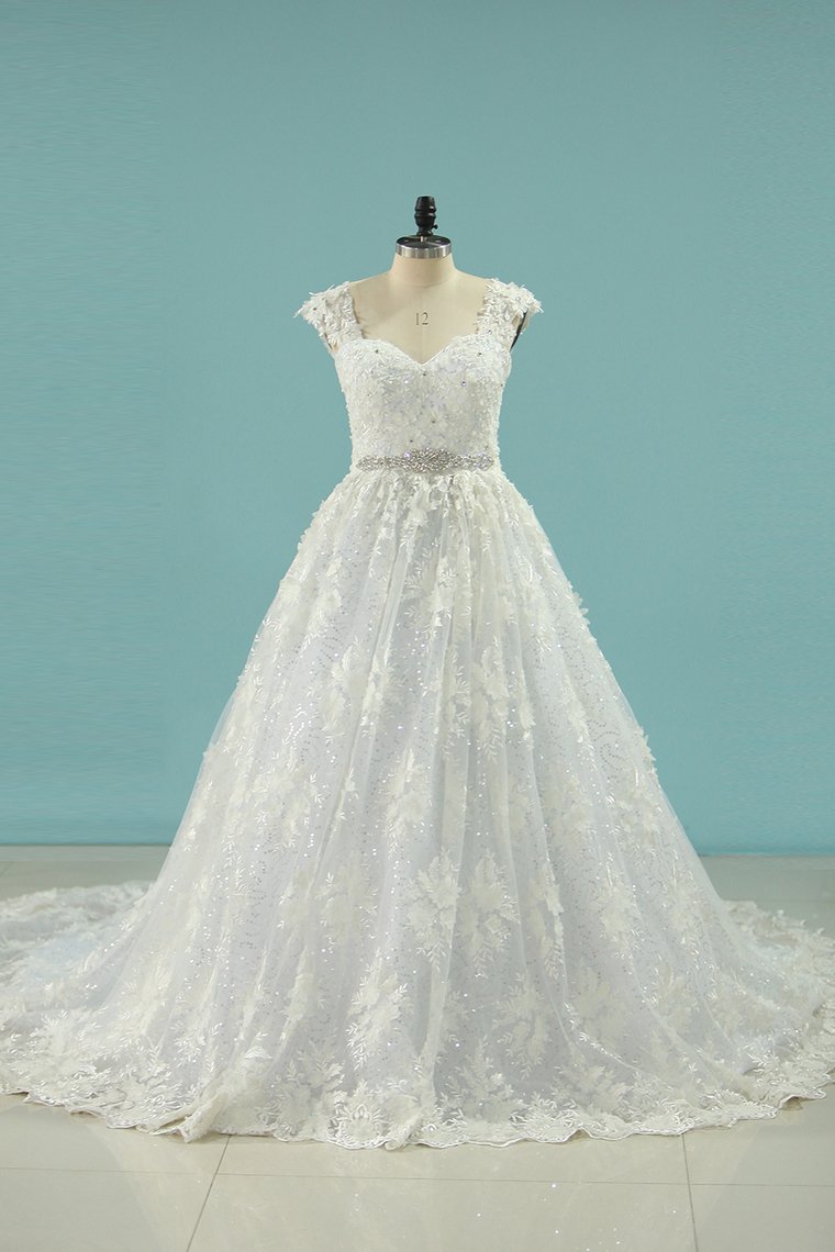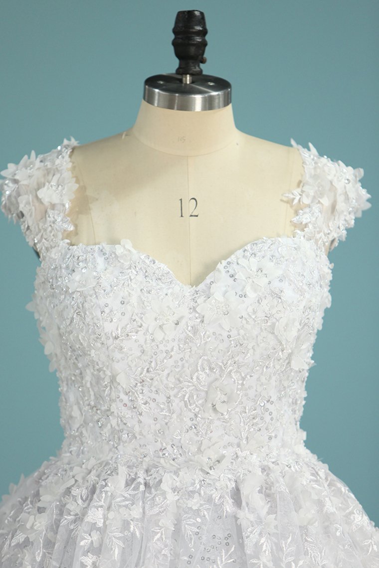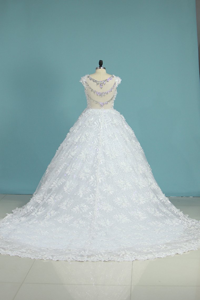 2024 Tulle Scalloped Neck A Line Wedding Dresses With Ruffles And Beads