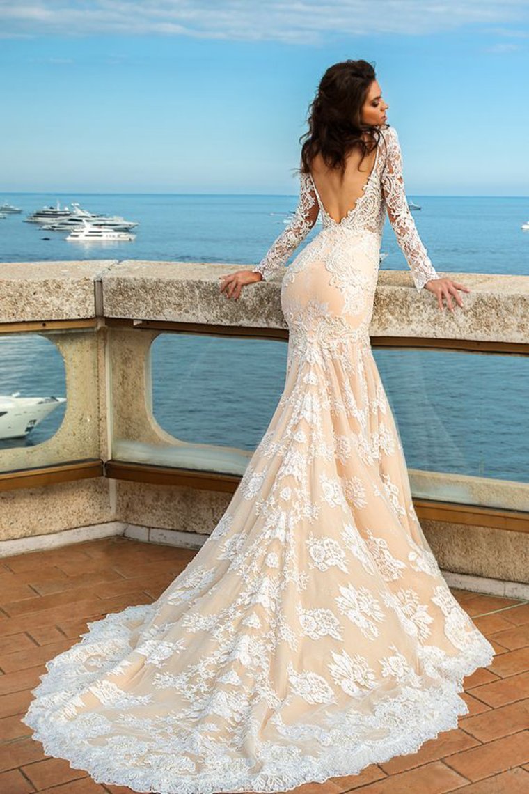 2024 Tulle Scoop Long Sleeves With Applique Mermaid Wedding Dresses