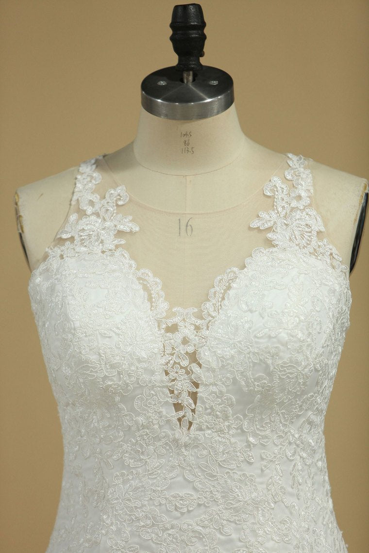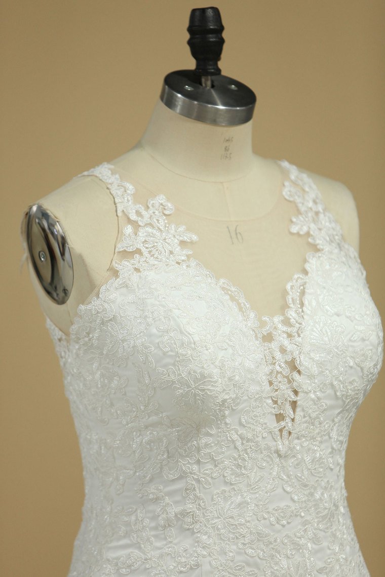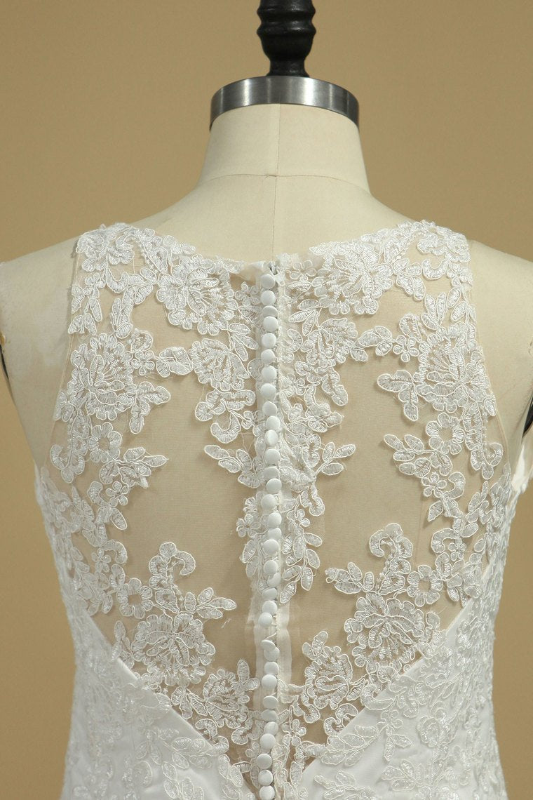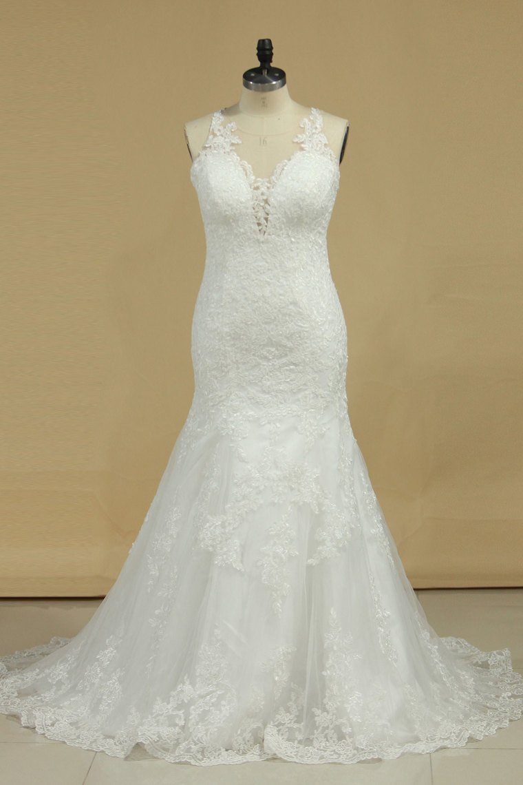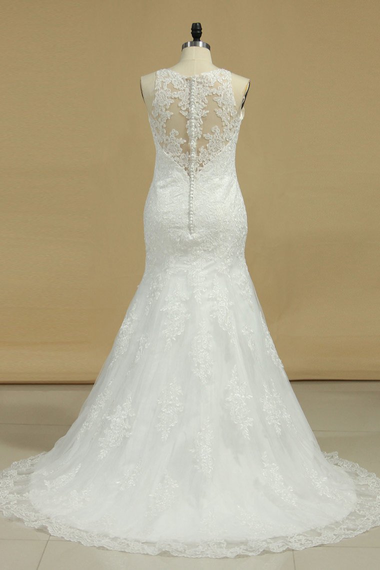 2024 Tulle Scoop With Applique Mermaid Court Train Wedding Dresses