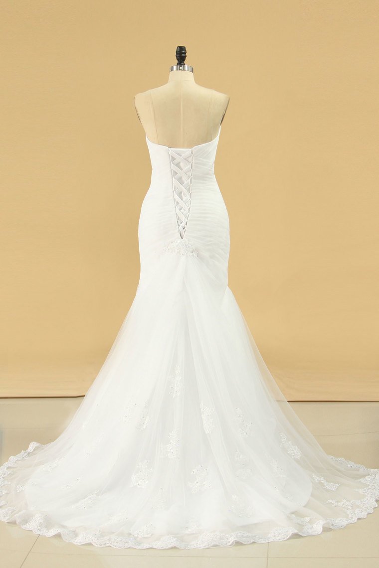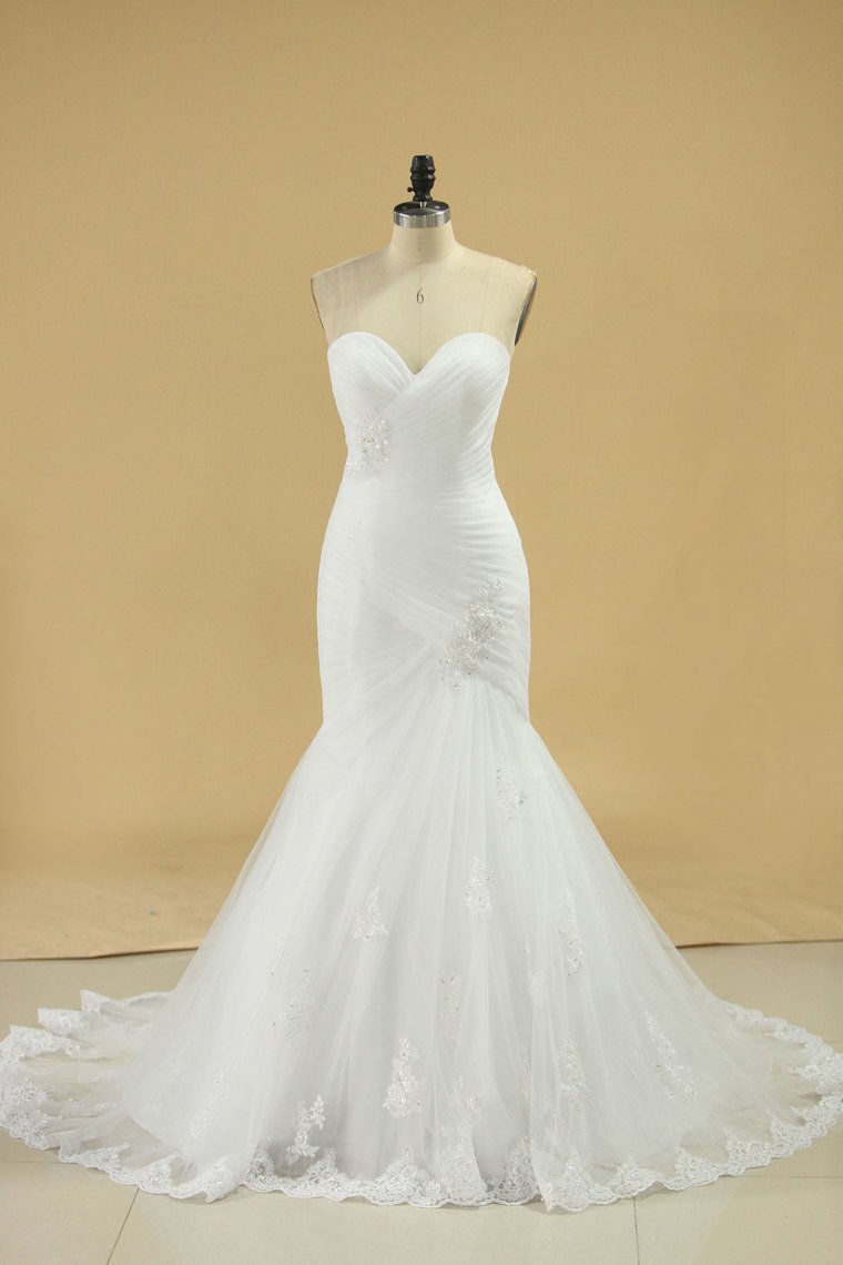 2024 Tulle Sweetheart Ruched Bodice Wedding Dresses With Applique Mermaid