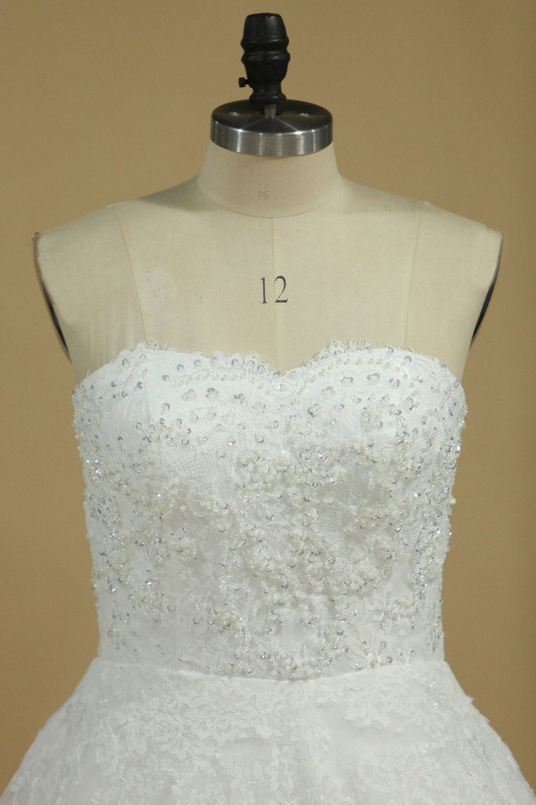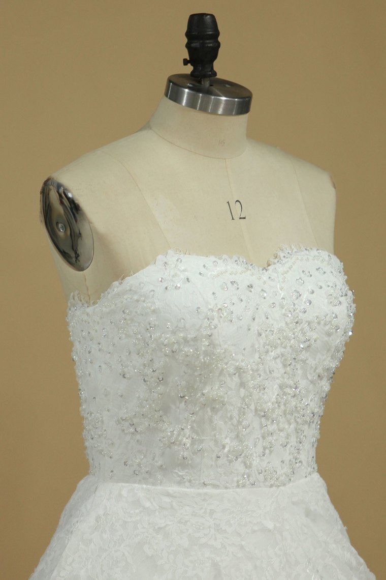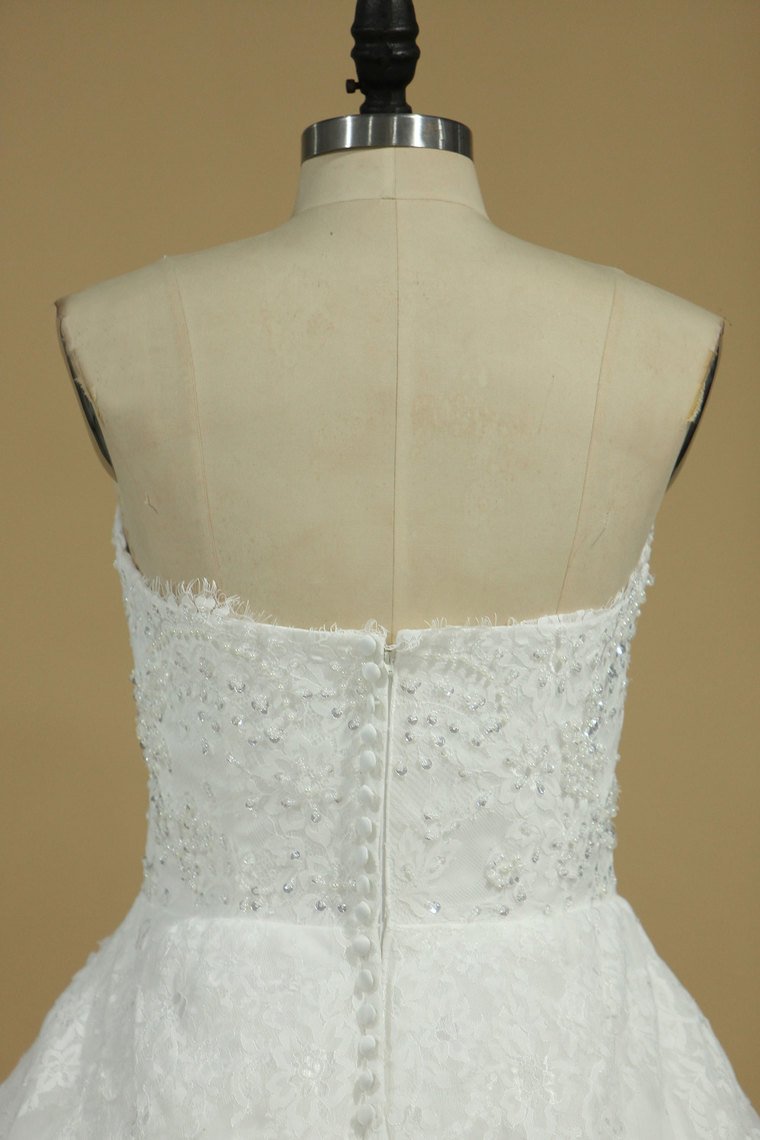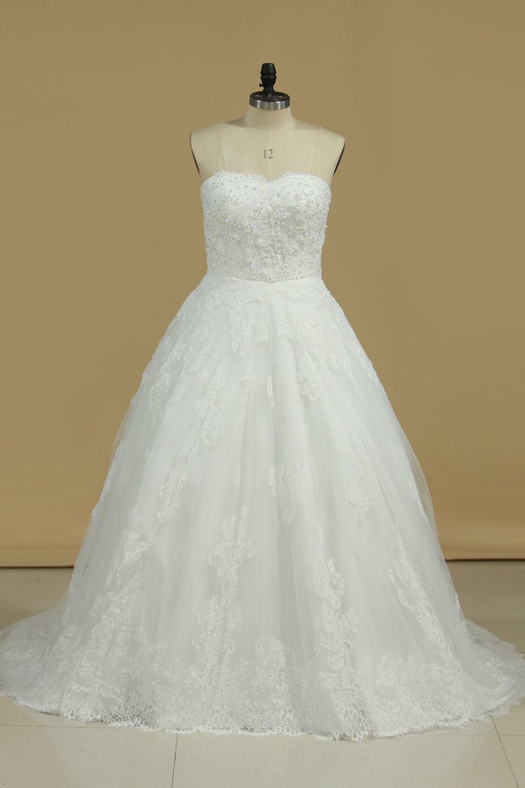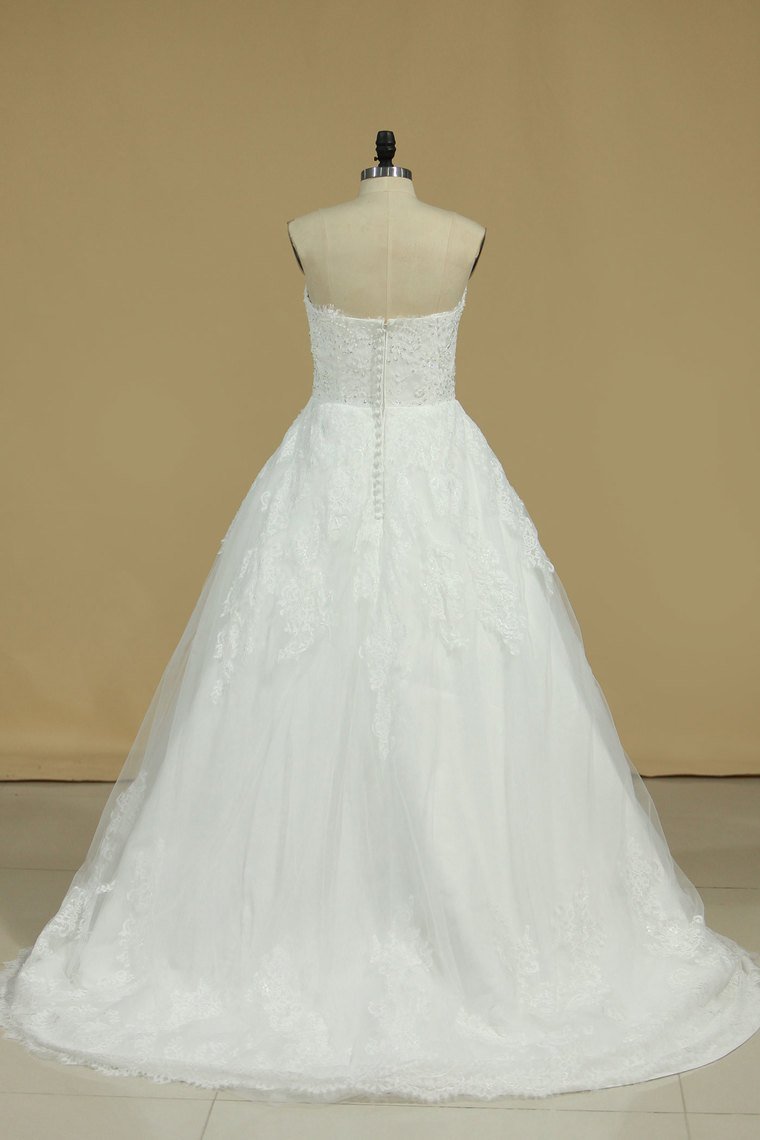 2024 Tulle Sweetheart Wedding Dresses A Line With Applique Covered Button