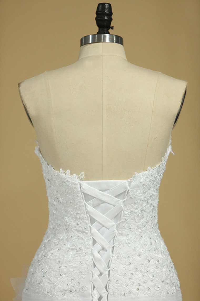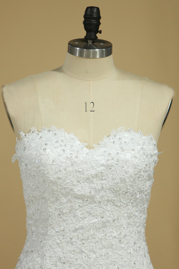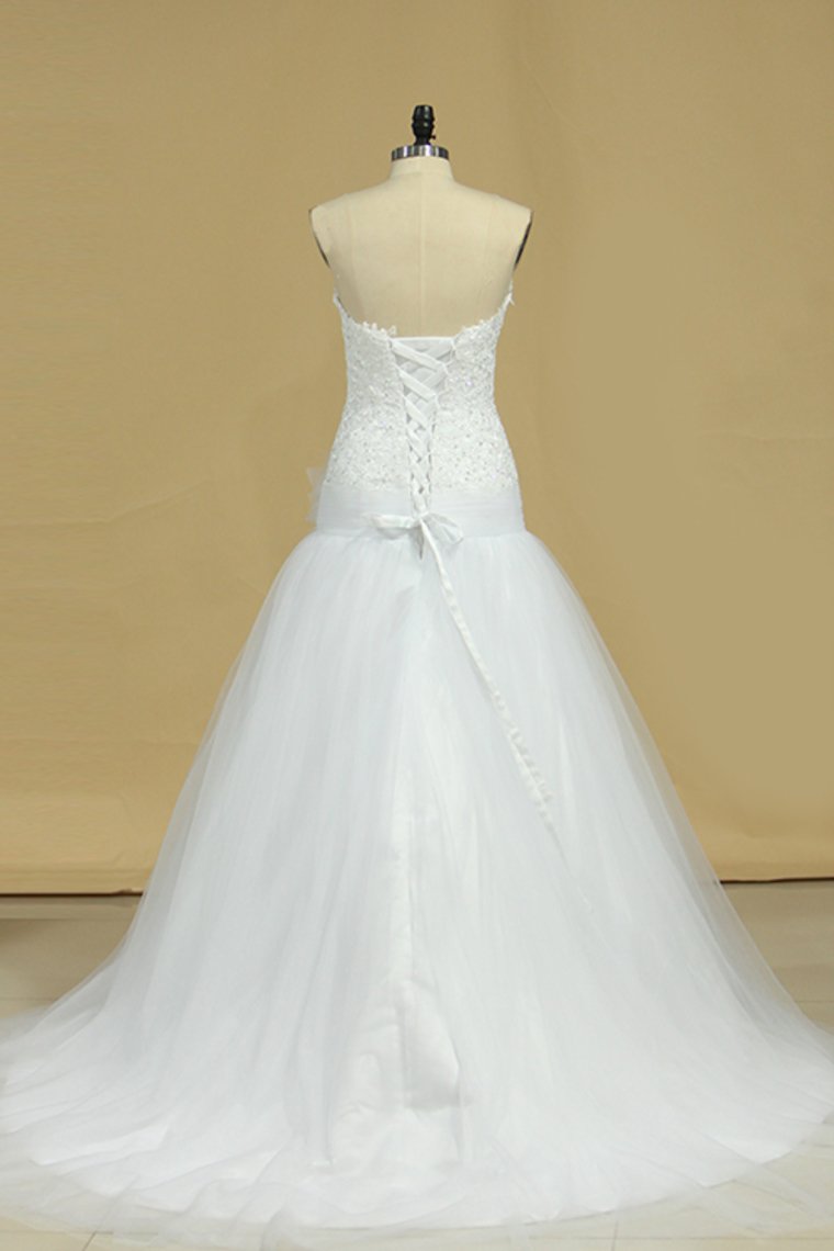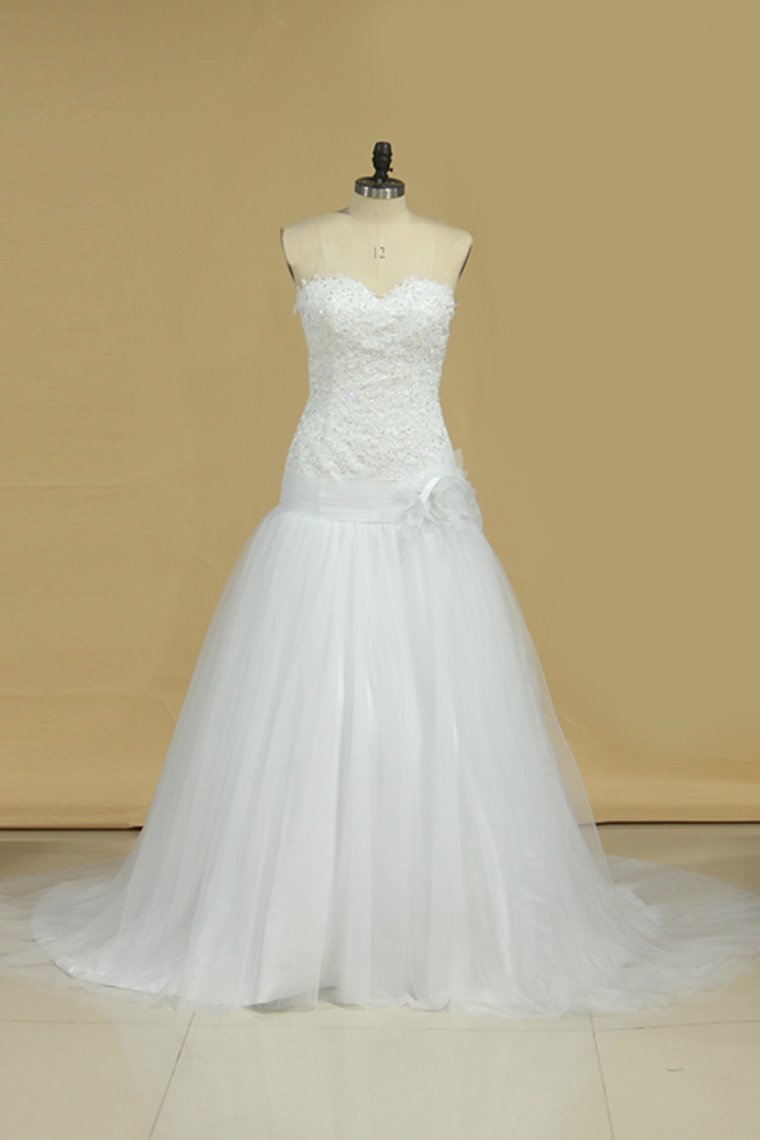 2024 Tulle Sweetheart With Applique Wedding Dresses A Line Sweep Train