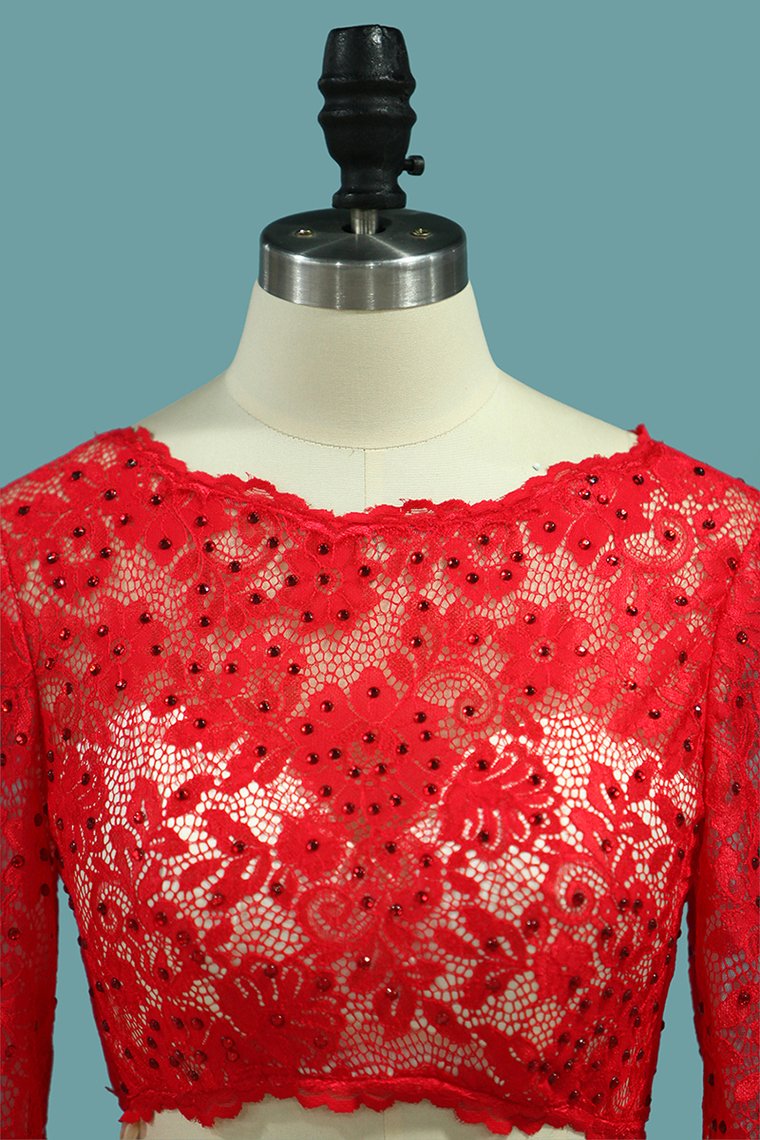2024 Two-Piece Scoop Long Sleeves Lace Sheath Cocktail Dresses