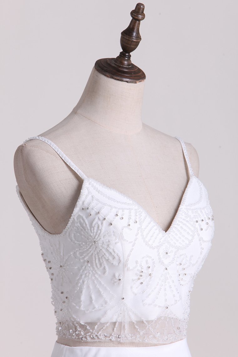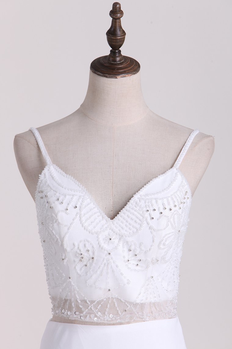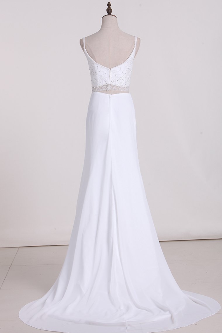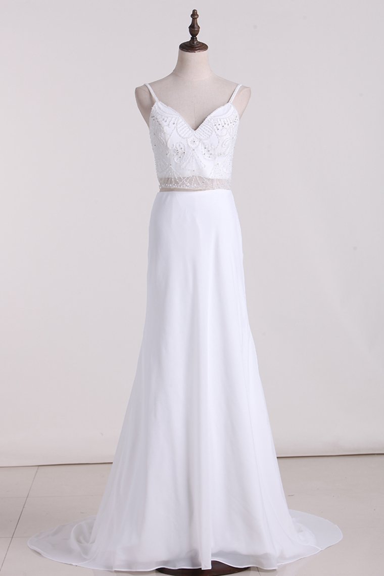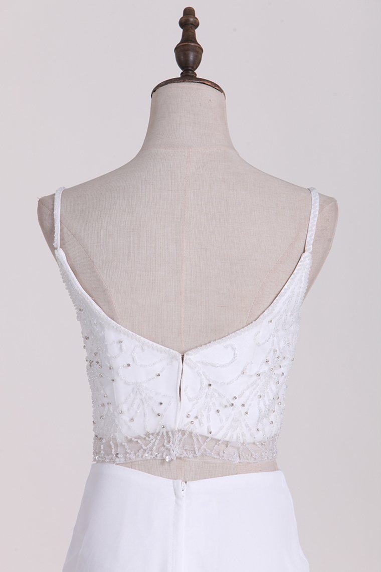 2024 Two-Piece Spaghetti Straps Wedding Dresses A Line Chiffon With Beading