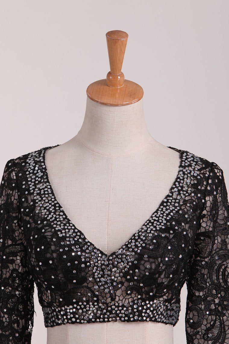 2024 Two-Piece V Neck Long Sleeves Cocktail Dresses Column Lace Short/Mini