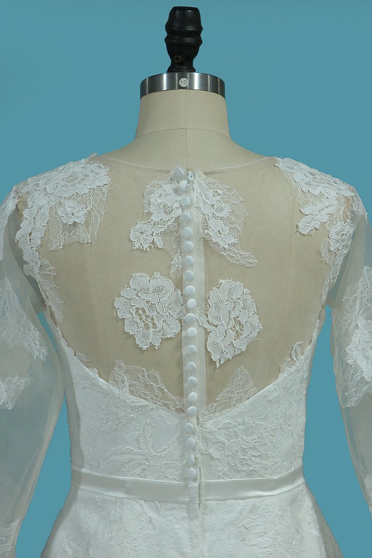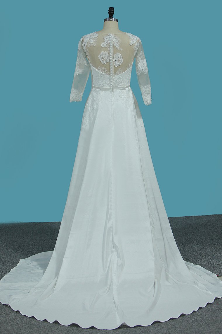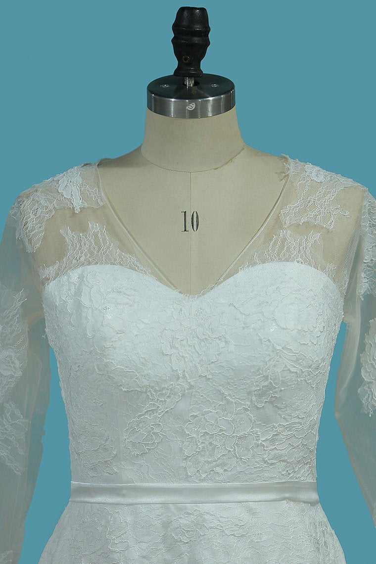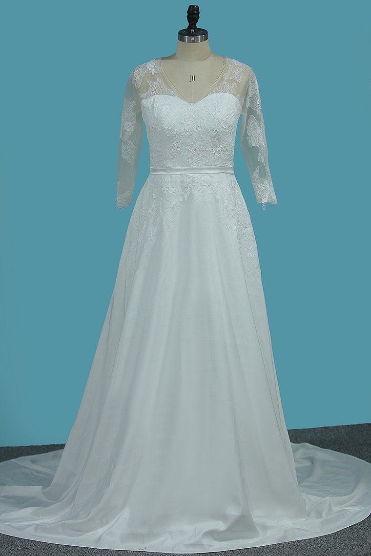 2024 V Neck 3/4 Length Sleeves Chiffon Wedding Dresses With Applique A Line