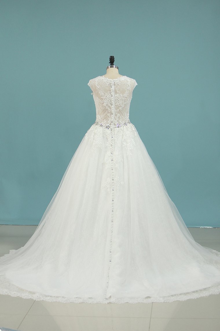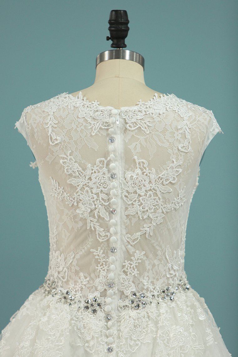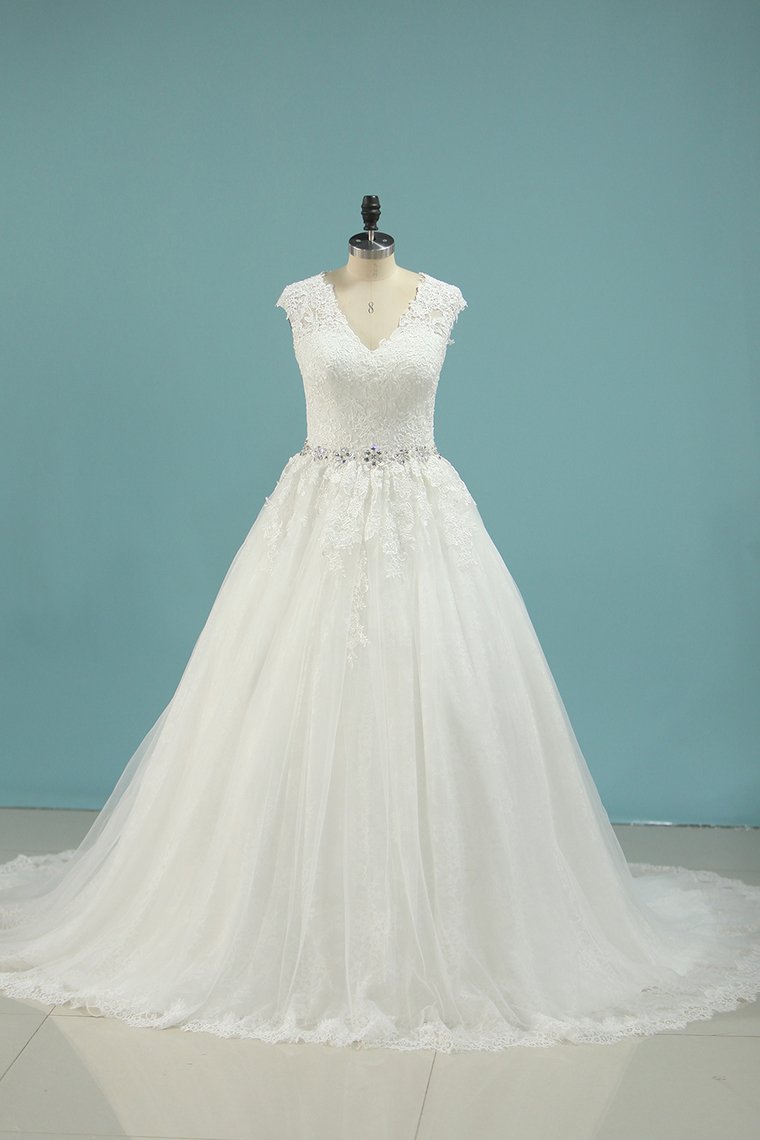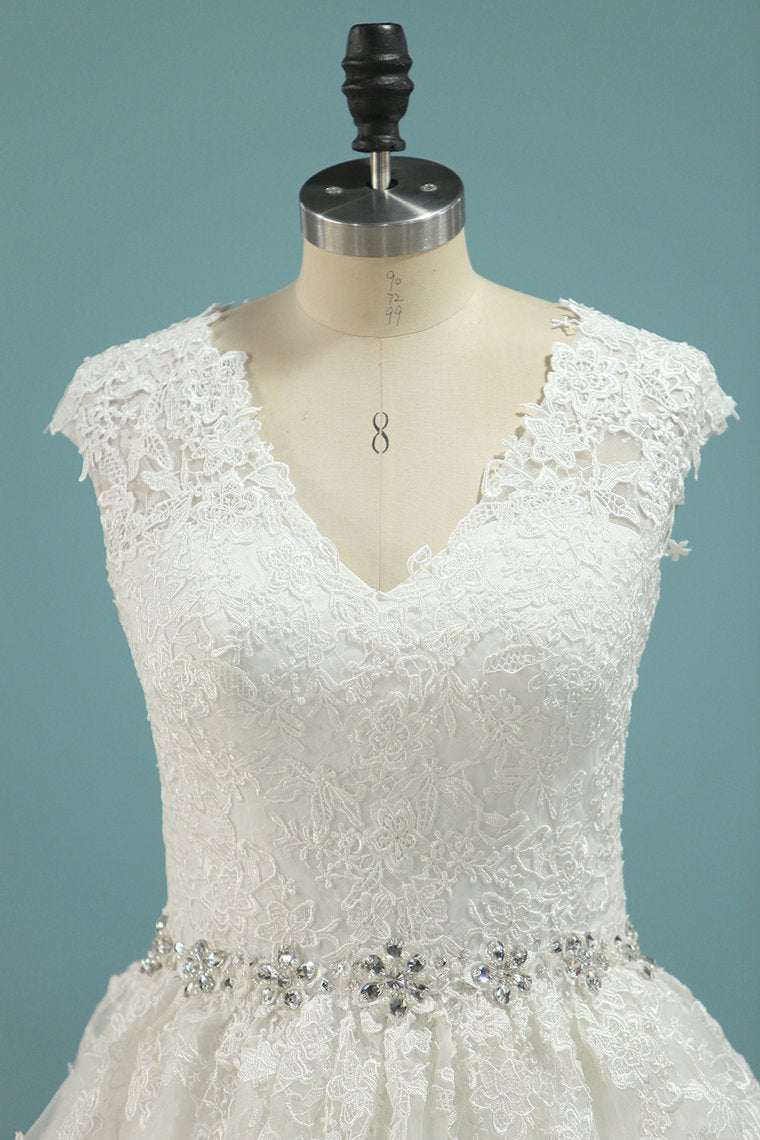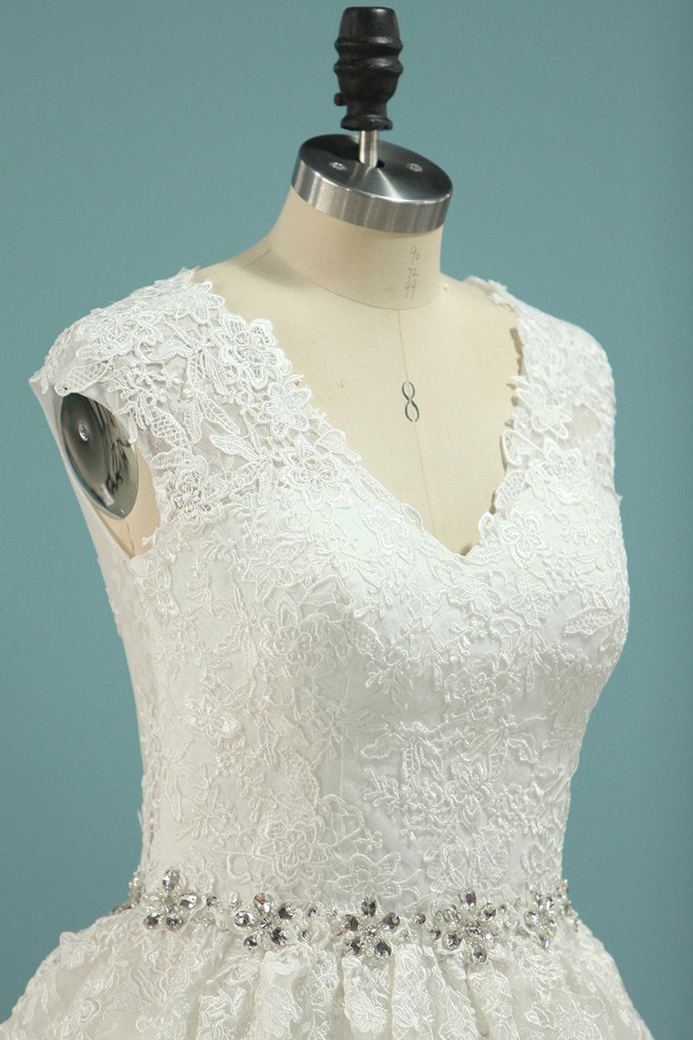 2024 V Neck A Line Beaded Waistline Wedding Dresses Lace With Applique