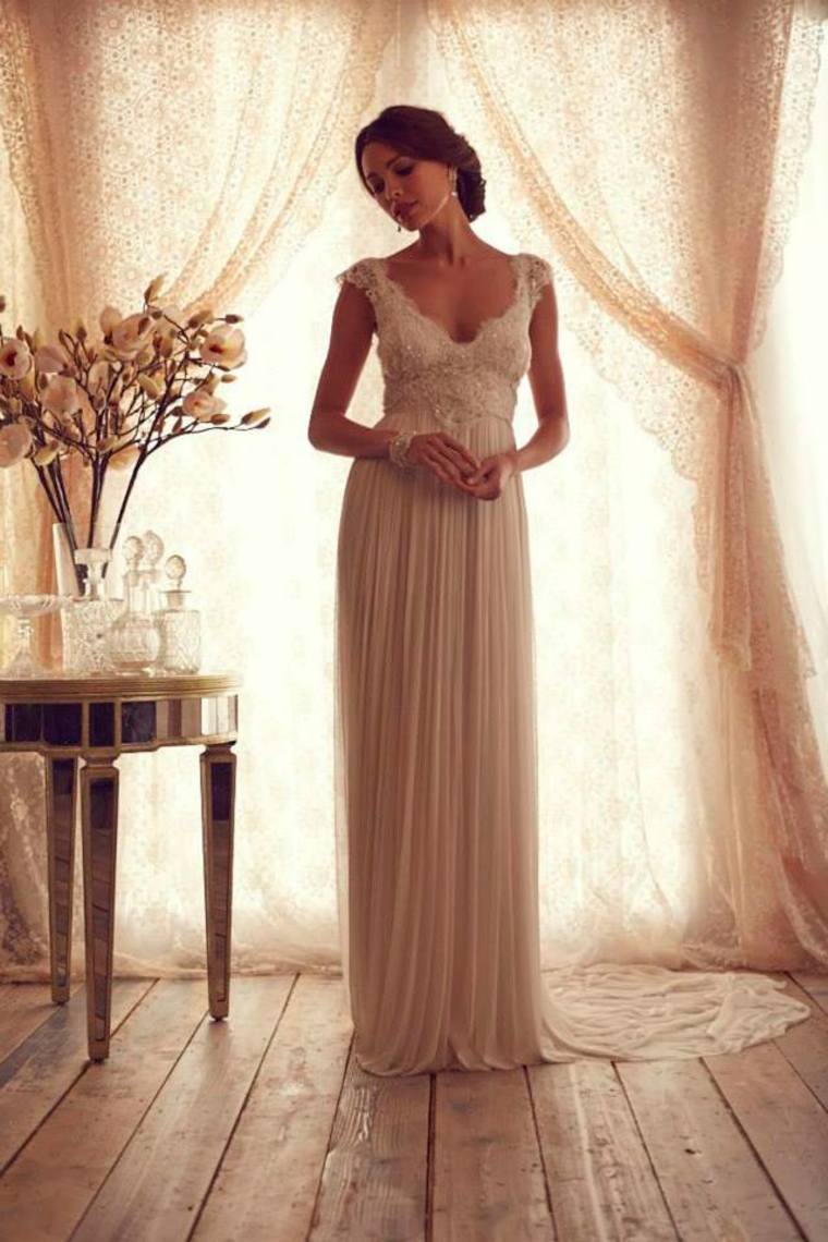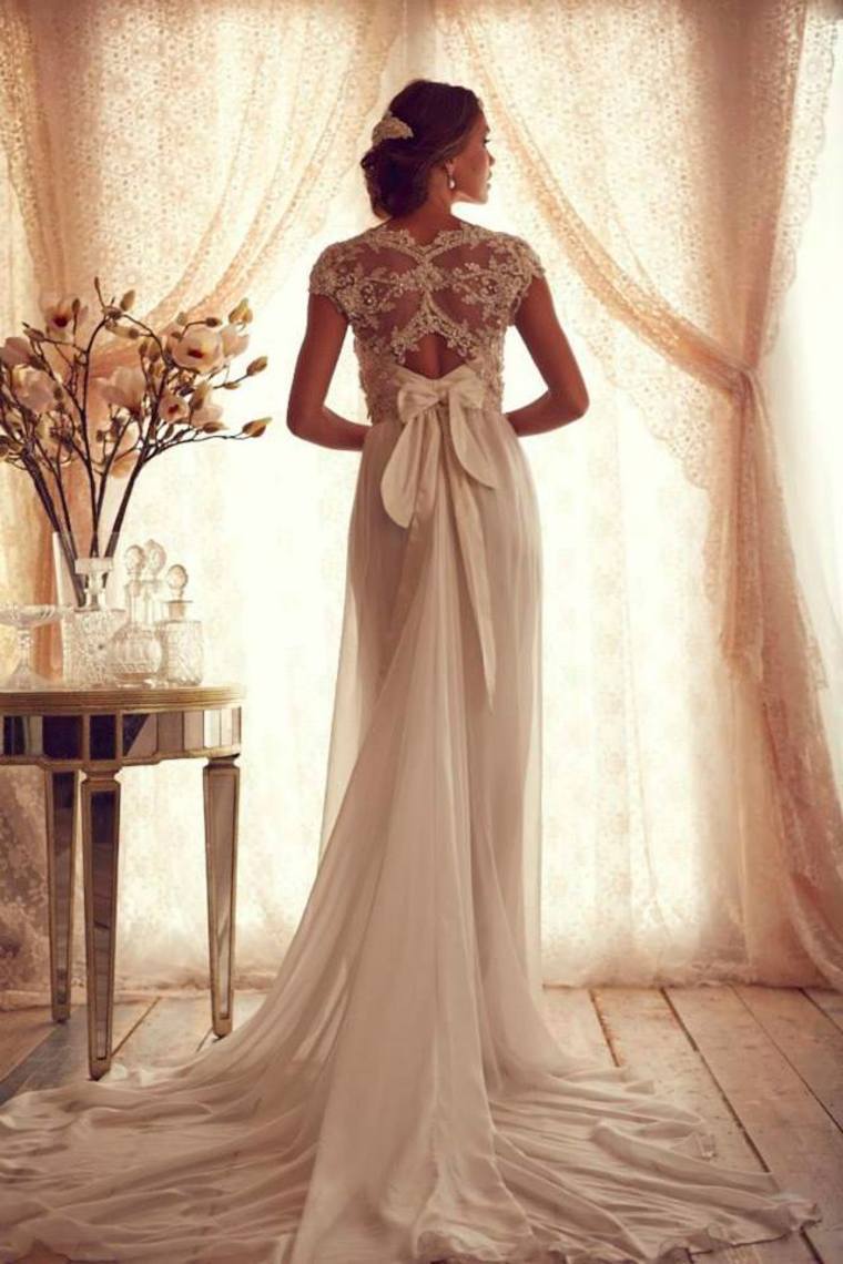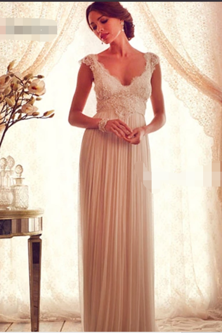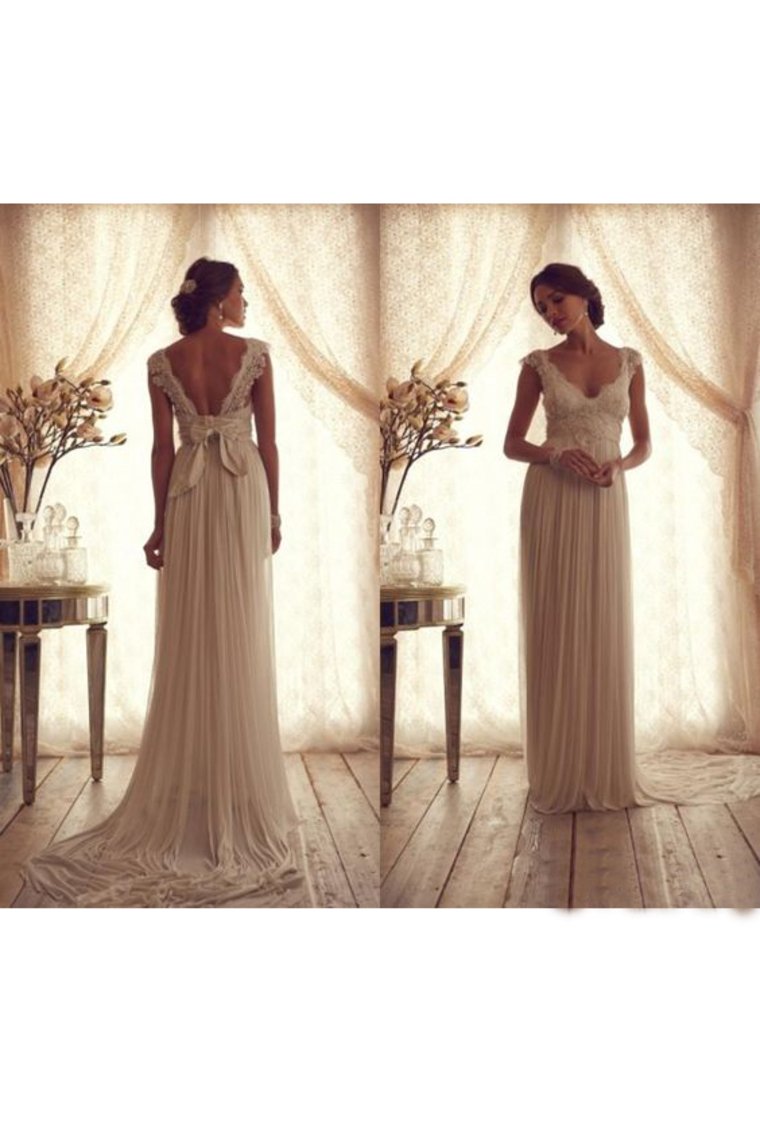 2024 V Neck Cap Sleeves Wedding Dresses Chiffon Floor Length With Applique Backless