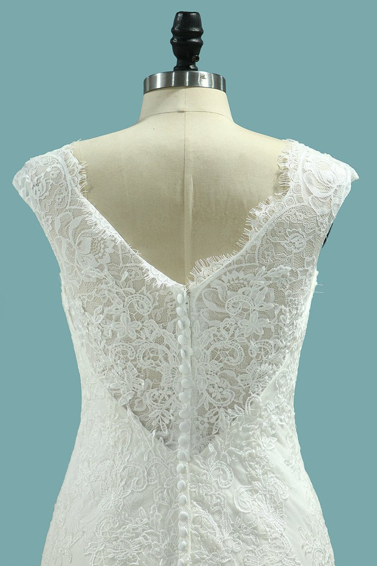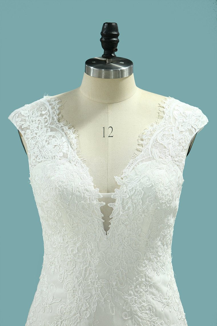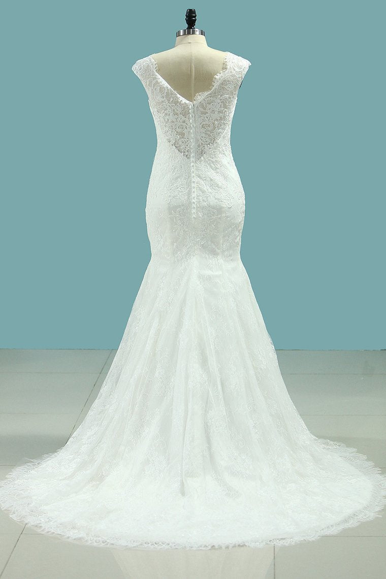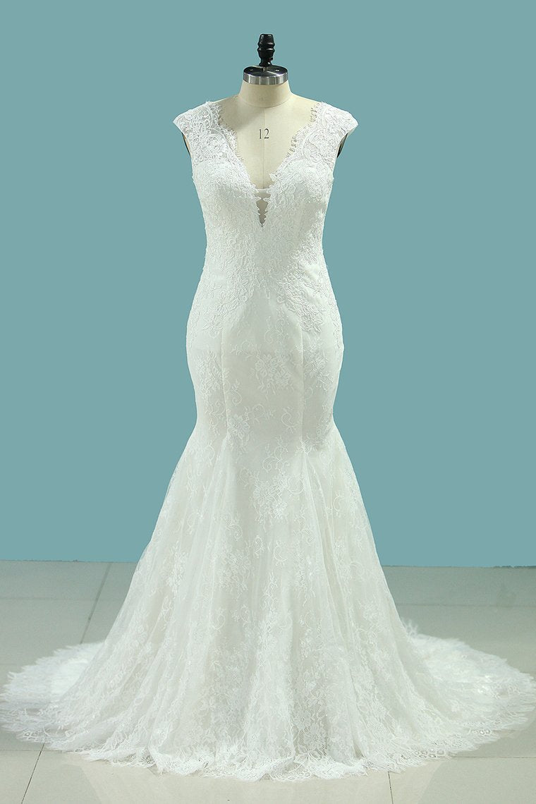 2024 V Neck Mermaid Wedding Dresses Lace With Applique Court Train