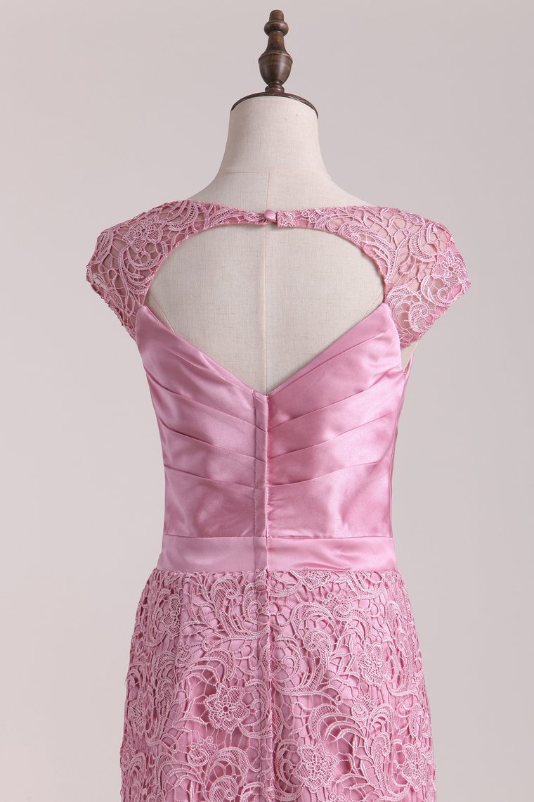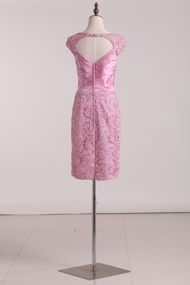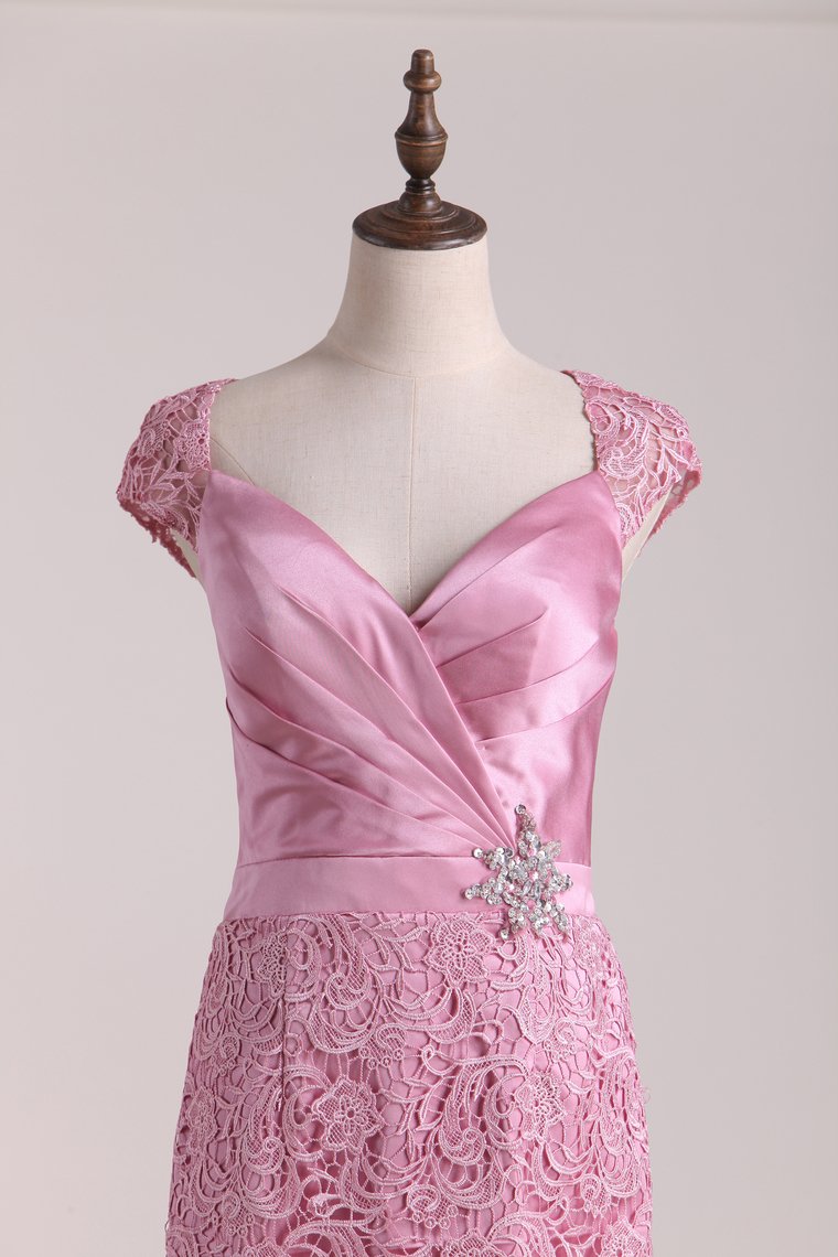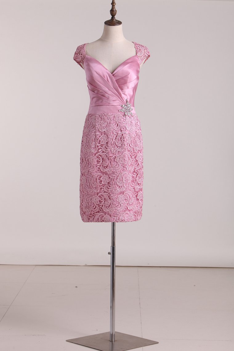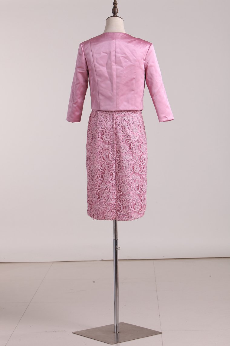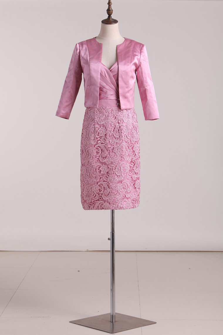 2024 V Neck Open Back Sheath Mother Of The Bride Dresses With Jacket Satin & Lace