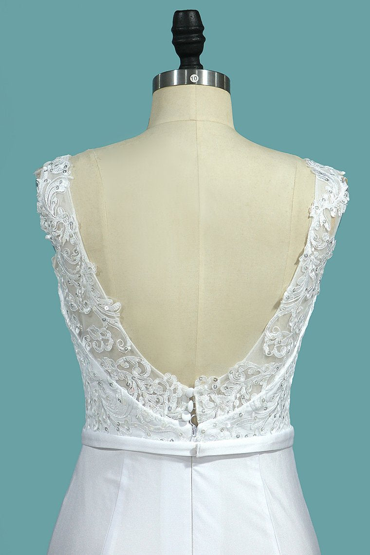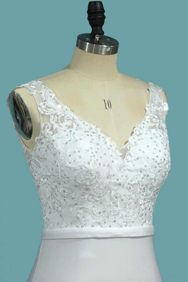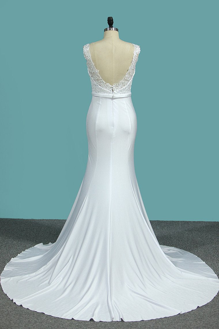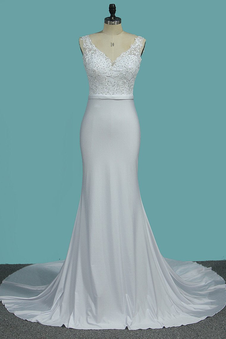 2024 V Neck Open Back Spandex Wedding Dresses With Applique Mermaid