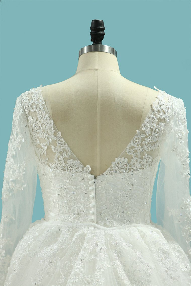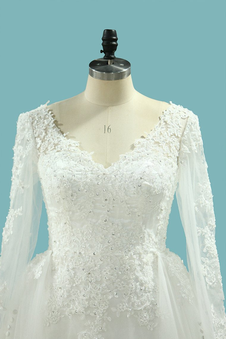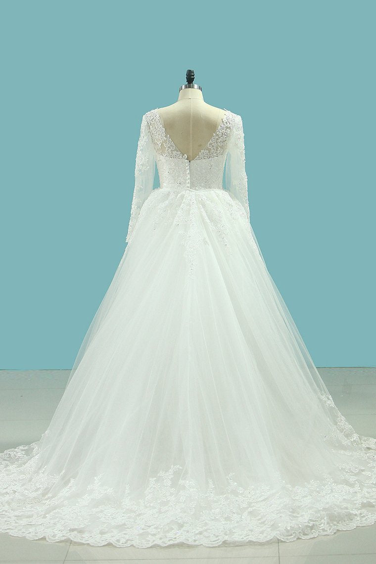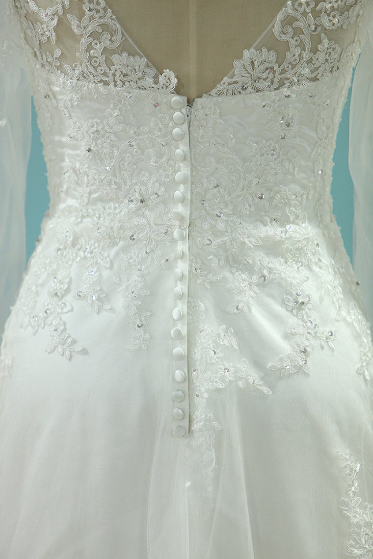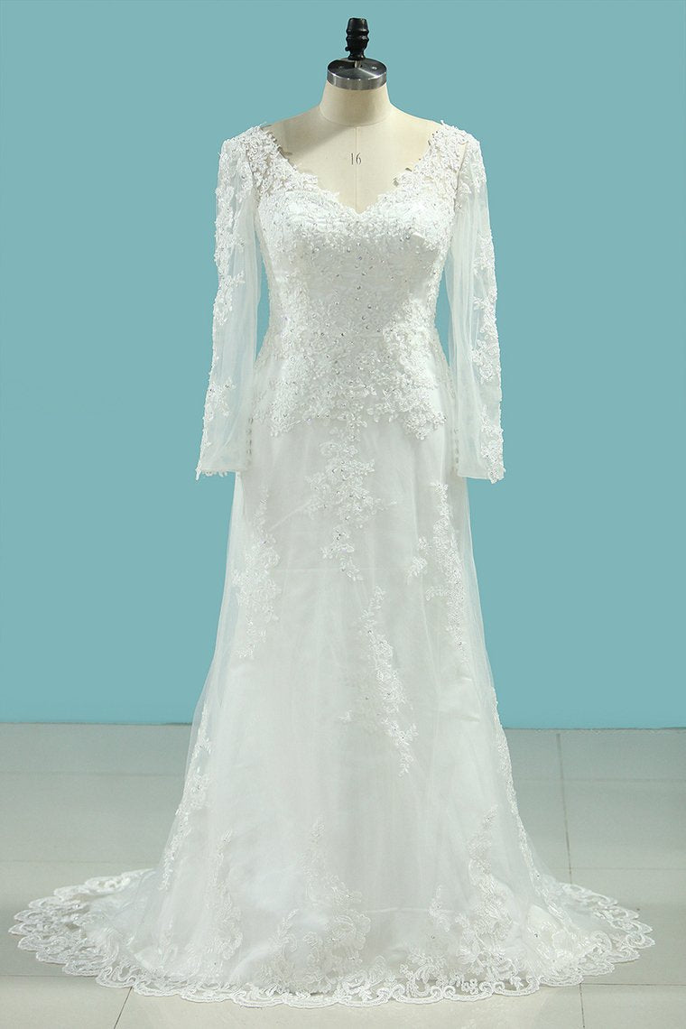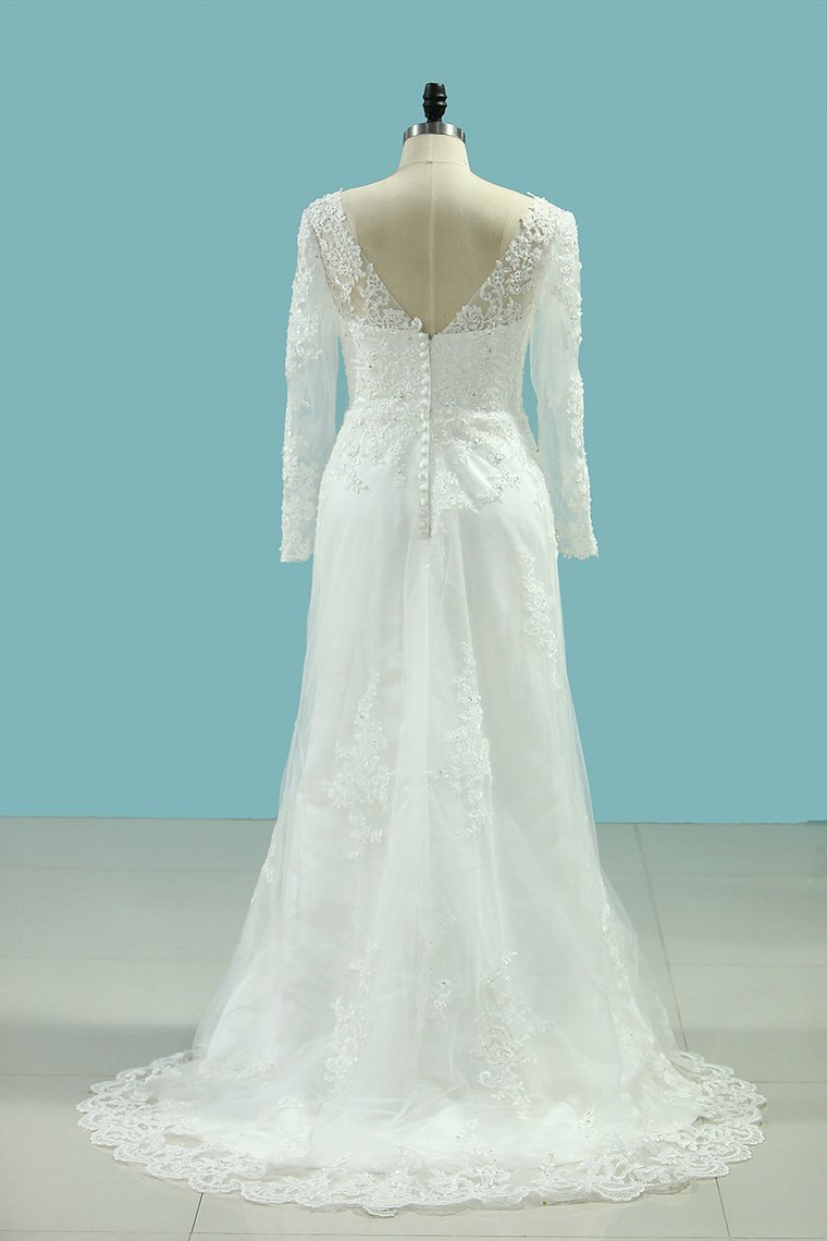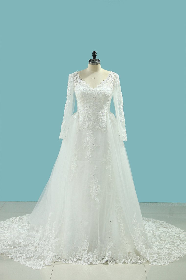 2024 V Neck Sheath Wedding Dresses With Applique Long Sleeves Detachable Train