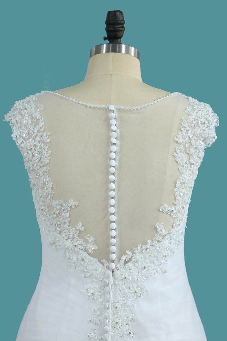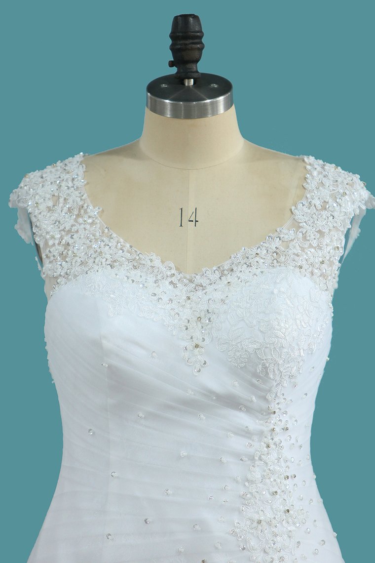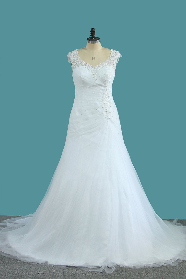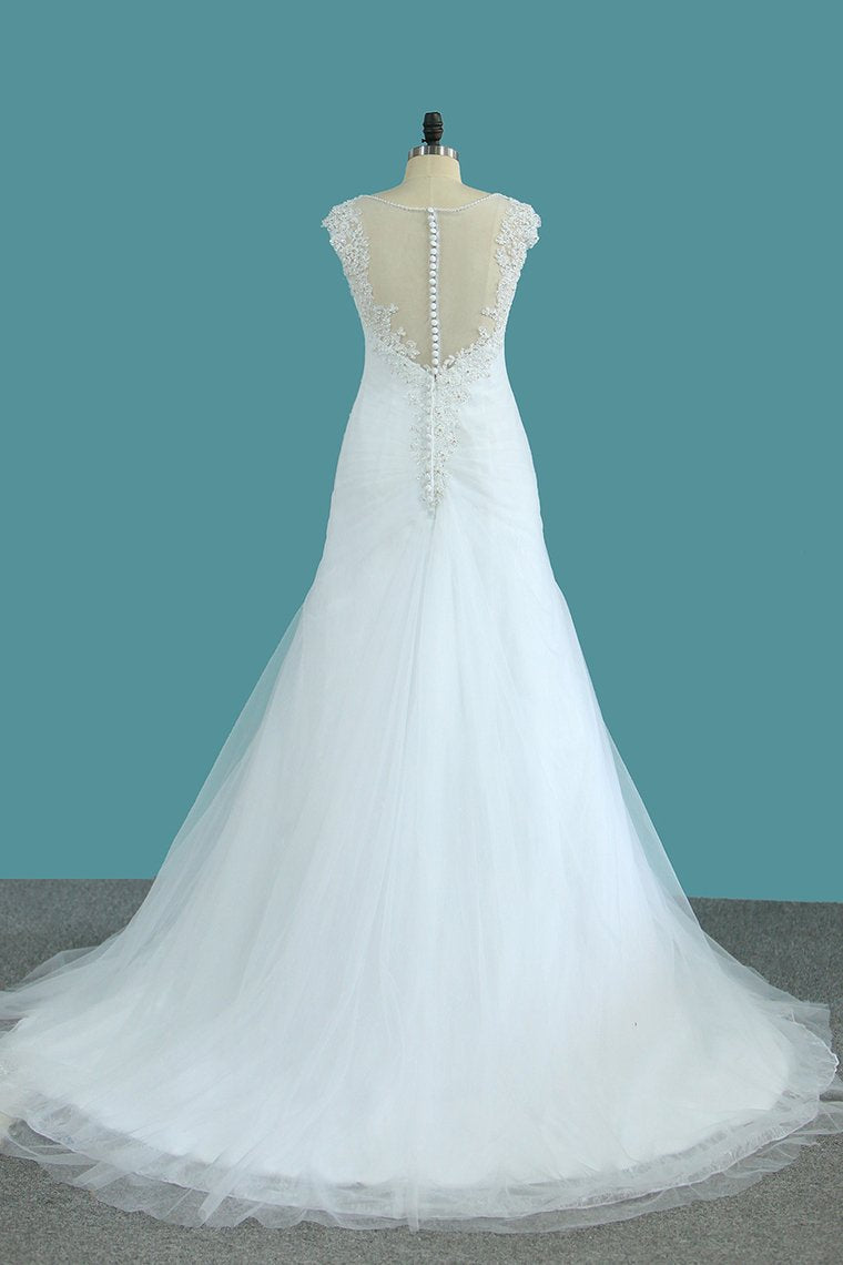2024 V Neck Tulle A Line Wedding Dresses With Applique And Beads