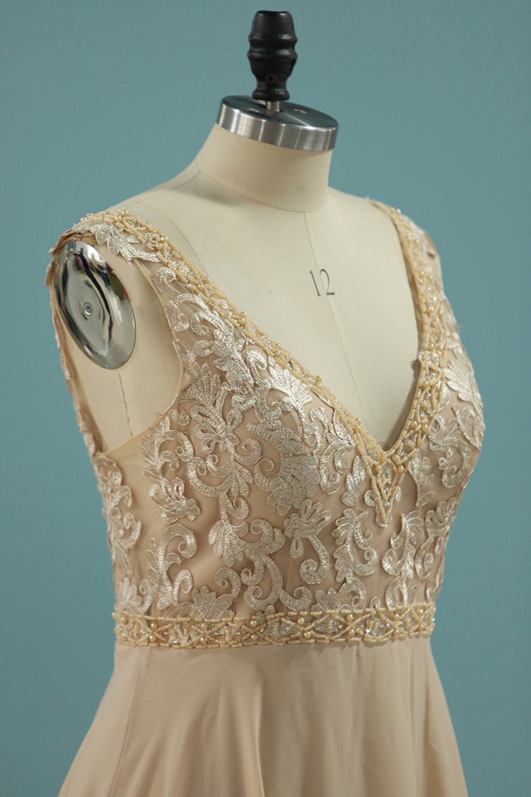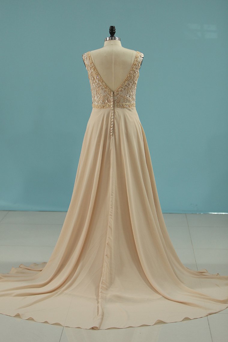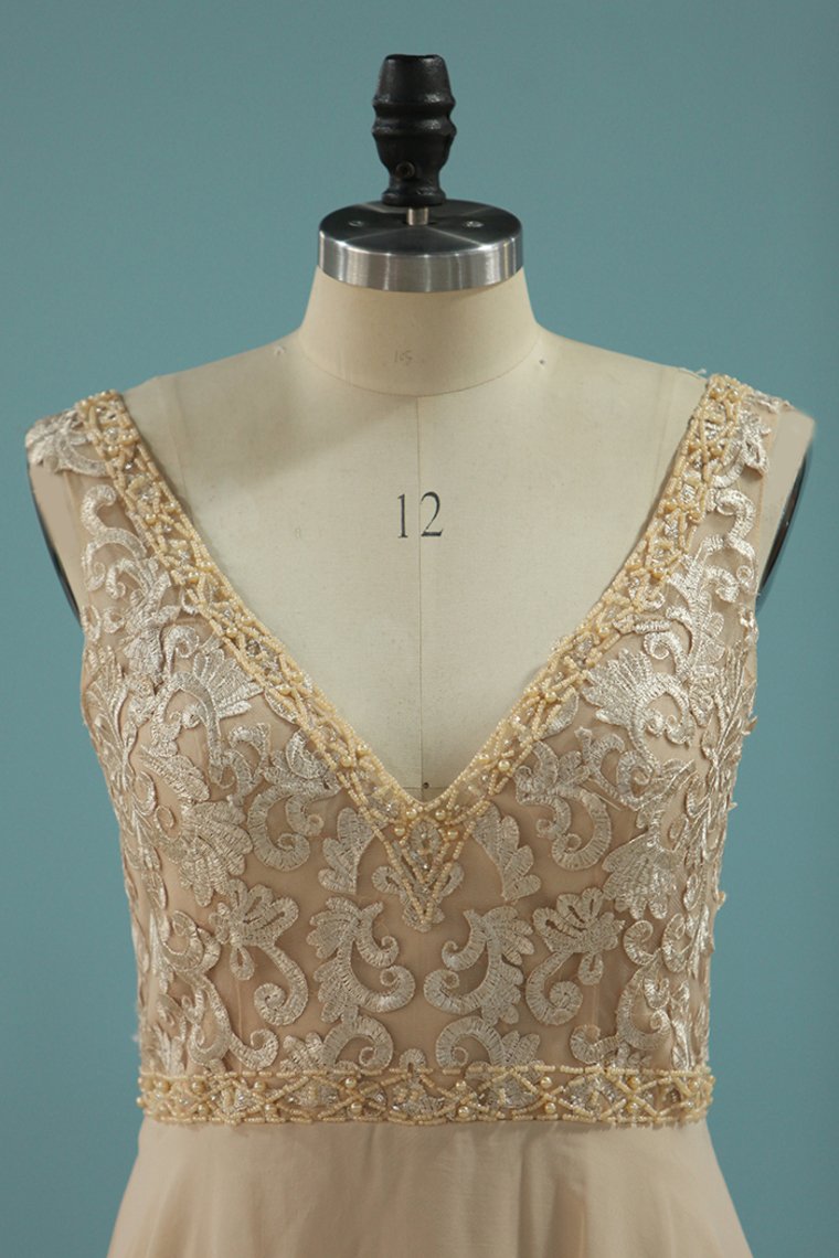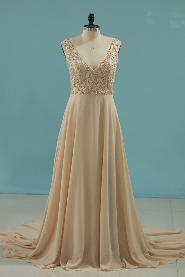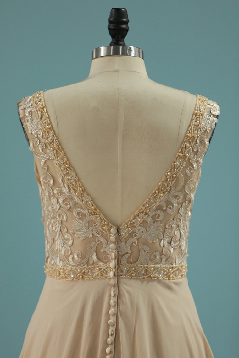 2024 V Neck Wedding Dresses A Line Chiffon With Beads And Embroidery