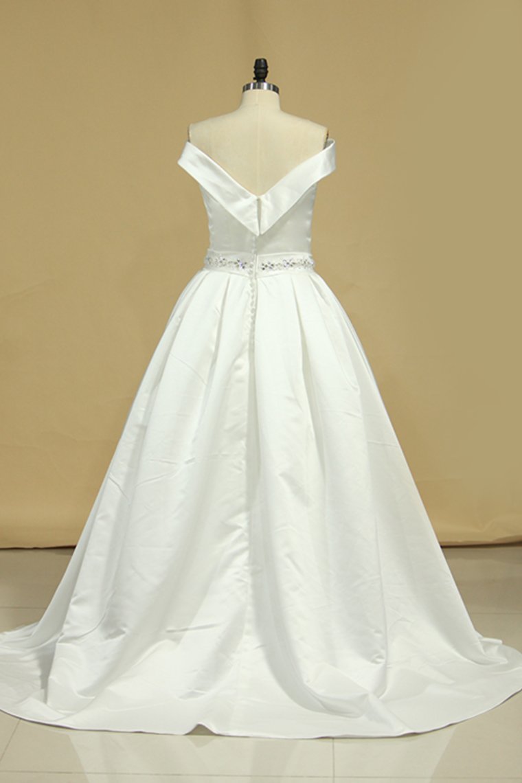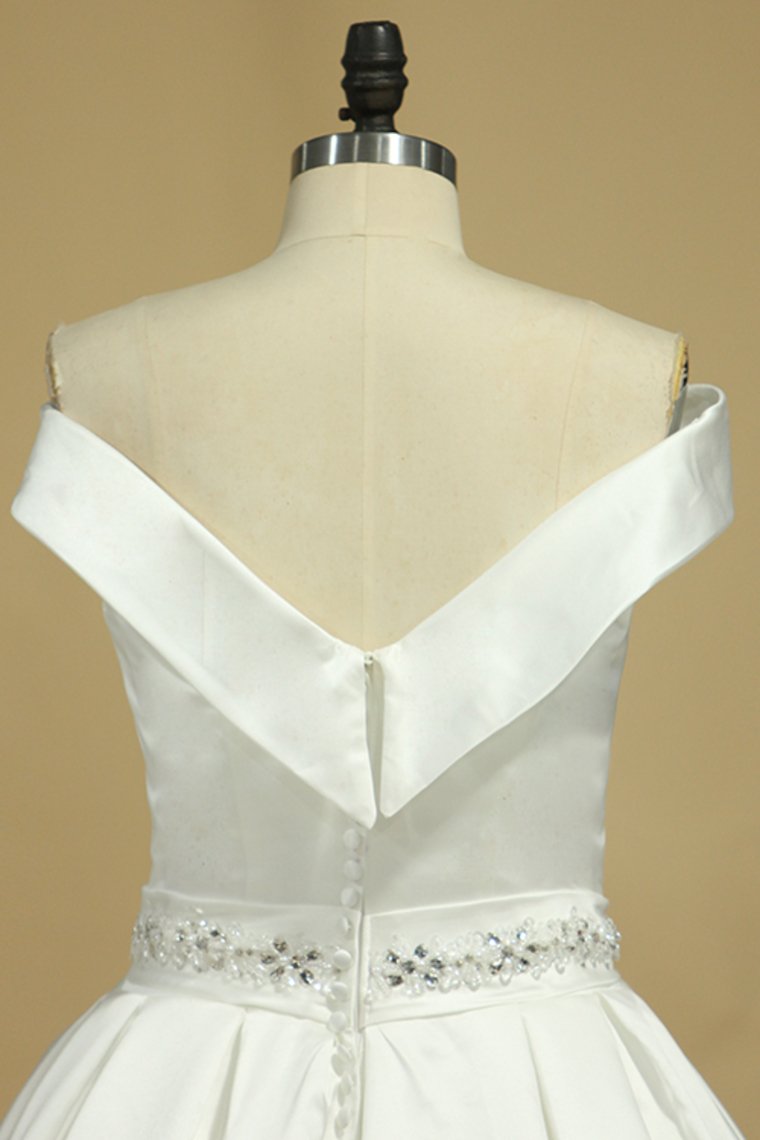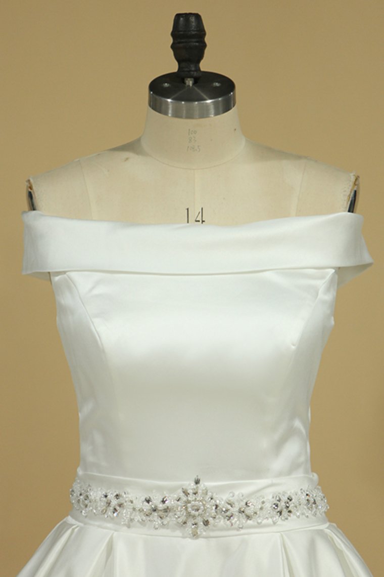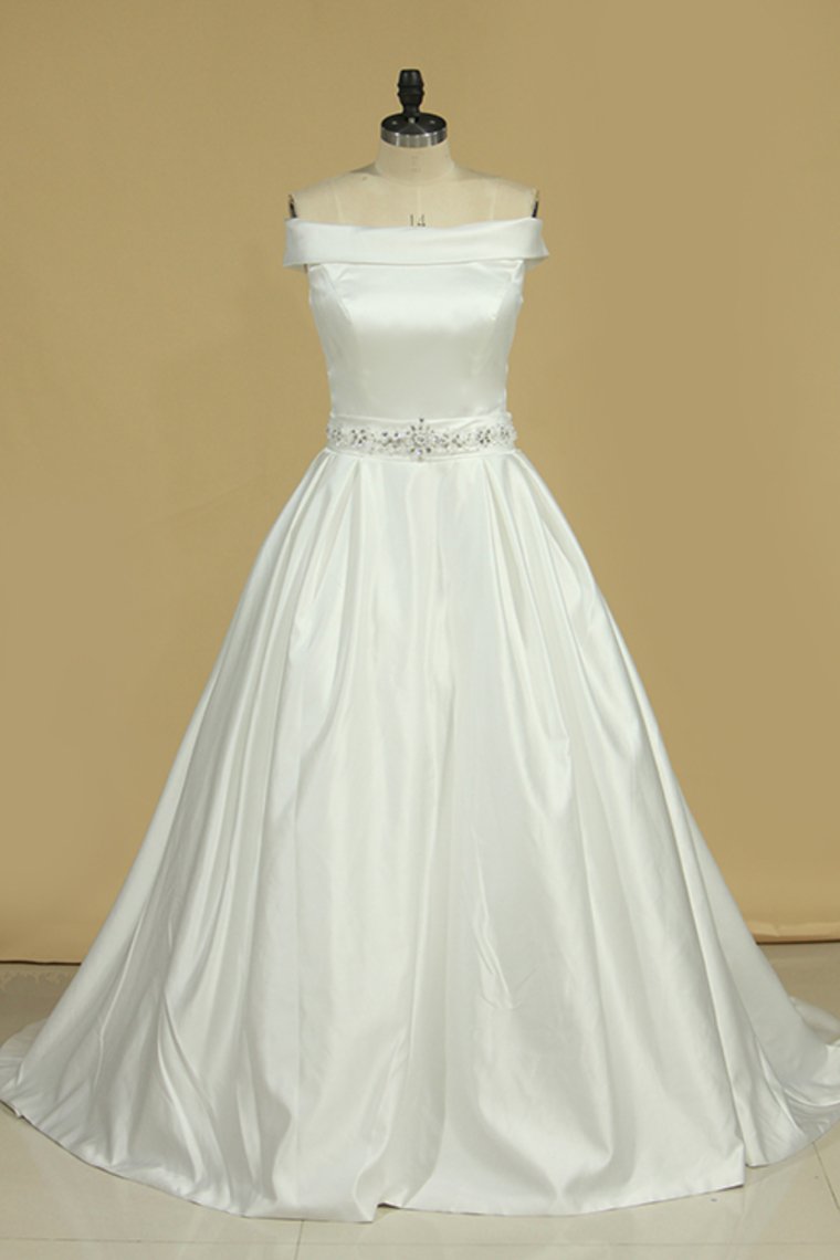 2024 Vintage Wedding Dresses Boat Neck A Line Satin With Ribbon
