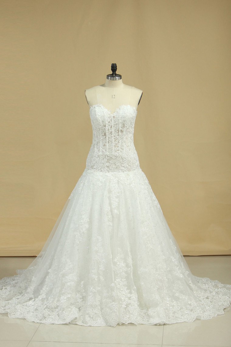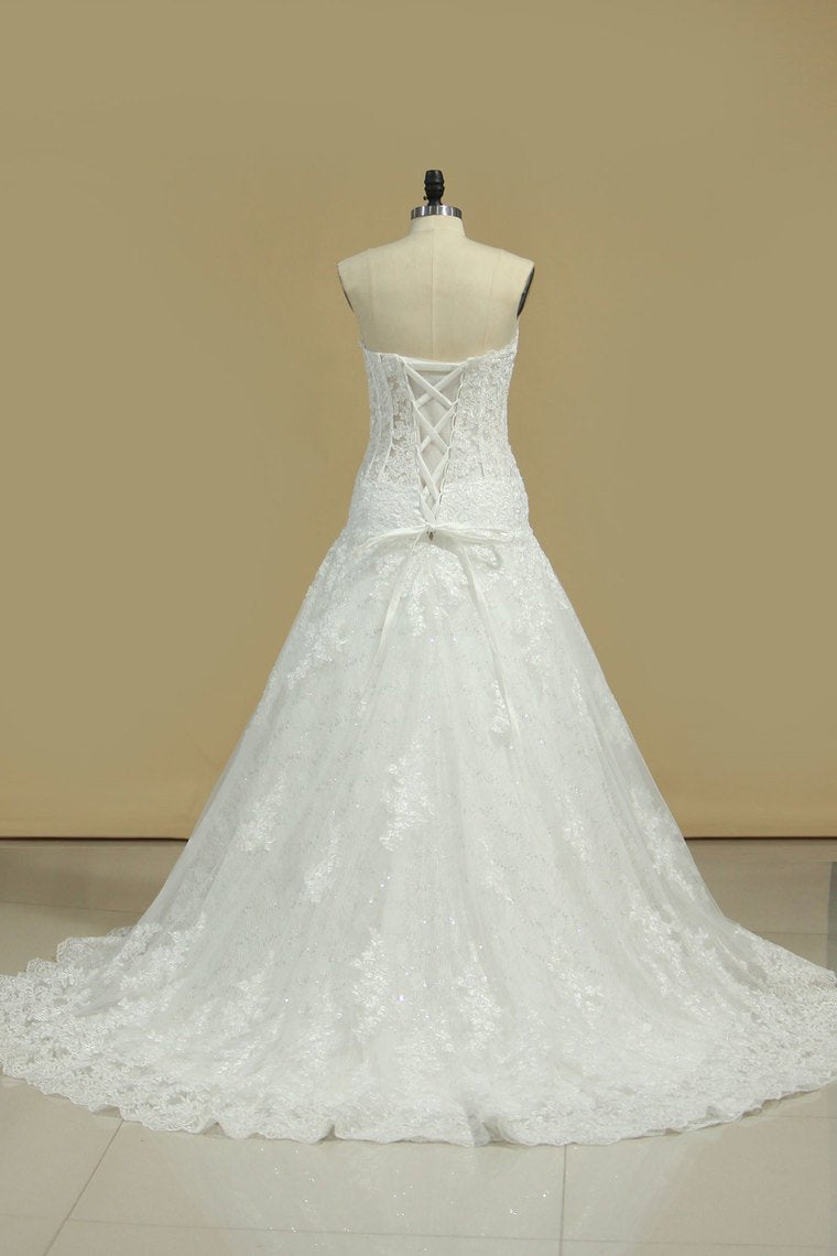 2024 Vintage Wedding Dresses Sweetheart A Line Tulle With Applique Court Train