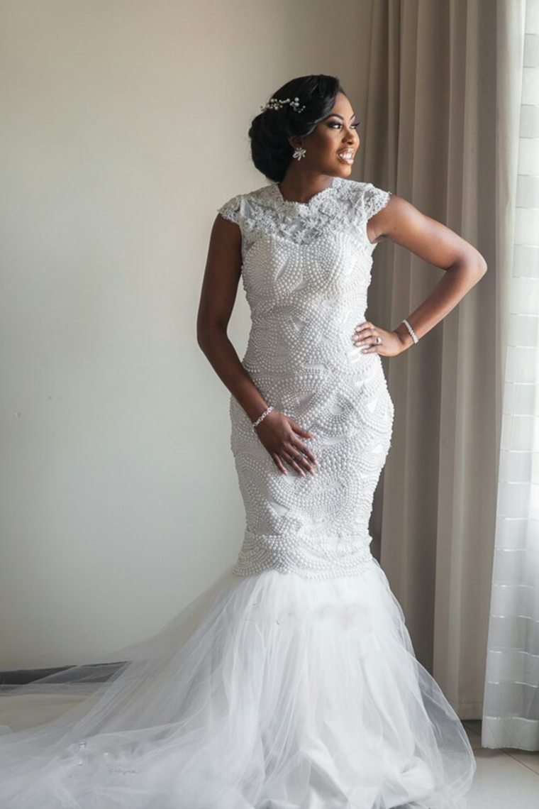 2024 Wedding Dress Scoop Mermaid/Trumpet Full Beaded Tulle Skirt Sweep Train