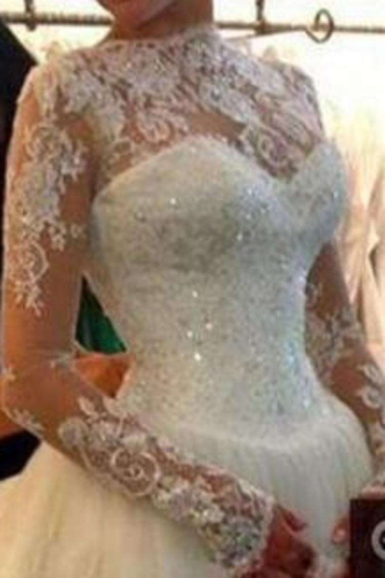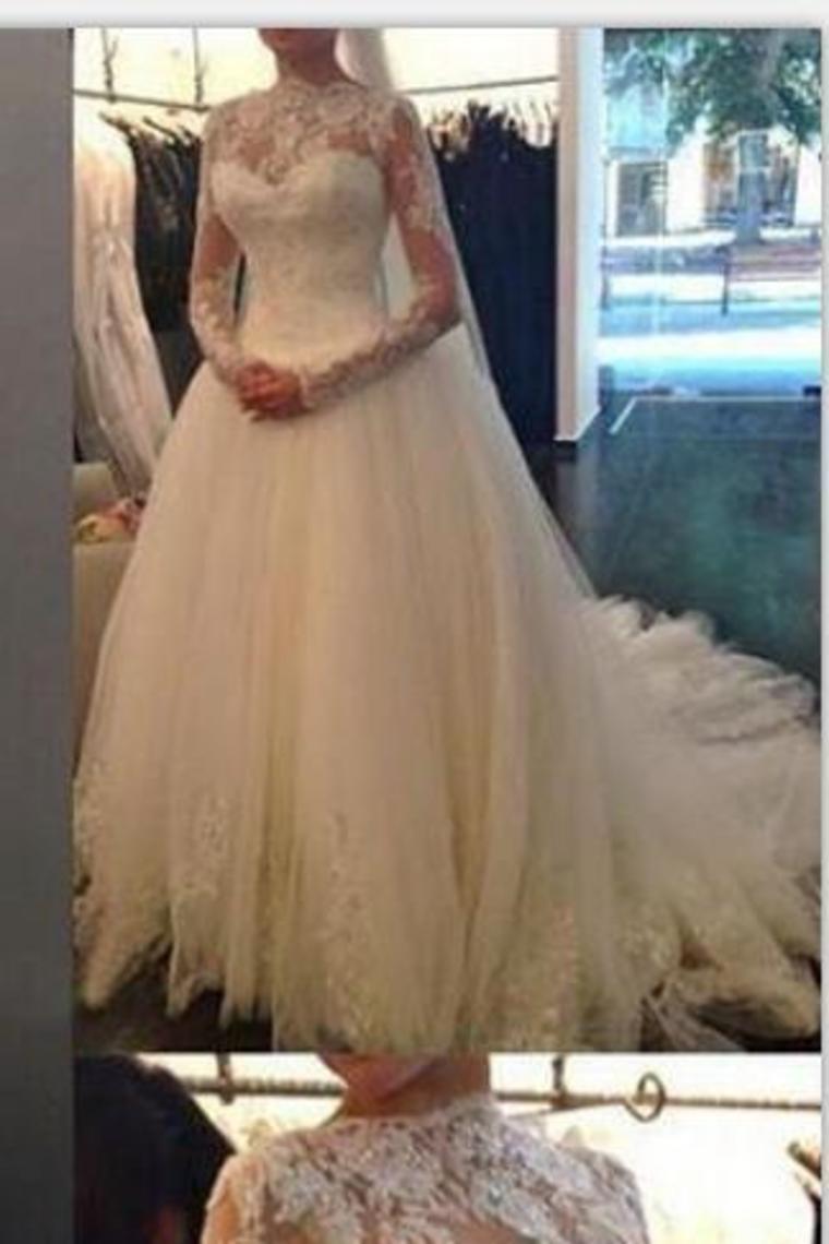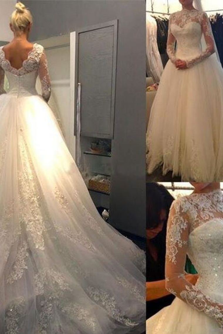 2024 Wedding Dresses A Line High Neck Long Sleeves Tulle With Applique Zipper Up