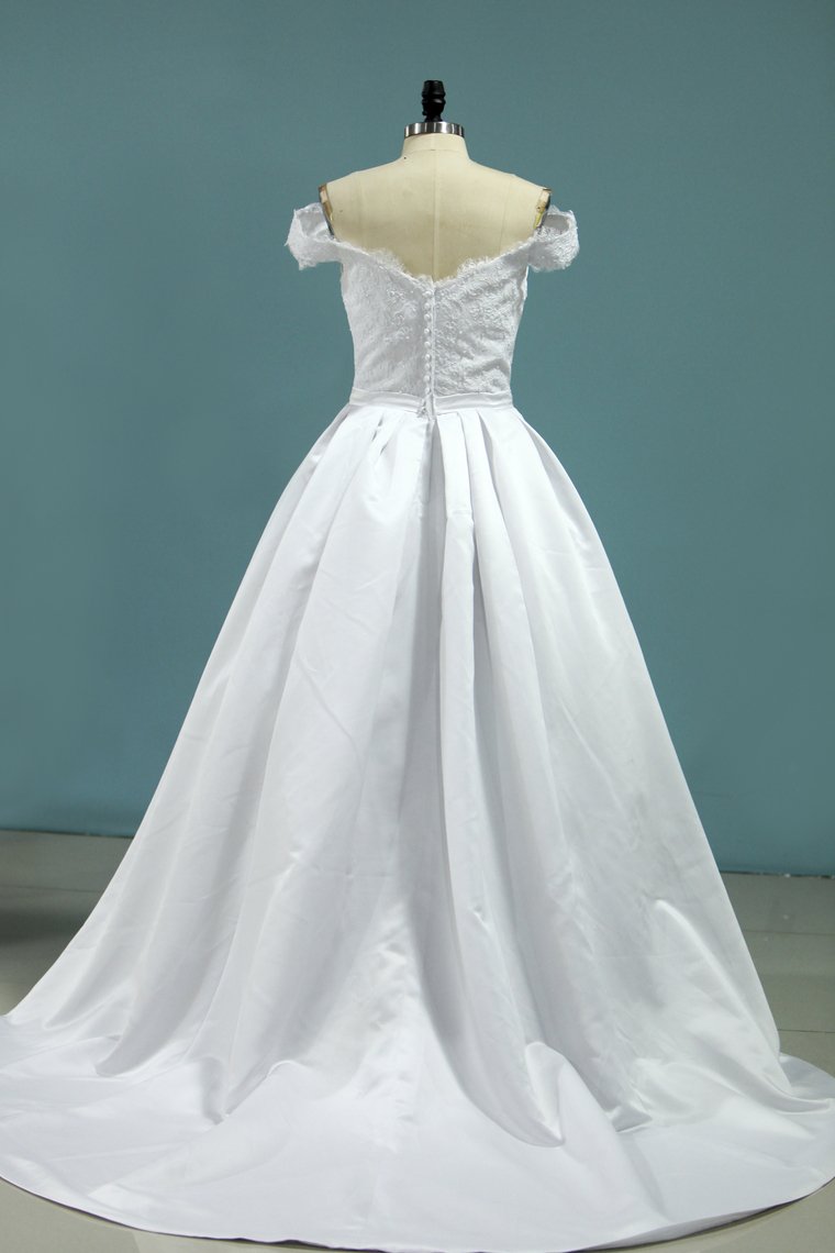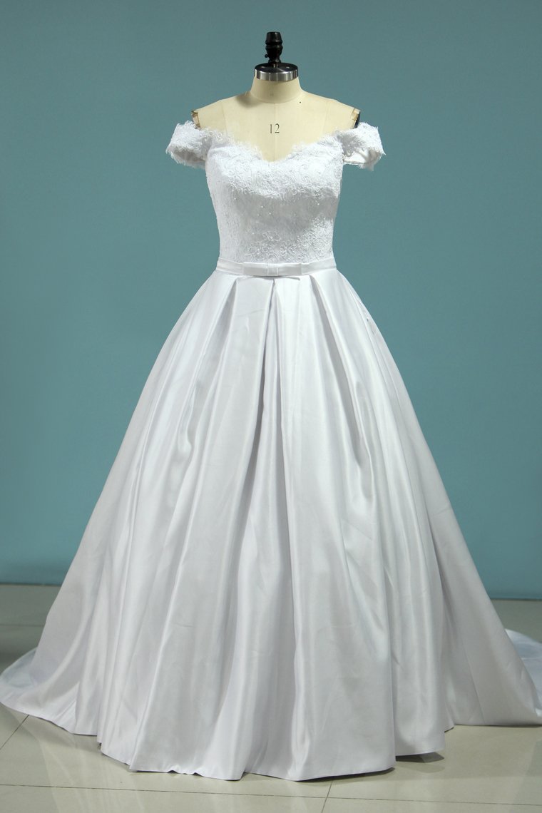 2024 Wedding Dresses A Line Off The Shoulder With Applique Satin