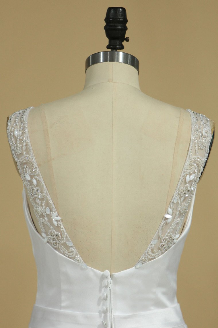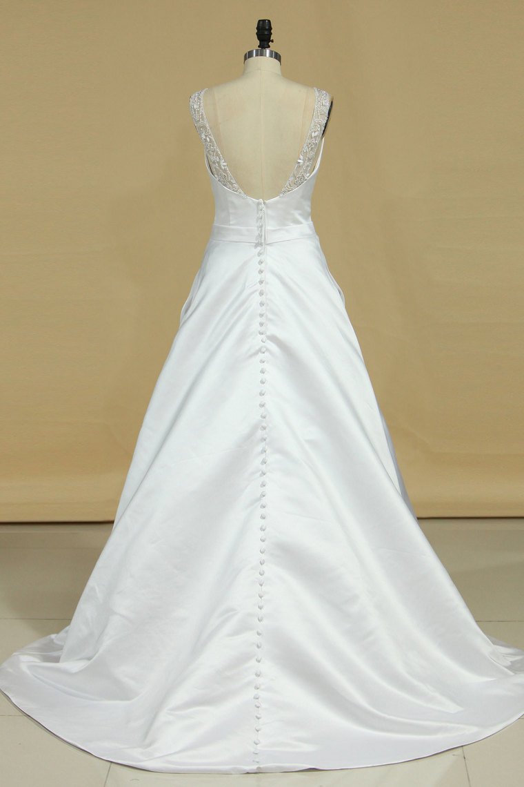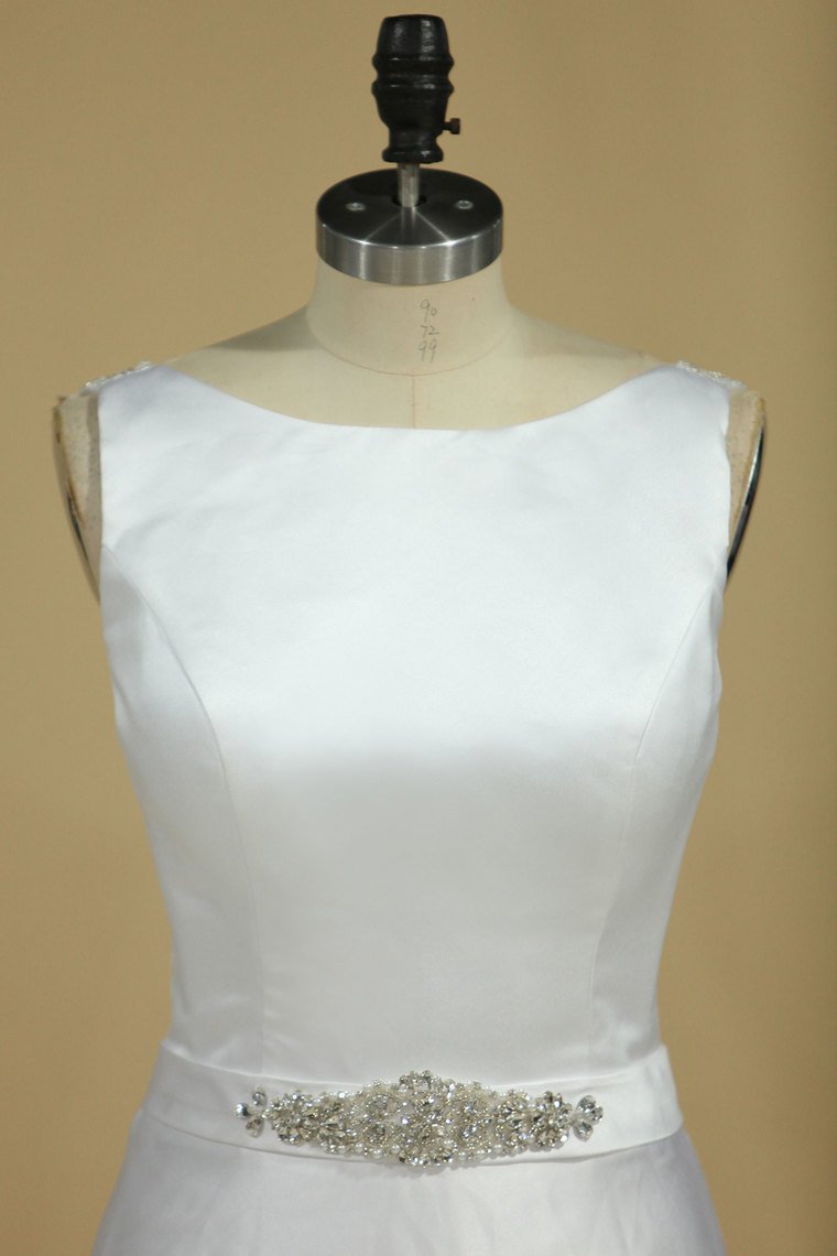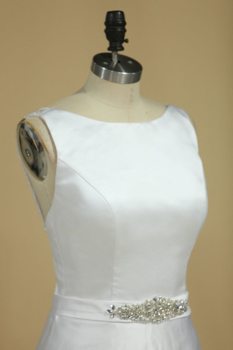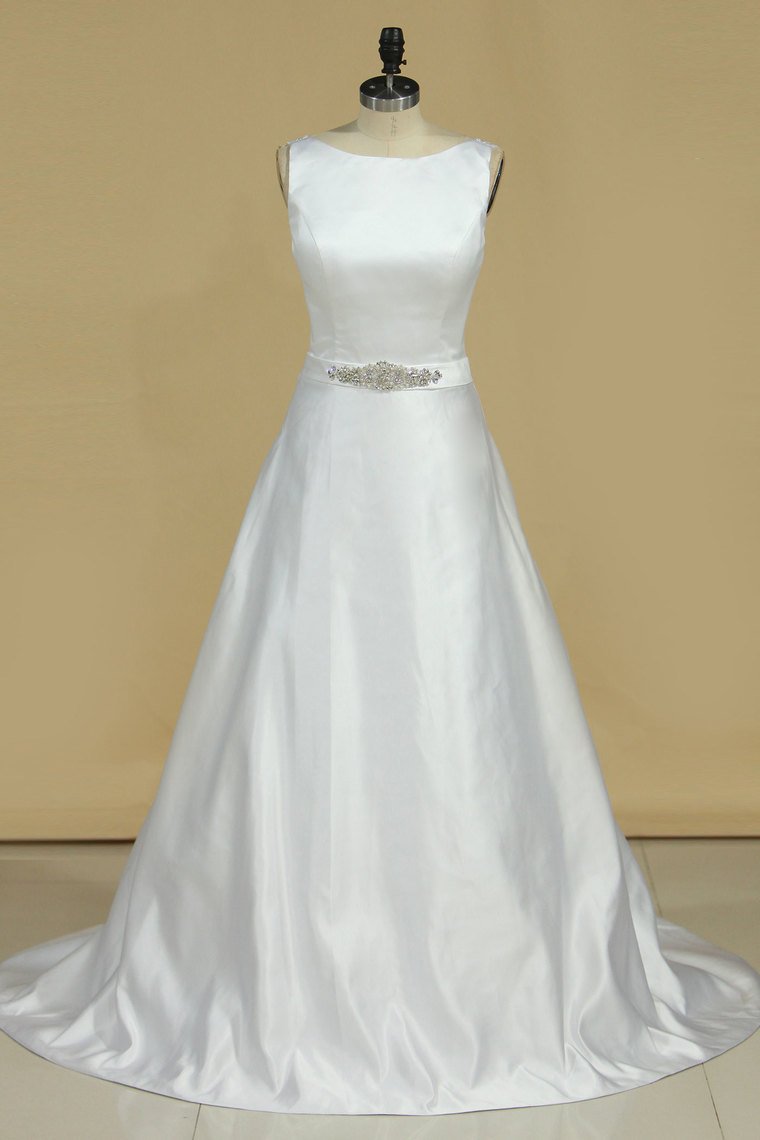 2024 Wedding Dresses A Line Scoop Satin With Beads And Sash