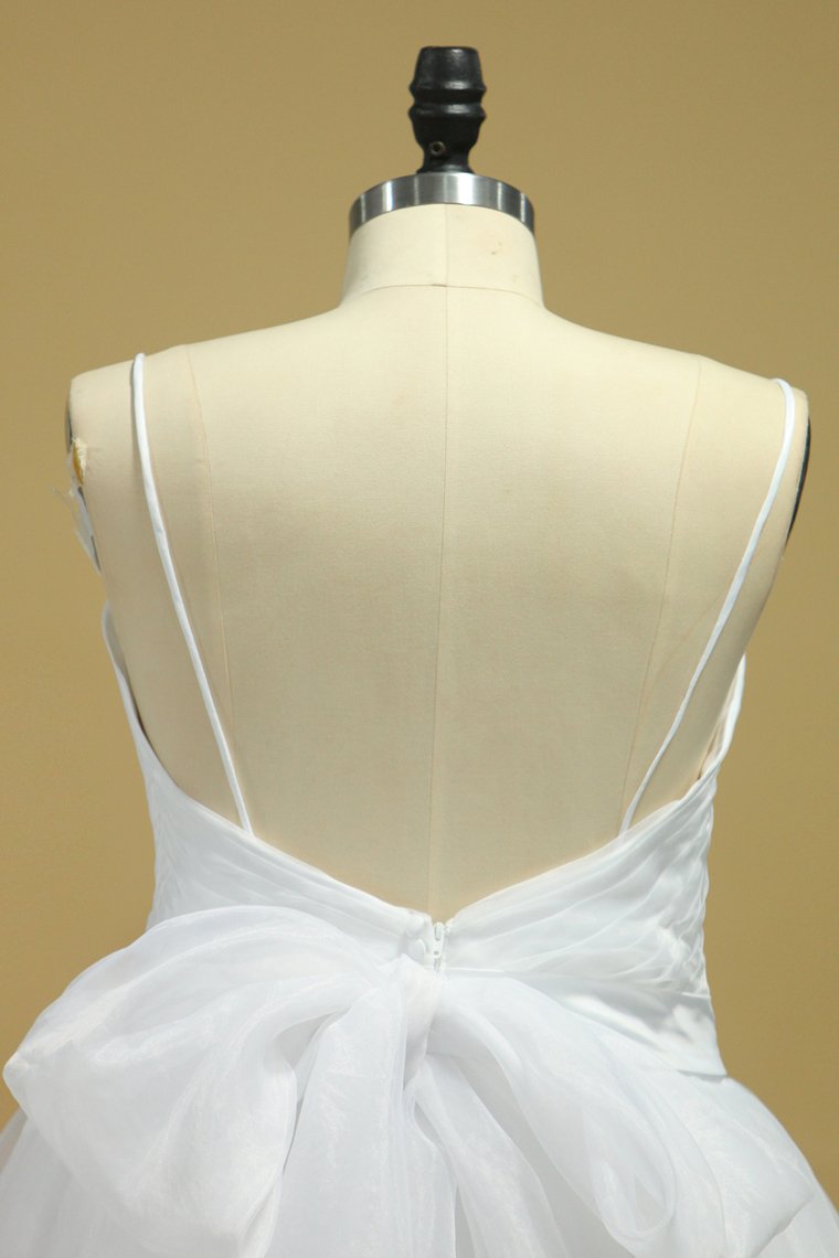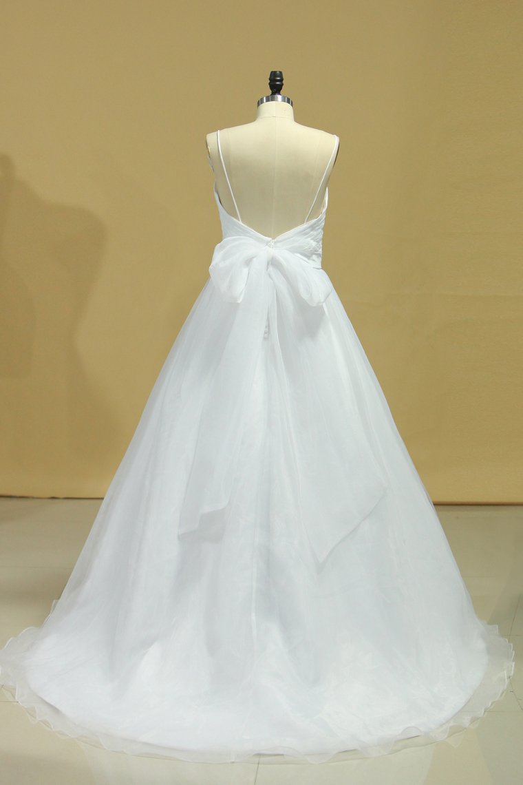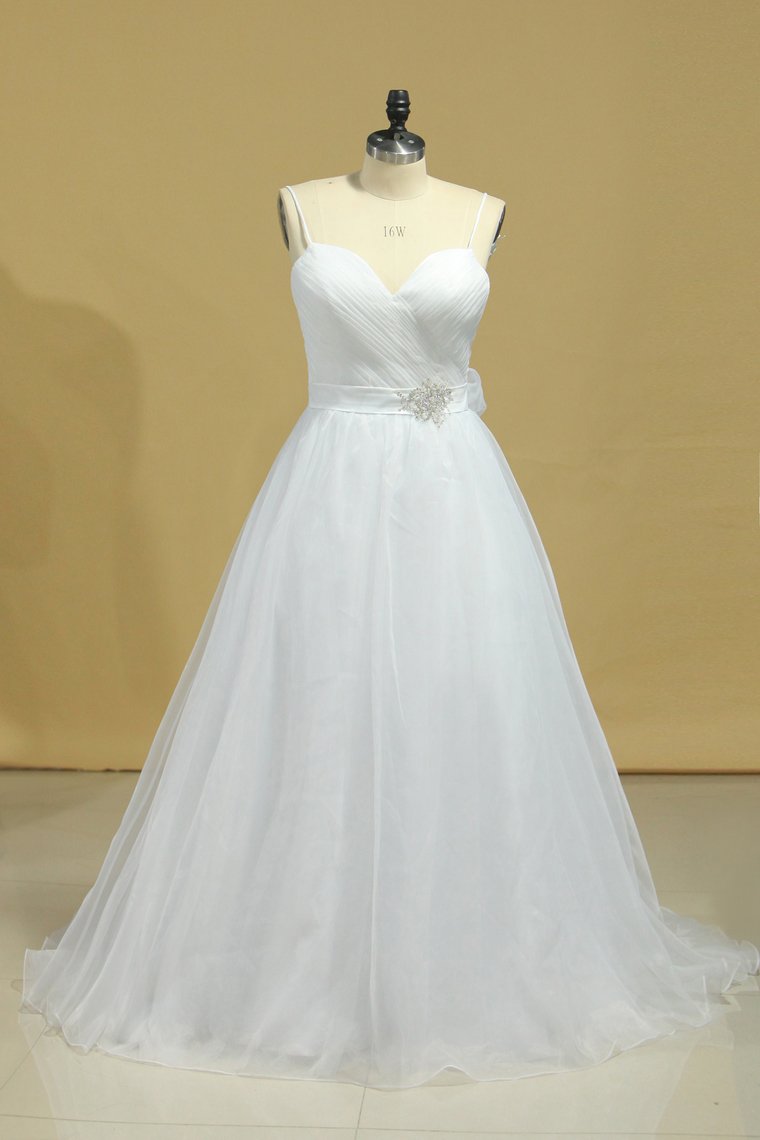 2024 Wedding Dresses A-Line Spaghetti Straps Court Train Organza With Removable Sash Zipper Back Plus Size