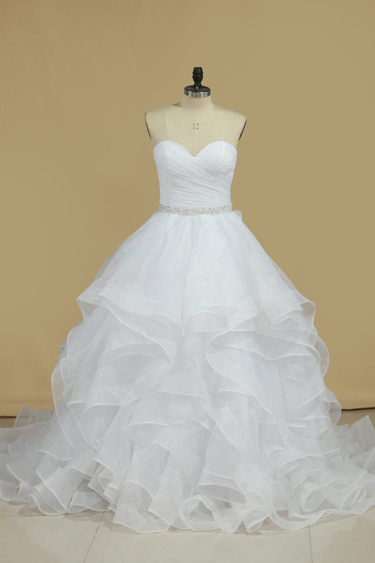 2024 Wedding Dresses A Line Sweetheart Ruffled Bodice With Beads Organza