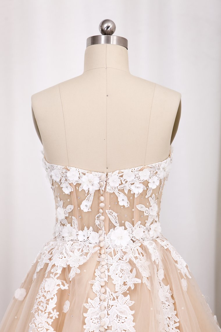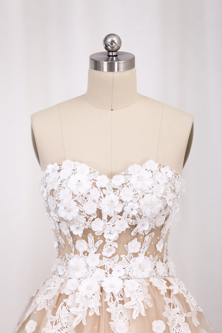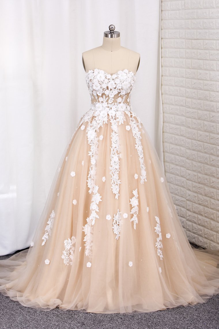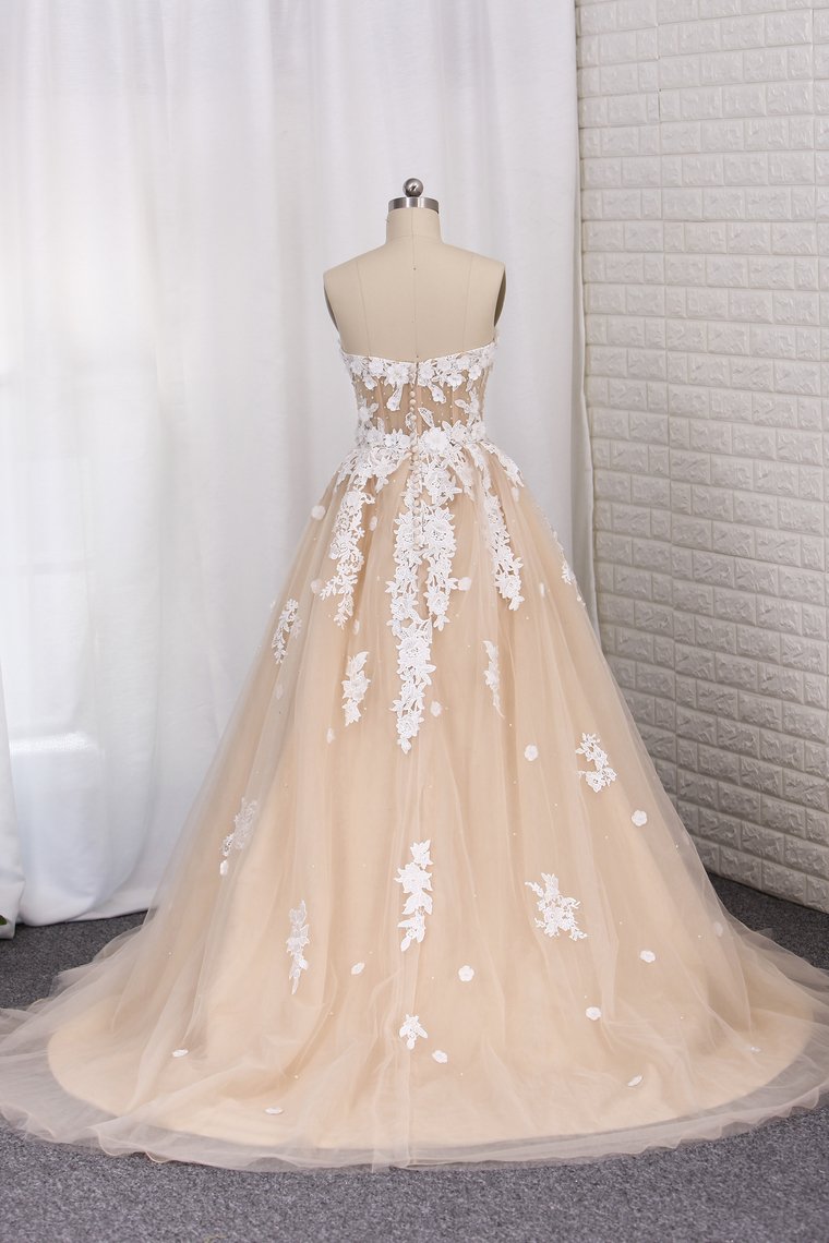 2024 Wedding Dresses A Line Tulle Sweetheart With Applique Court Train
