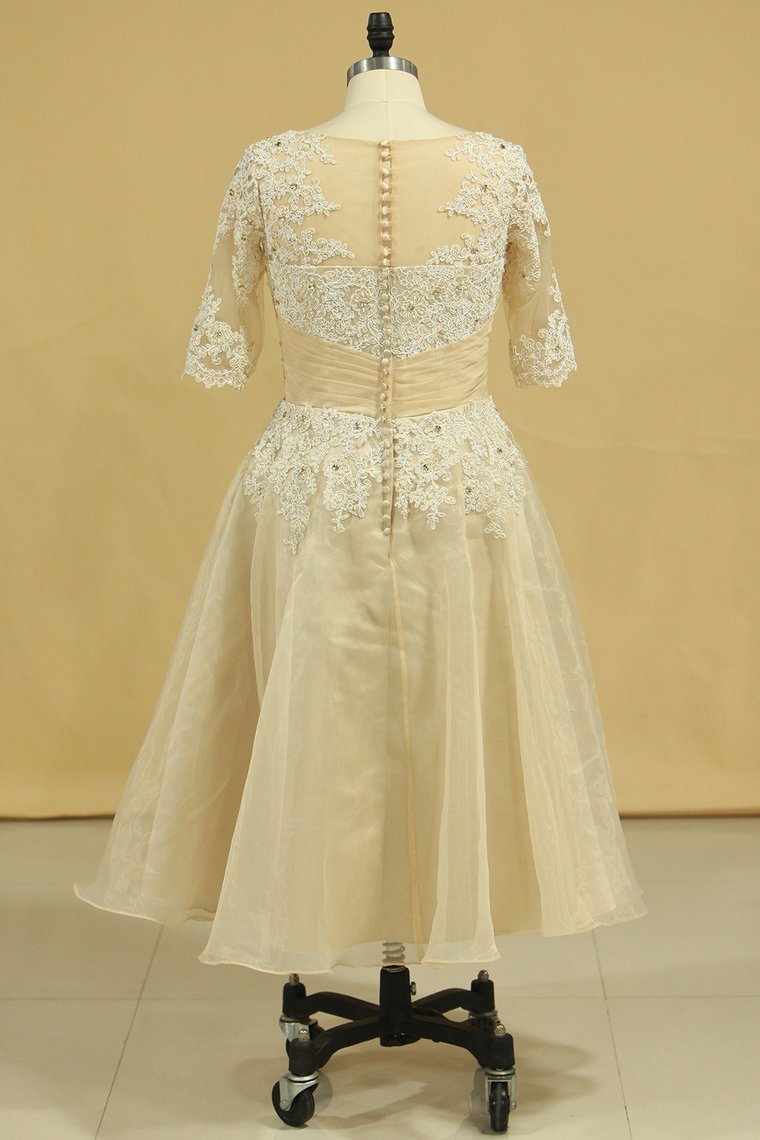 2024 Wedding Dresses A Line V Neck Half Sleeves Plus Size With Applique & Beads Organza
