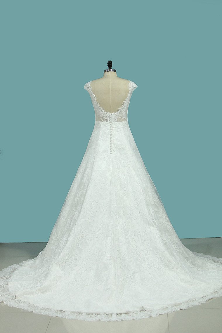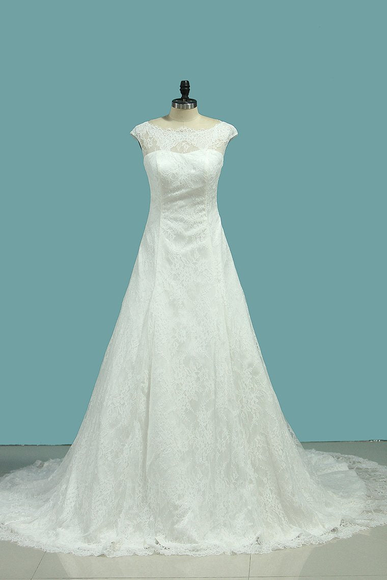 2024 Wedding Dresses Bateau Open Back A Line Tulle With Applique