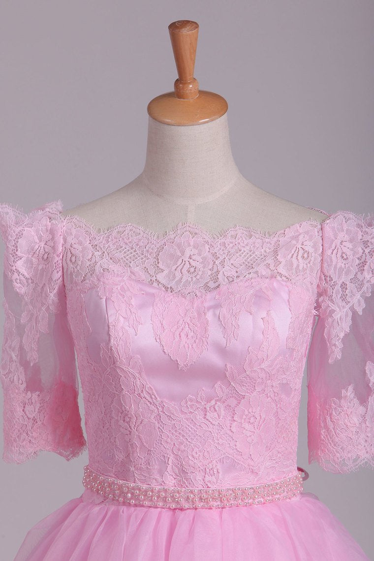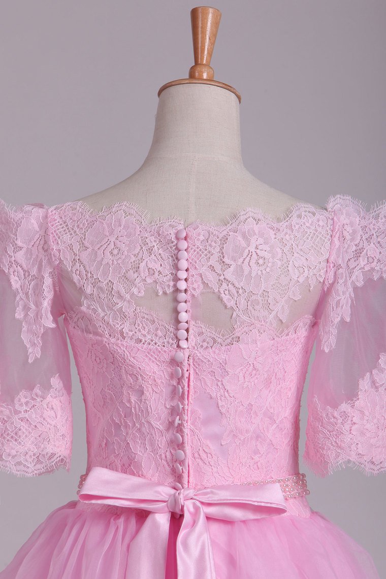 2024 Wedding Dresses Boat Neck Half Sleeves Floor Length Organza & Lace With Applique