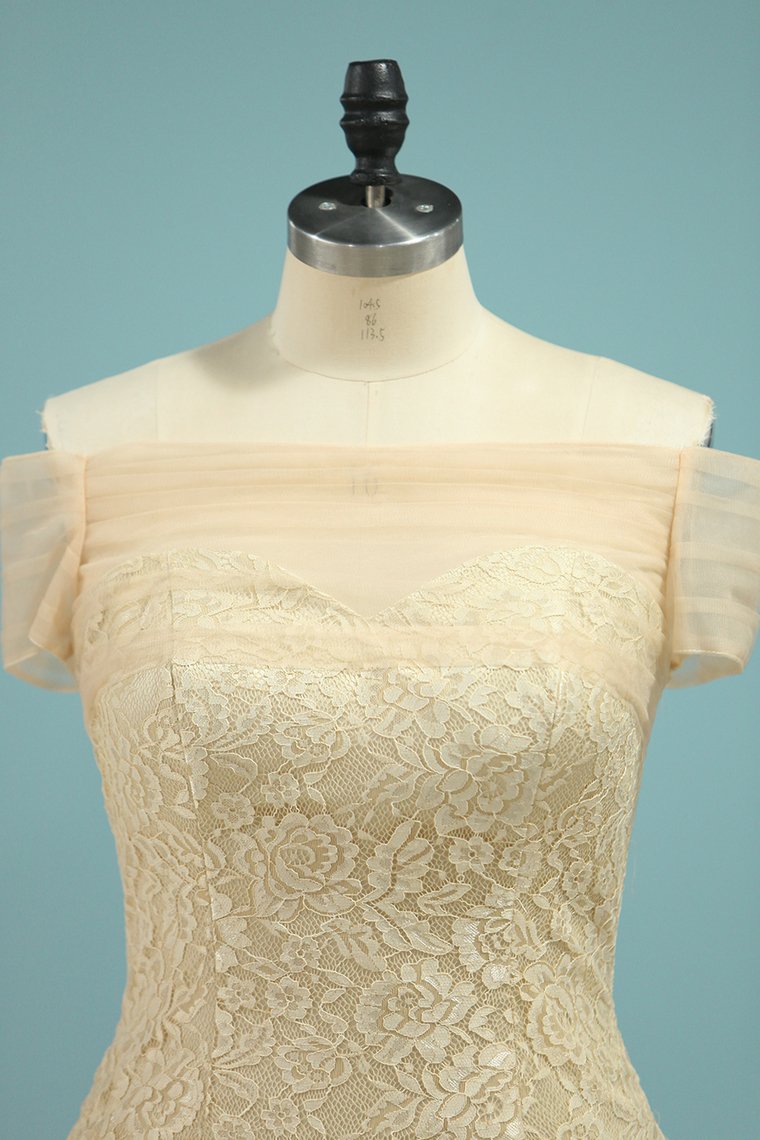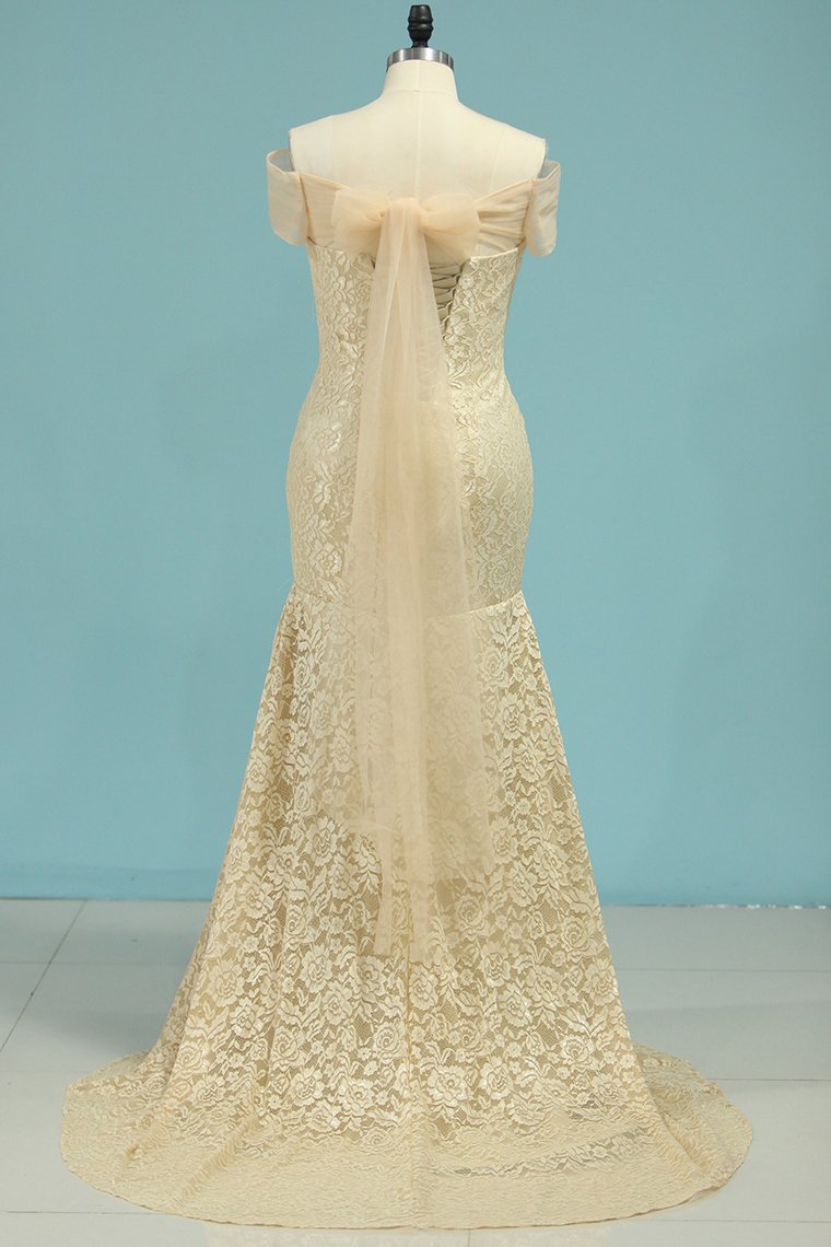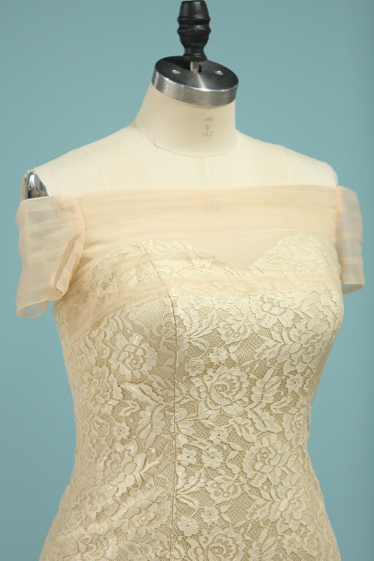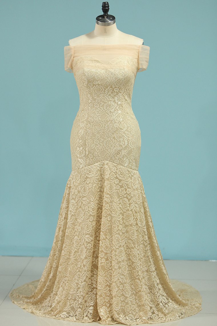 2024 Wedding Dresses Mermaid Boat Neck Short Sleeves Lace Sweep Train