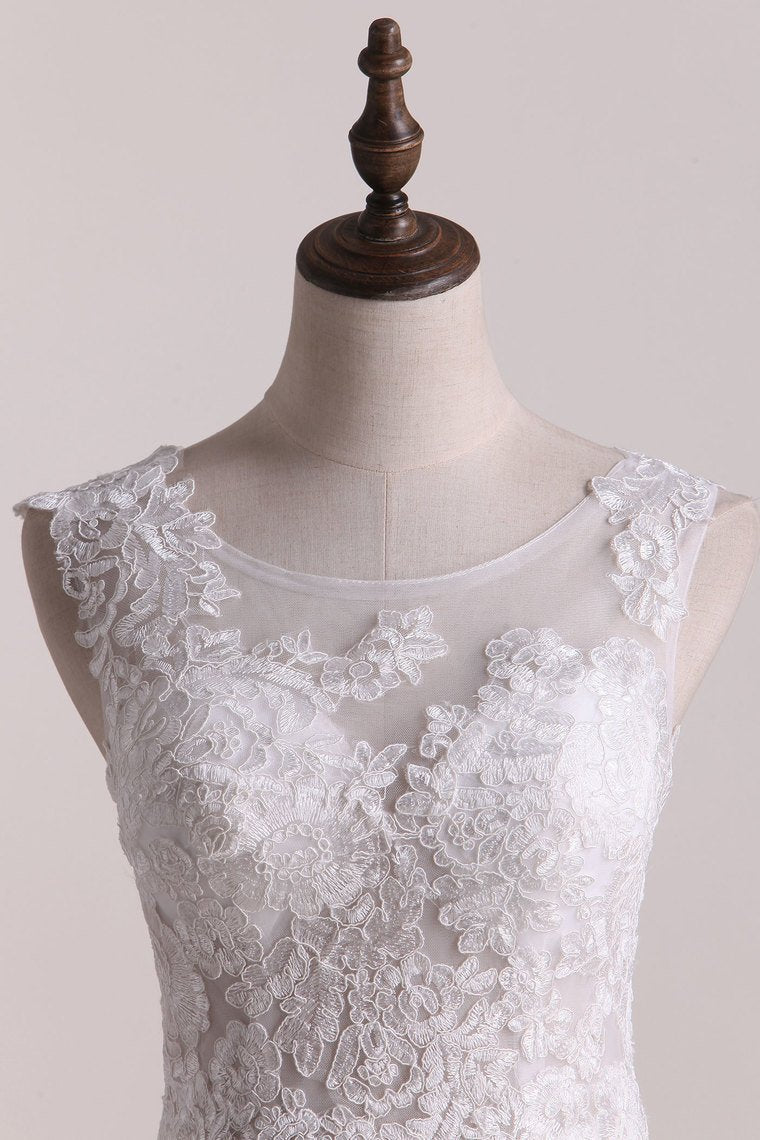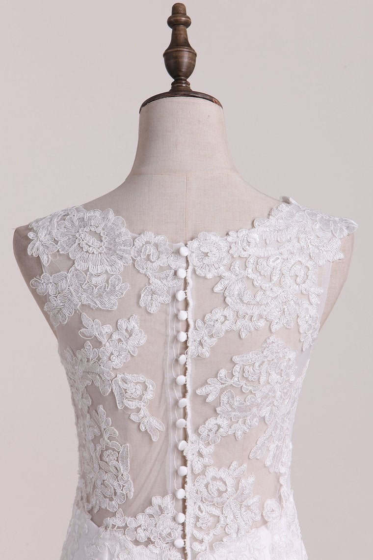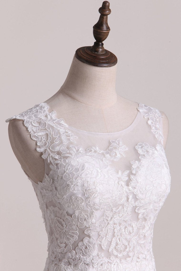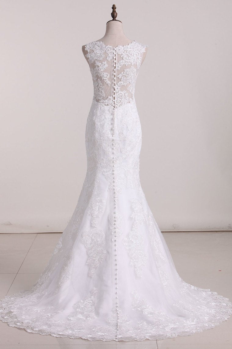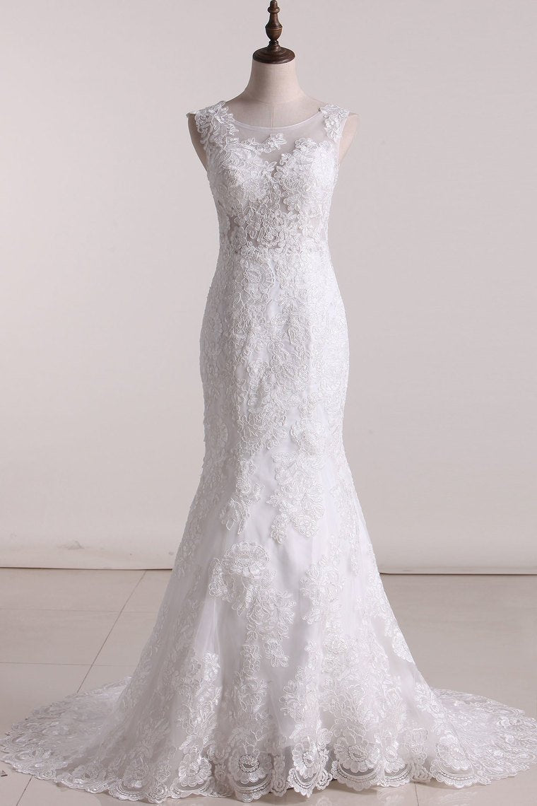 2024 Wedding Dresses Mermaid Scoop Tulle With Applique Court Train