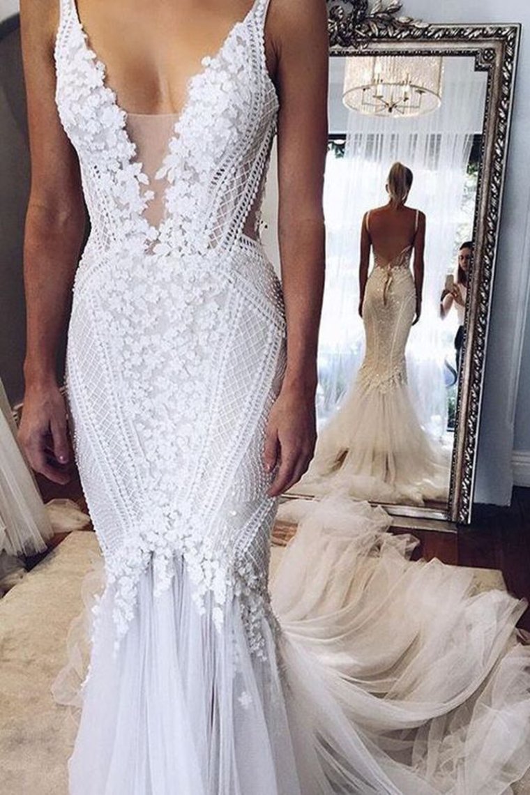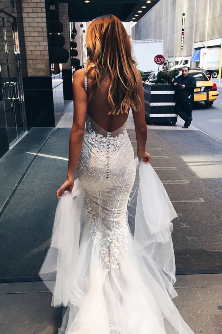 2024 Wedding Dresses Mermaid Spaghetti Straps Tulle With Applique Open Back