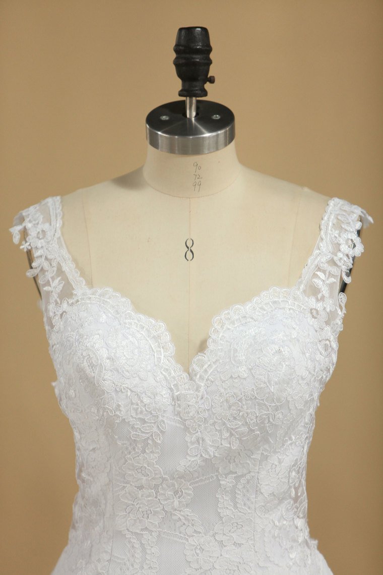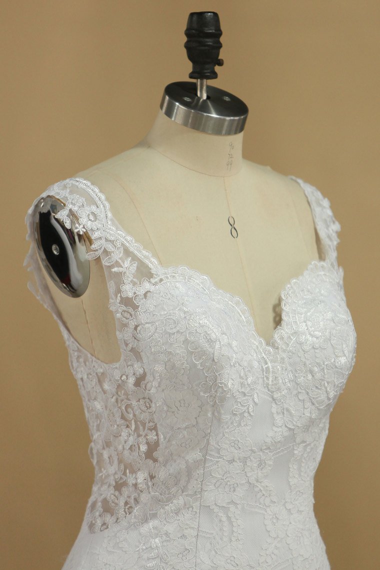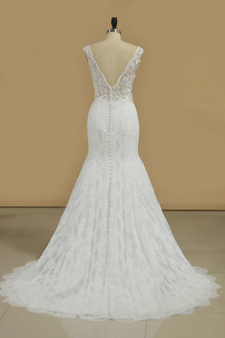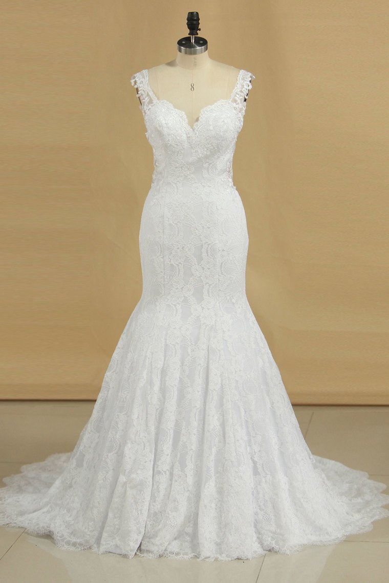 2024 Wedding Dresses Mermaid Straps Lace With Applique Sweep Train