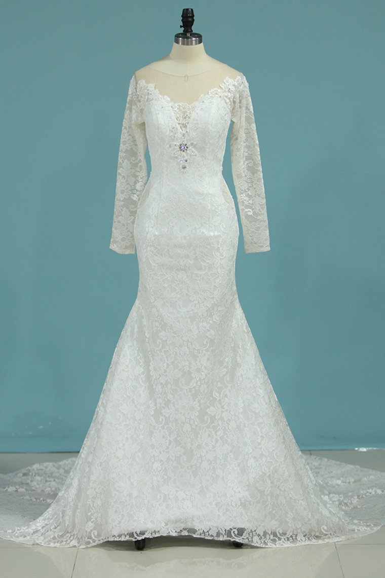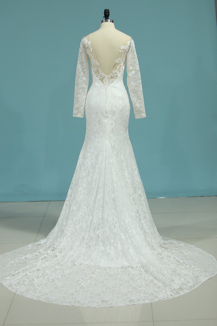 2024 Wedding Dresses Mermaid V Neck With Applique Lace Court Train